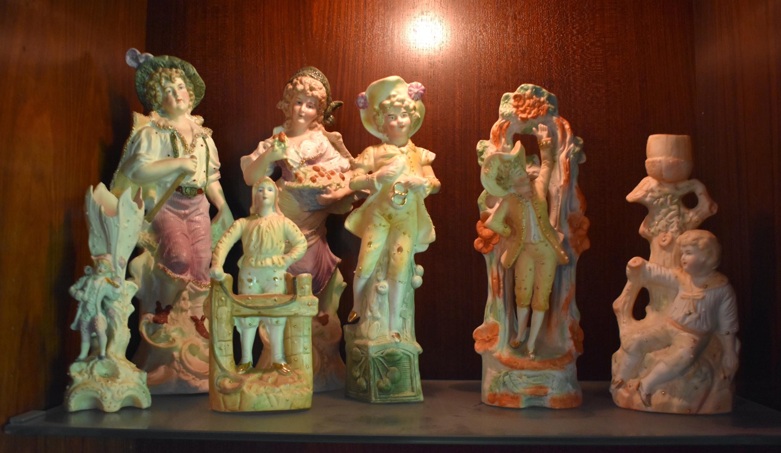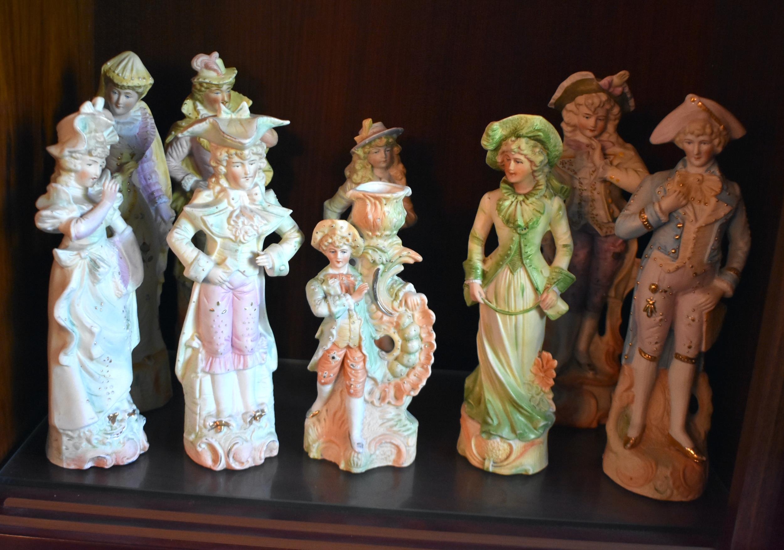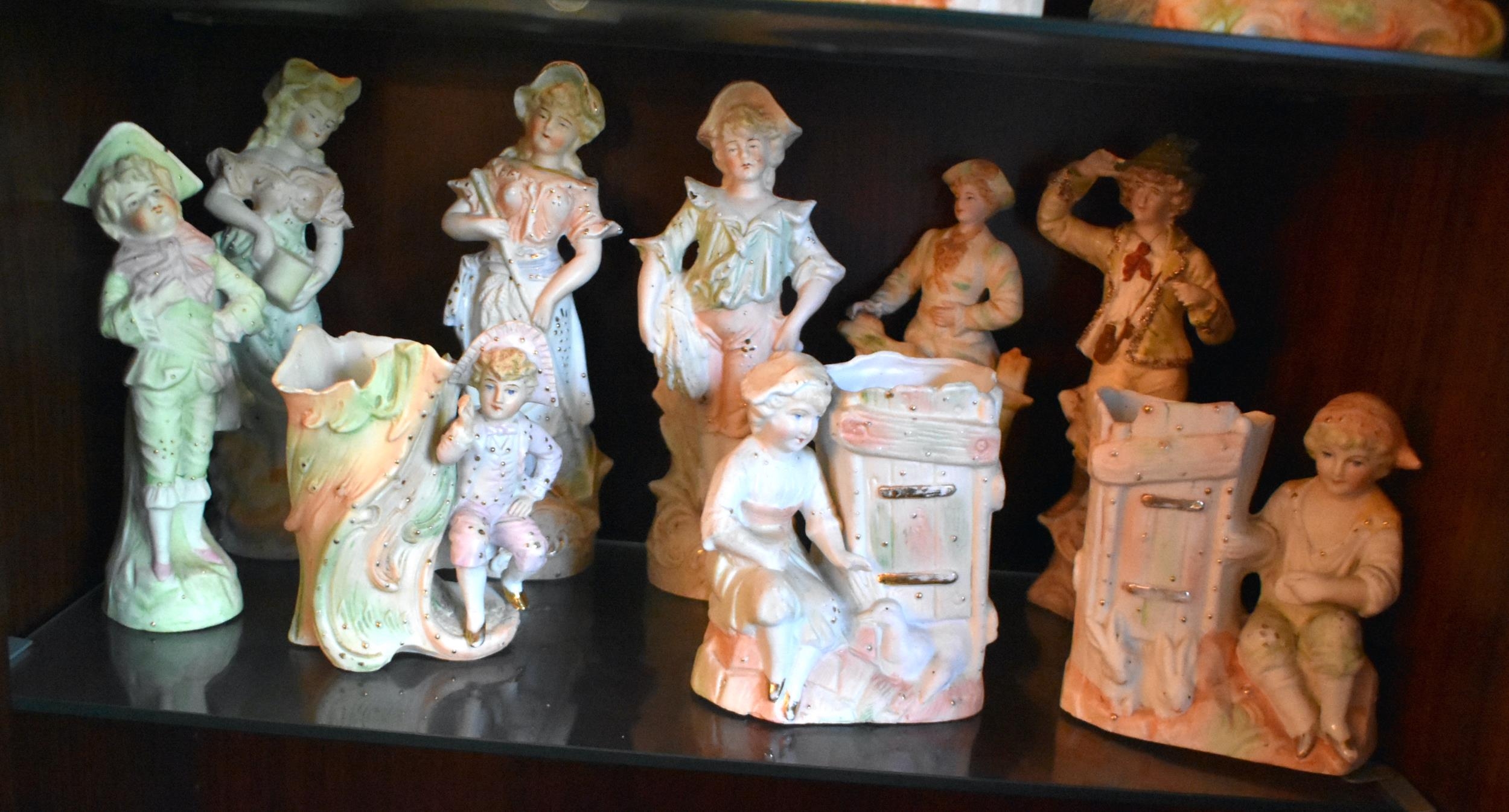 A LARGE COLLECTION OF ANTIQUE GERMAN PORCELAIN BISQUE FIGURES in various forms and sizes. Largest 27cm high. (qty)