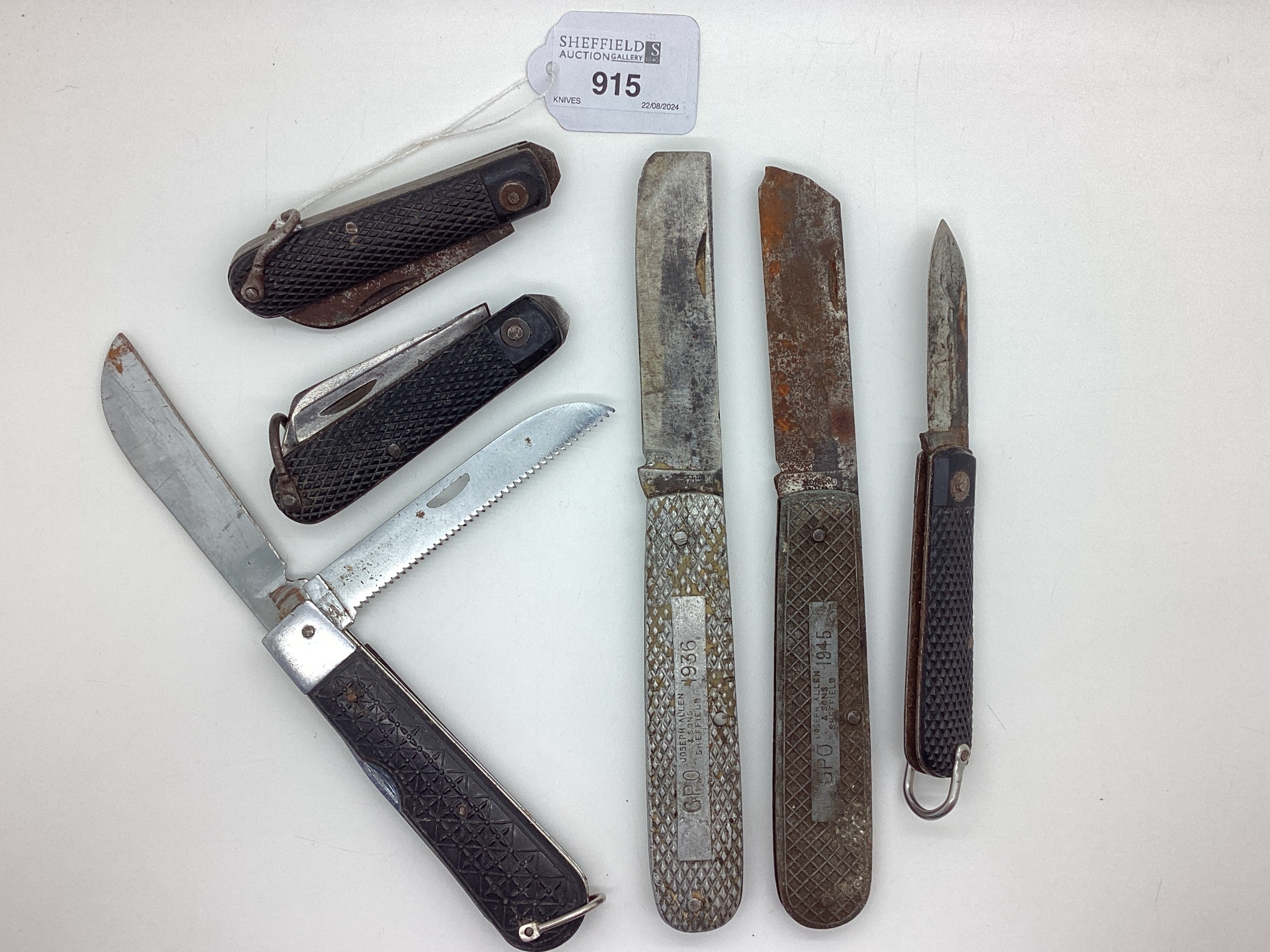 Joseph Allen & Sons Sheffield GPO 1936 Military Style Knife, together with a GPO 1945 example and further folding knives. (6)