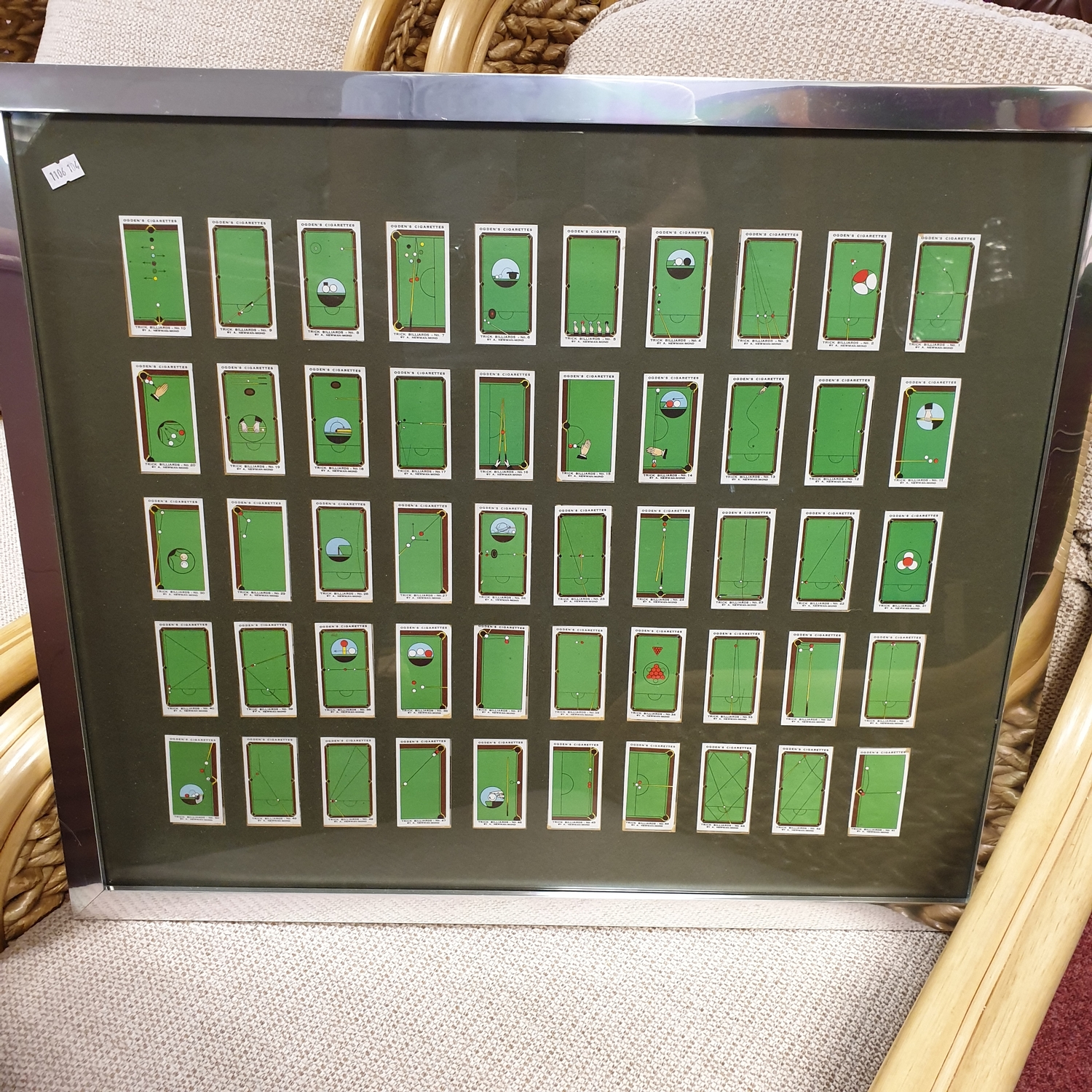 Cigarette Cards: A framed display of 50 Ogdens Trick Billiards cards -