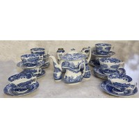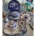 Blue & white including a teapot & sandwich plate possibly Delinières & Cie, marked D & C L, c1900; Ford & Sons, Burselm Dudley pattern serving dishes & tureen with cover etc.