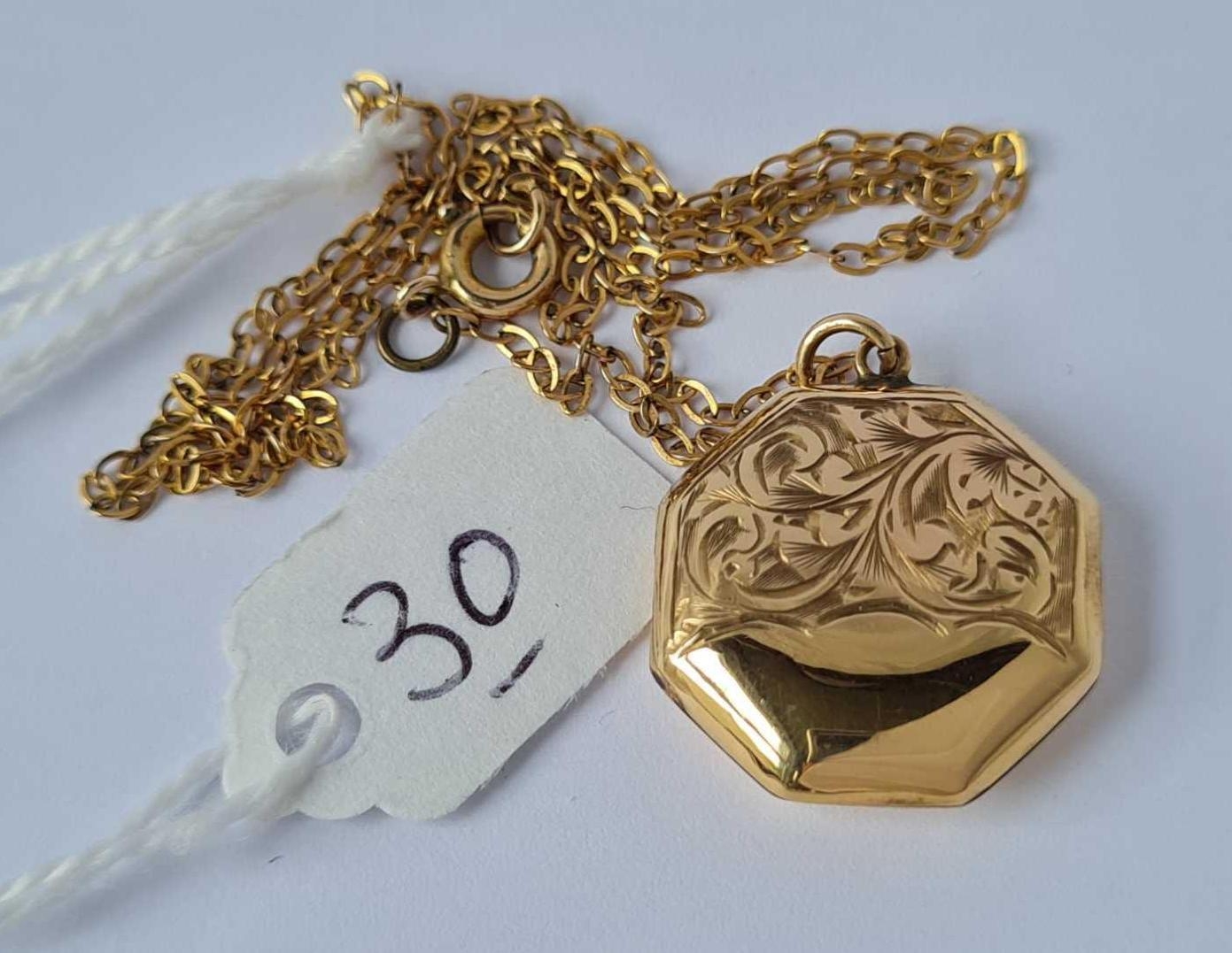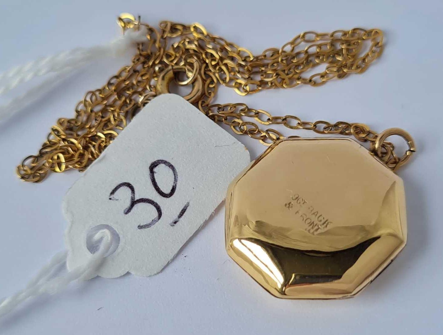 An attractive 9ct back & front octagonal locket on 9ct fine link chain 5g inc