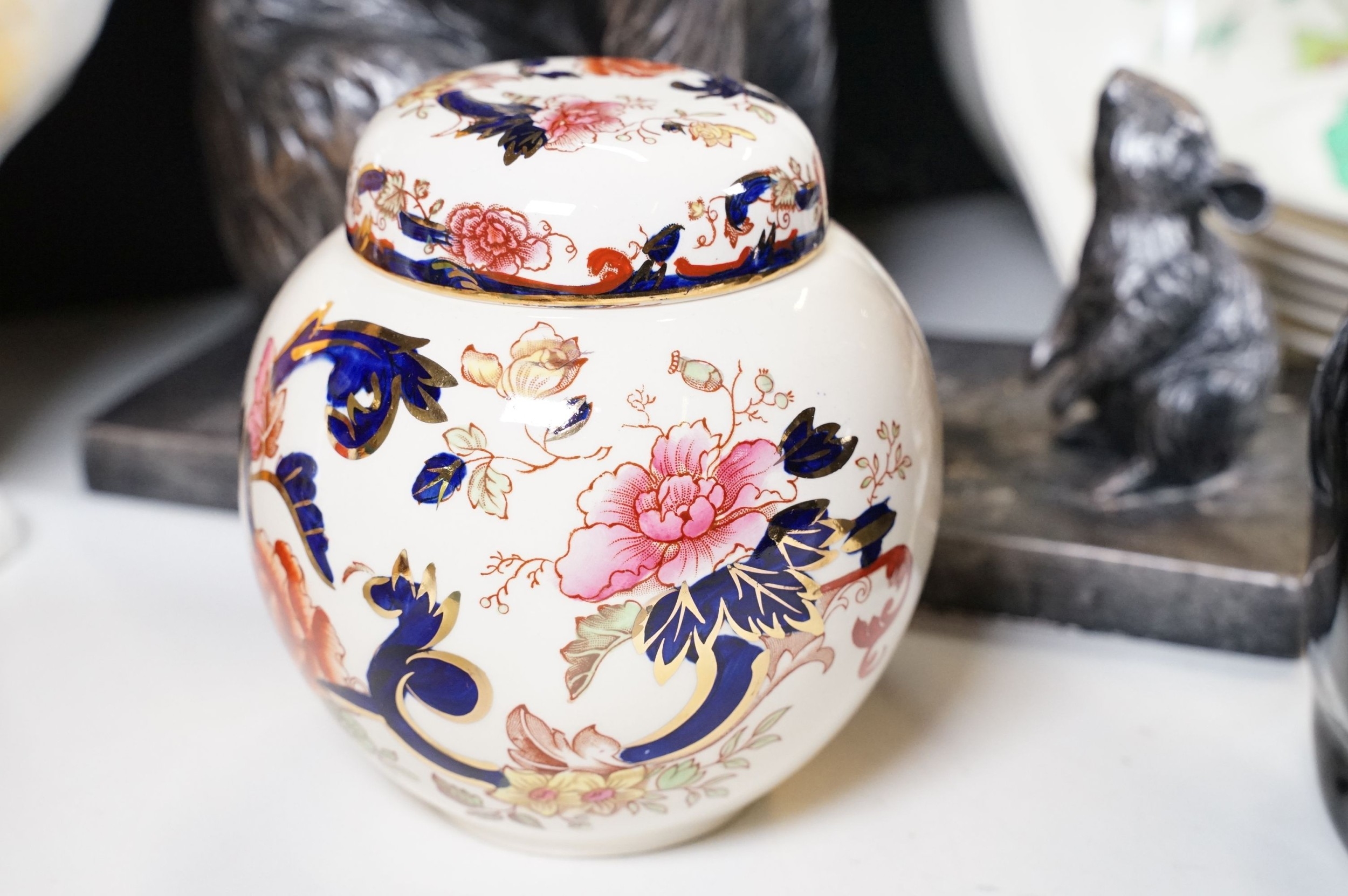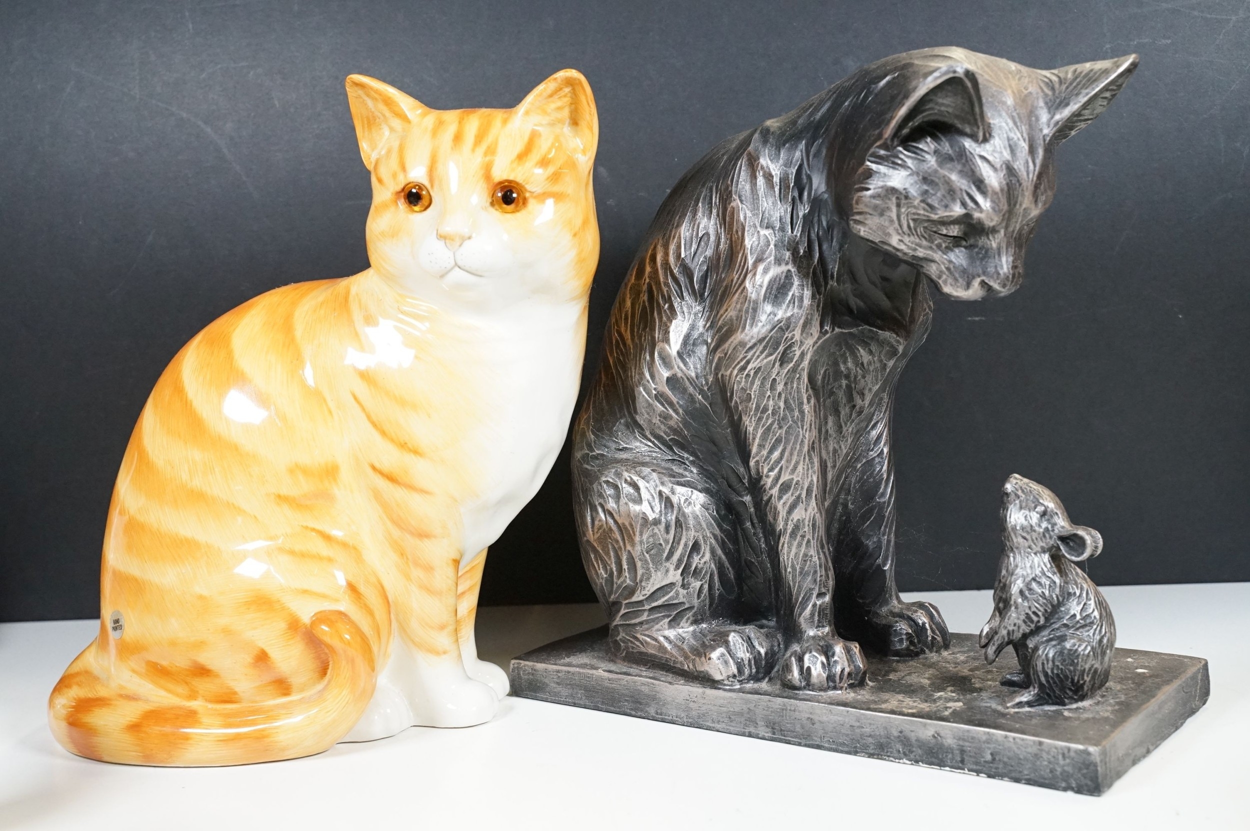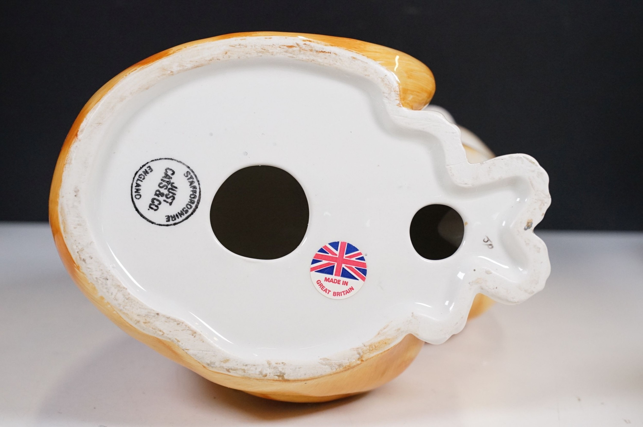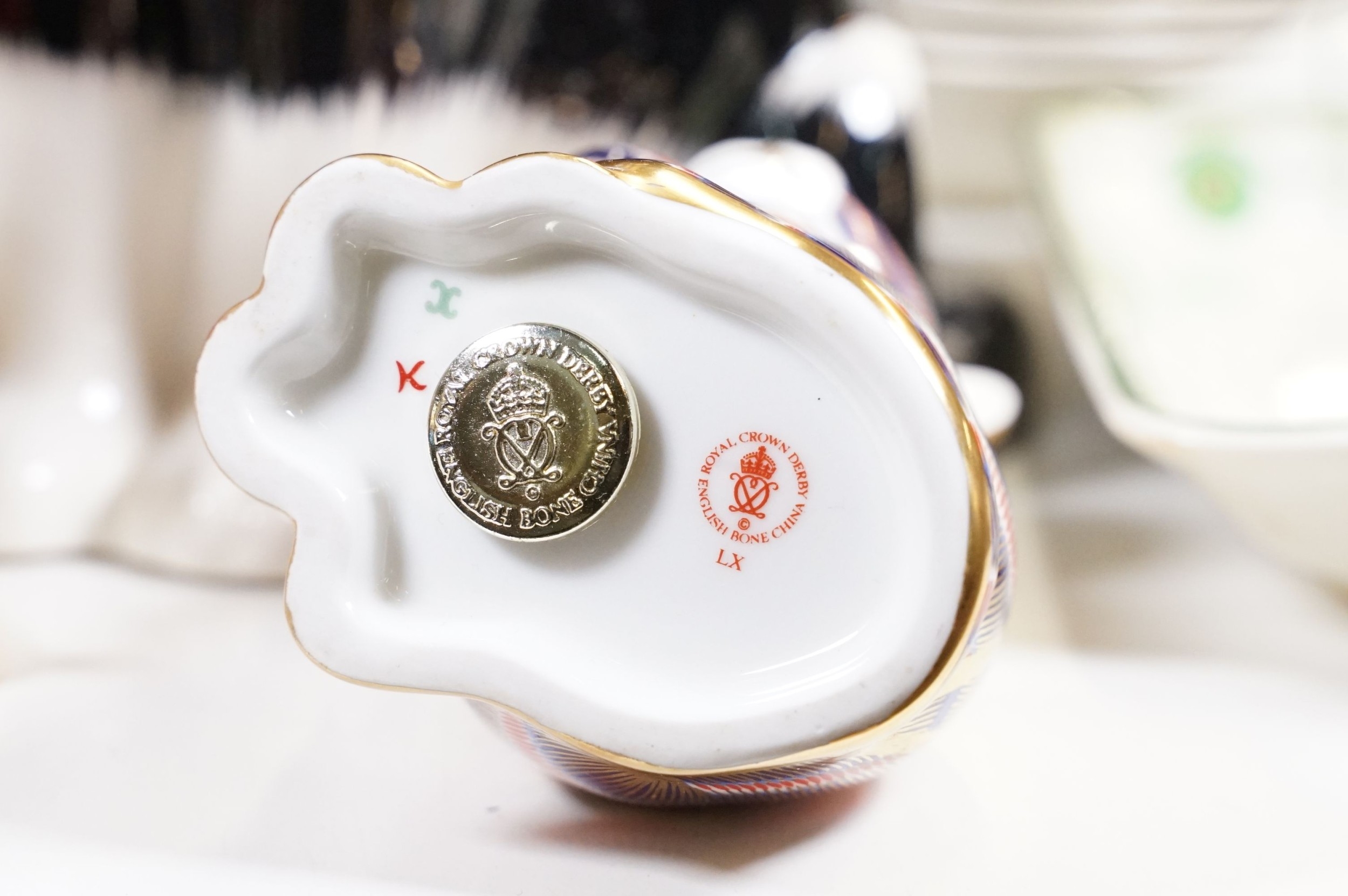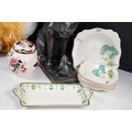 Assortment of mixed ceramics to include a Crown Derby cat paperweight - LX, Royal Doulton 'Humpty Dumpty' and 'Countess' pattern small tray, Rupert the Bear figurines, Aynsley 'Cottage Garden' bud vase, Windmill Bakery figurine, Clarice Cliff style 'Snow White' bowls together with three large cat figures, etc (2 boxes)