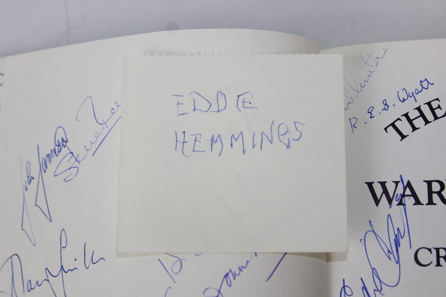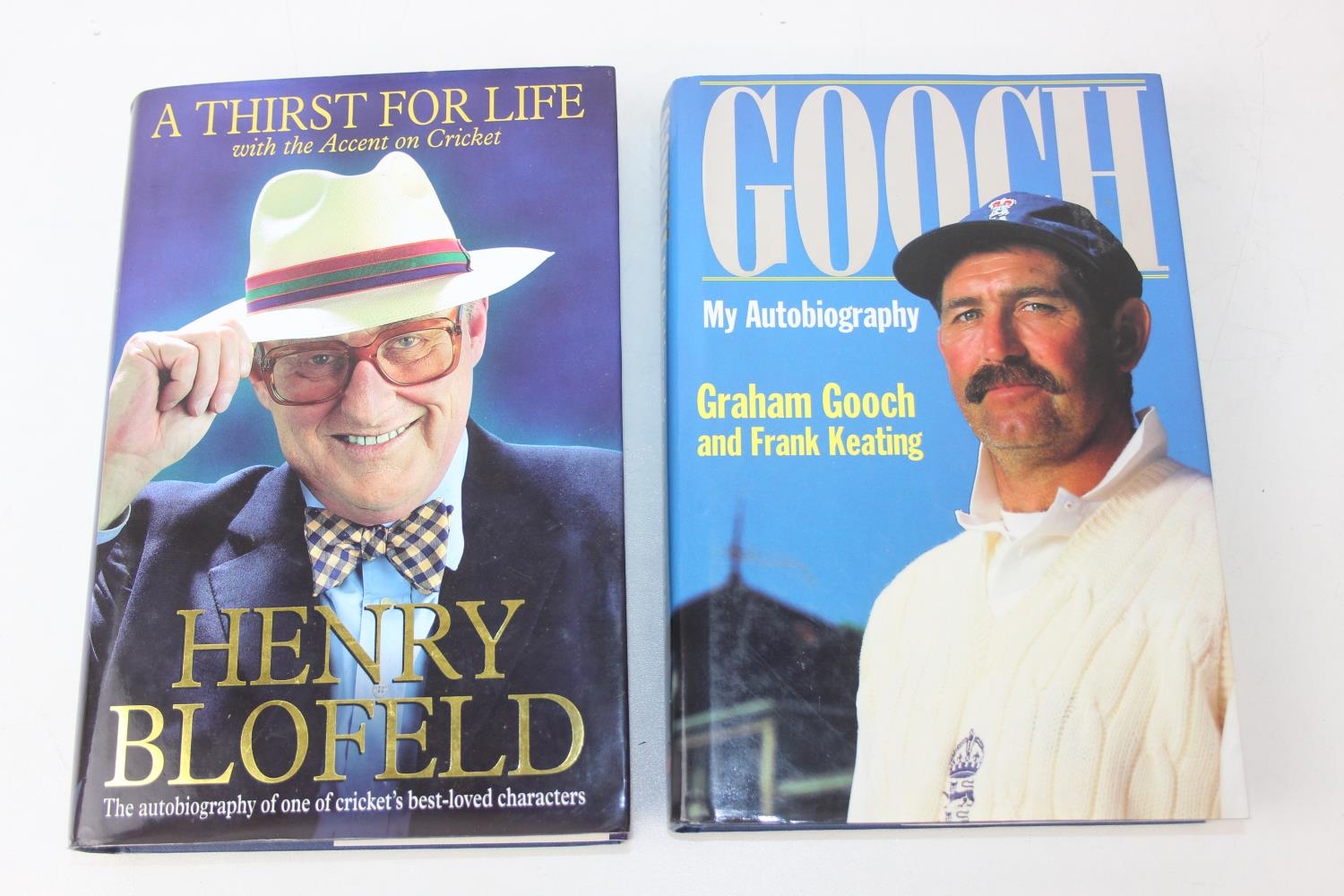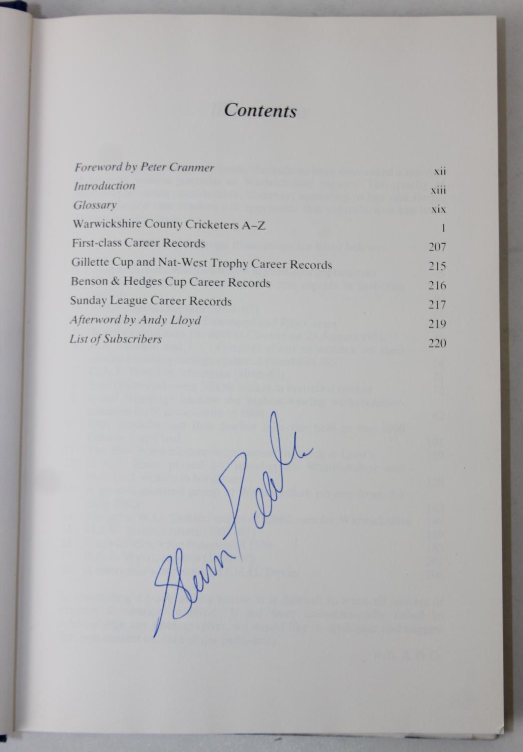 Autographs; Cricketers - Books about cricket, with approximately 40 autographs, mostly cricketers, to include signed by the author copies of 'A Thirst for Life' by Henry Blofeld and 'Gooch' by Graham Gooch and extensively signed Warwickshire County Cricket Club book [4]