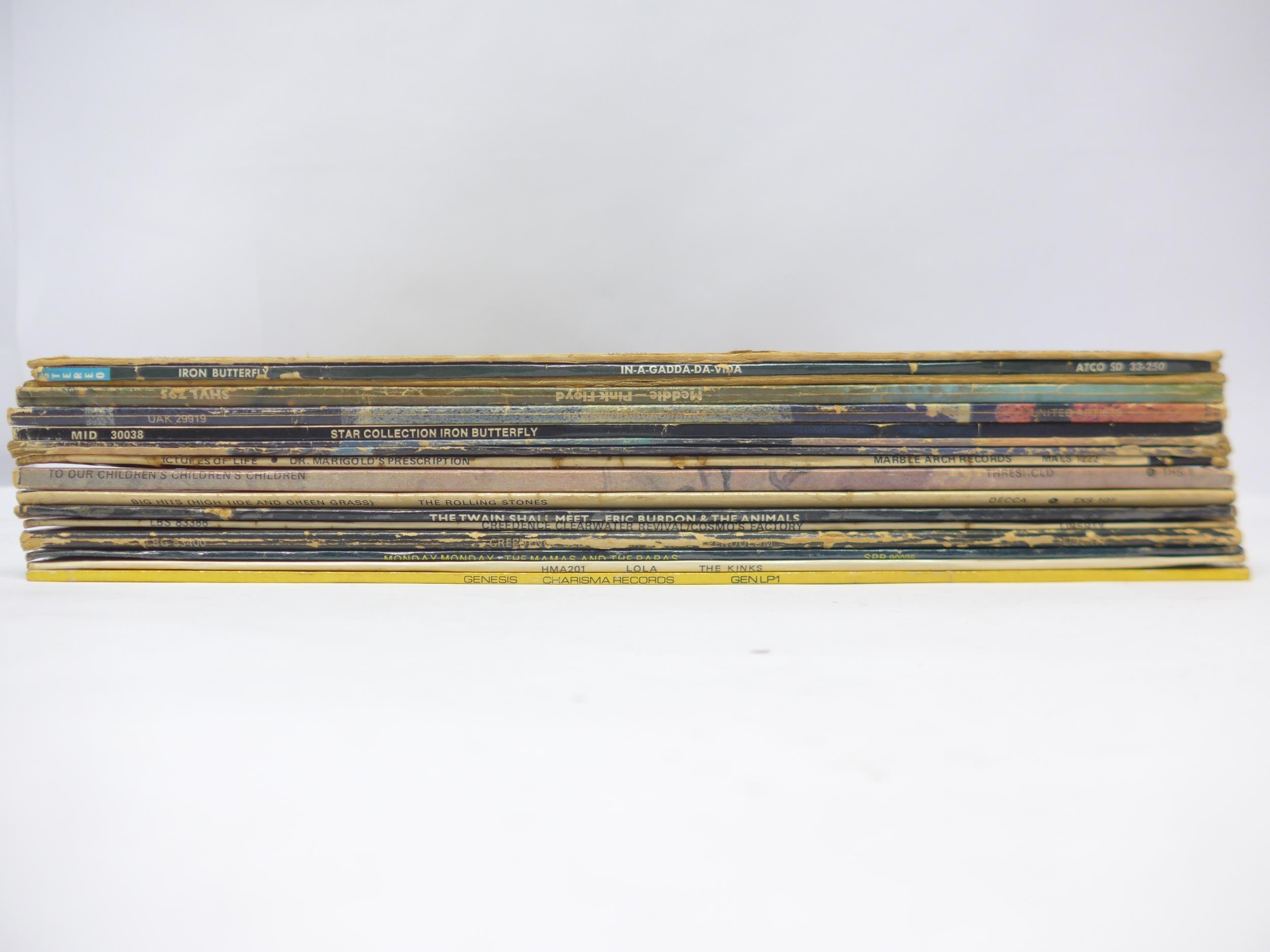 Prog / Psych / Classic Rock - A collection of sixteen LPs, artists to include Iron Butterfly, Pink Floyd, Dr. Marigold's Prescription, The Rolling Stones, Eric Burdon & The Animals, Creedence Clearwater Revival, The Mamas & The Papas, The Kinks, Genesis, Booker T. & The MG's (16, vinyl and sleeves generally VG)