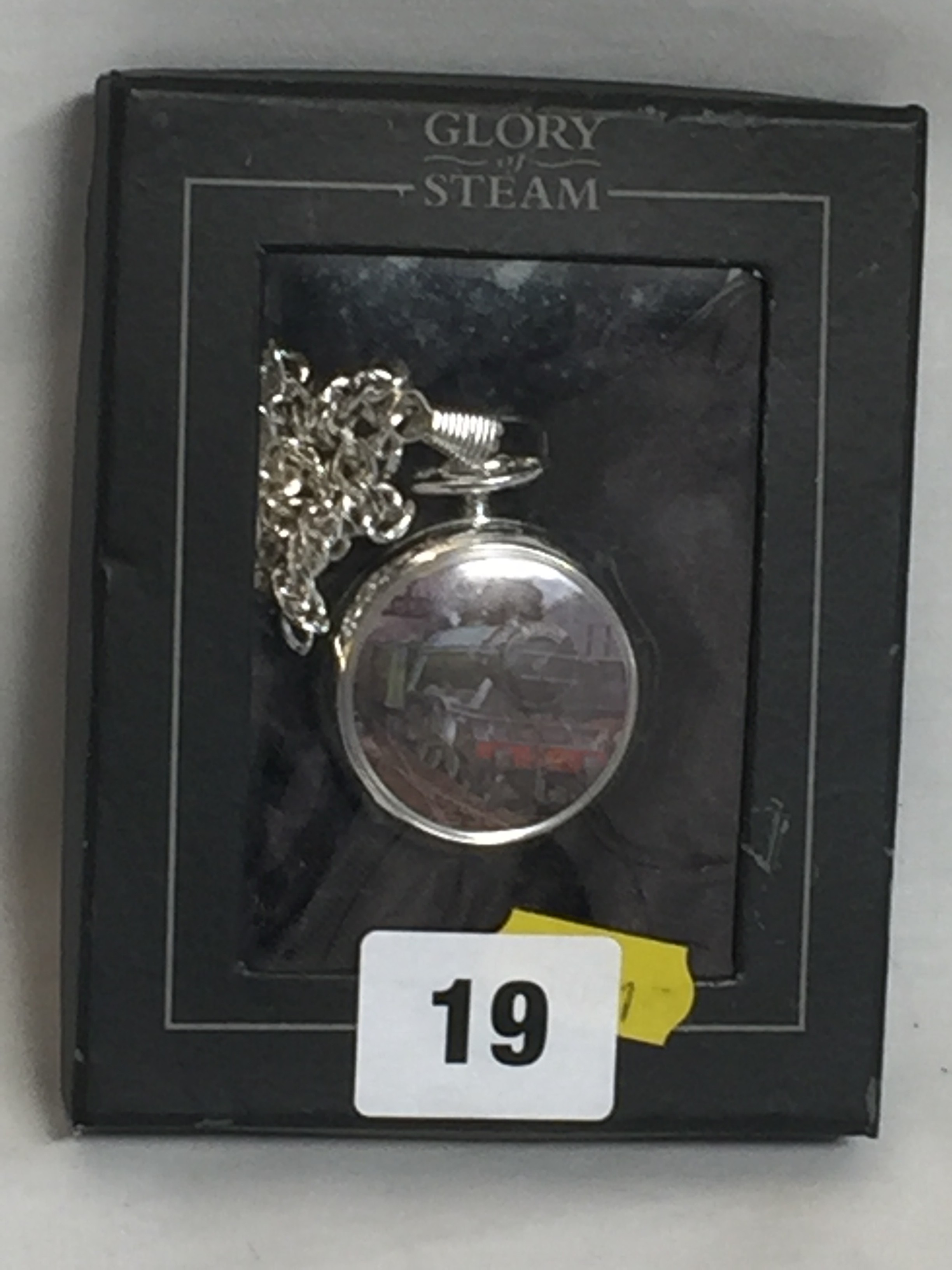 MODERN POCKET WATCH WITH PICTURE OF THE FLYING SCOTSMAN AND ALBERT