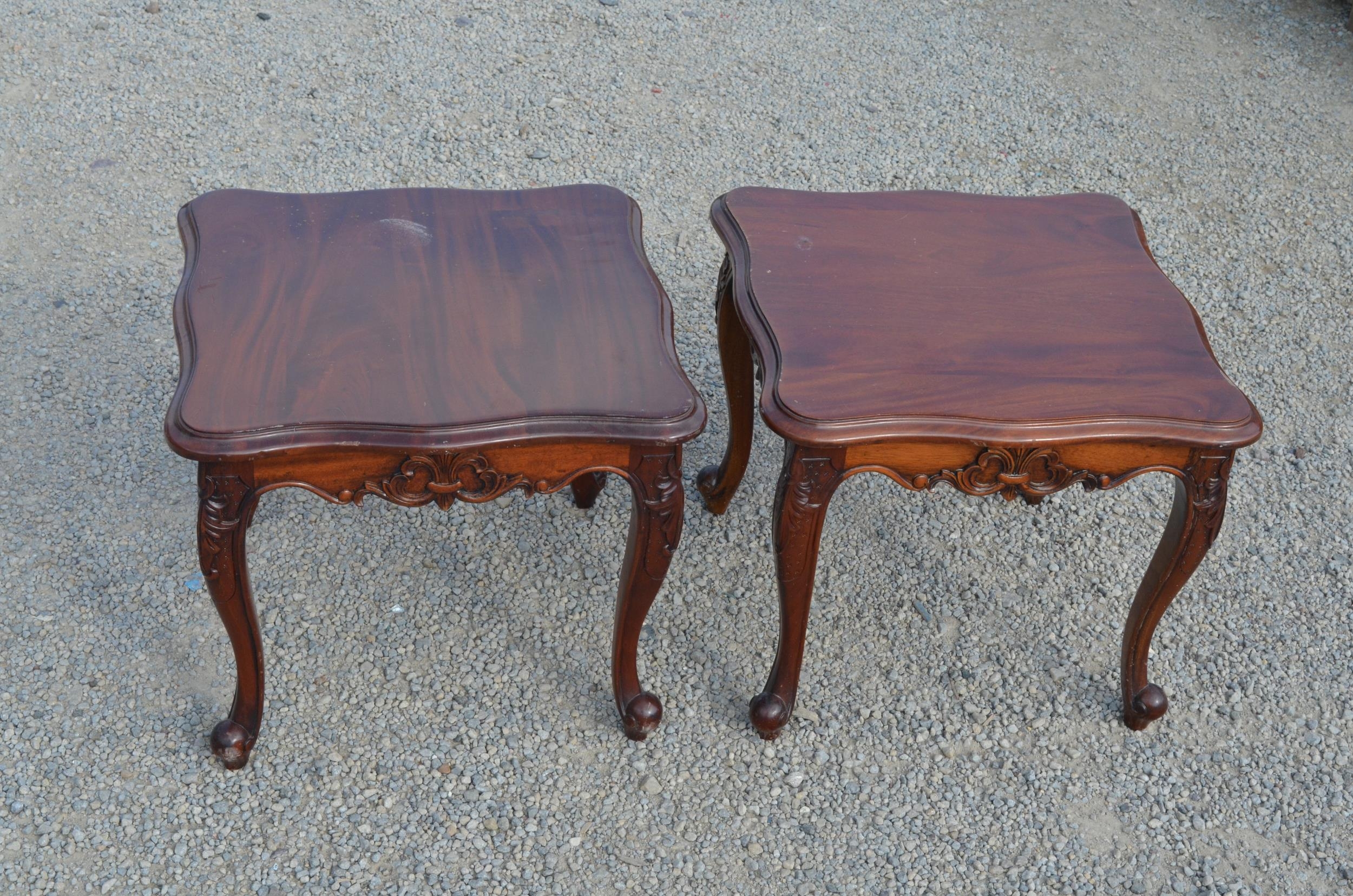Pair of Rococo style lamp tables, shaped square top on cabriol legs, 51cm x 51cm x H43cm (2)