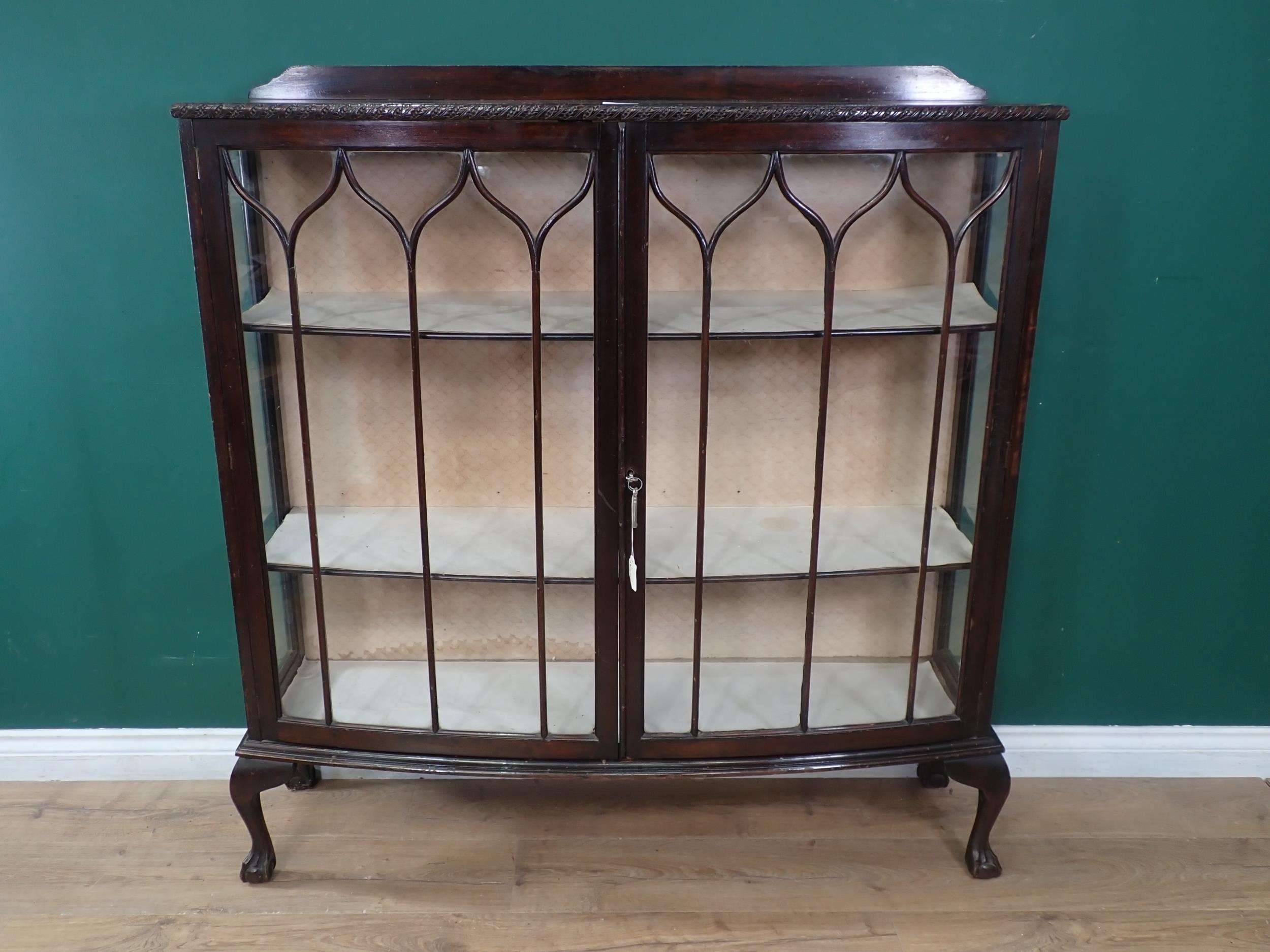 A Bow front glazed Display Cabinet on claw and ball feet, 3ft 11" Wide x 4ft 2"High.