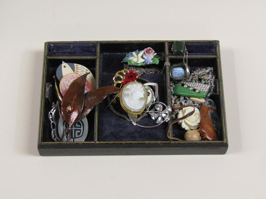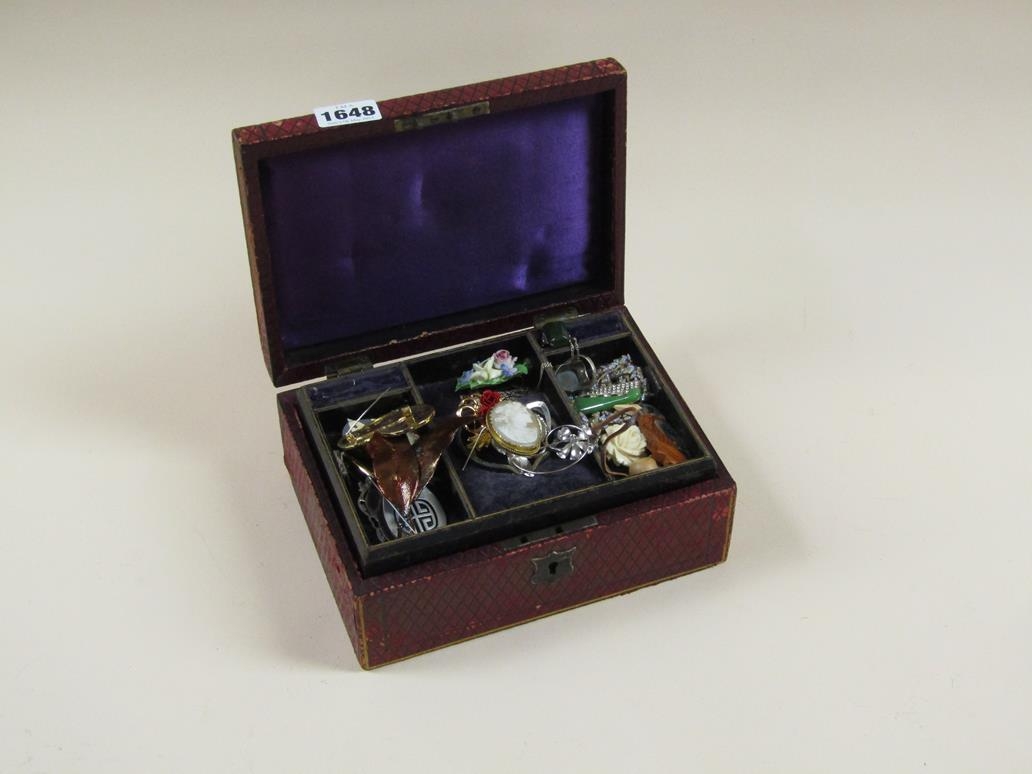 LEATHER JEWEL BOX; MISC COSTUME JEWELLERY CONTAINED THEREIN