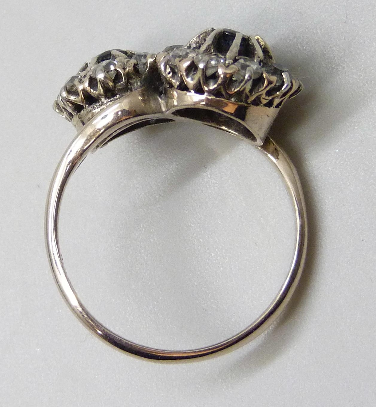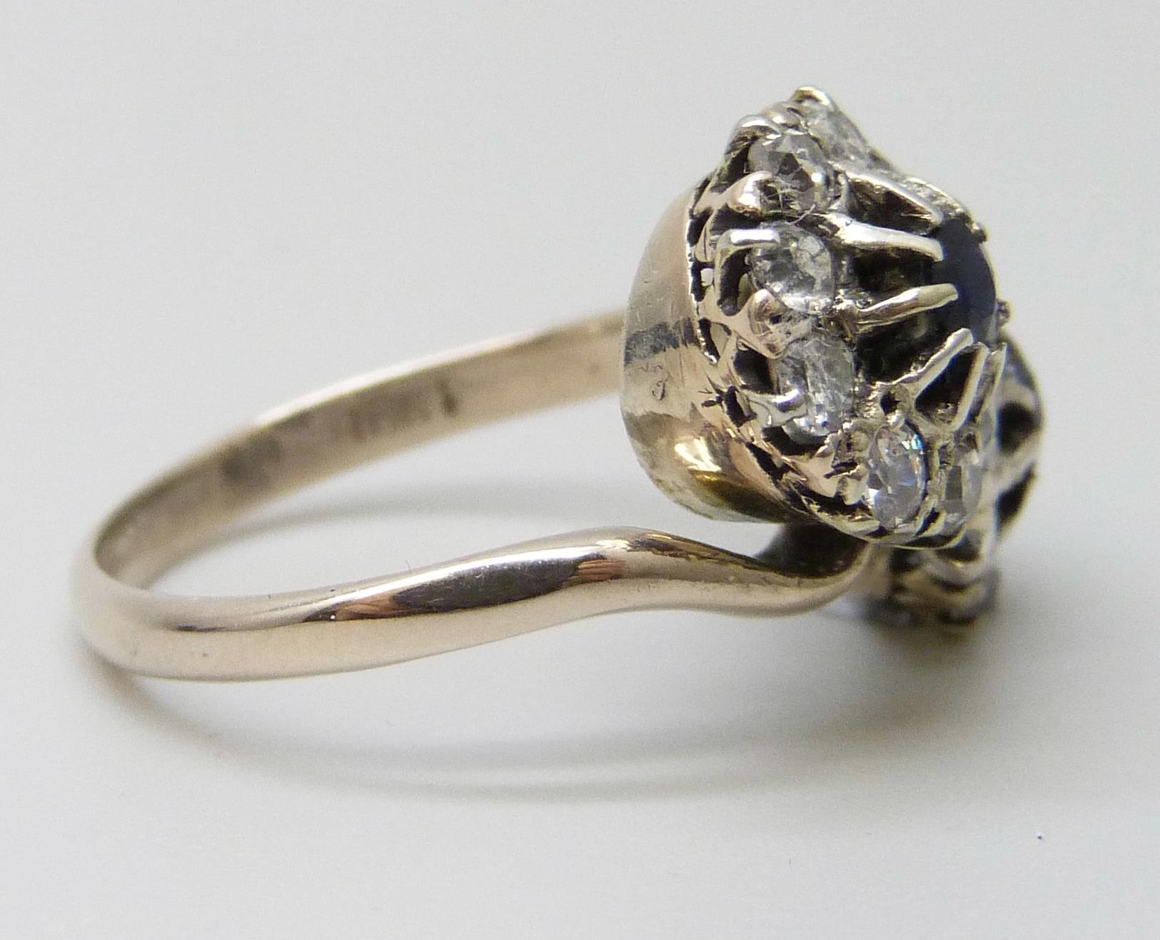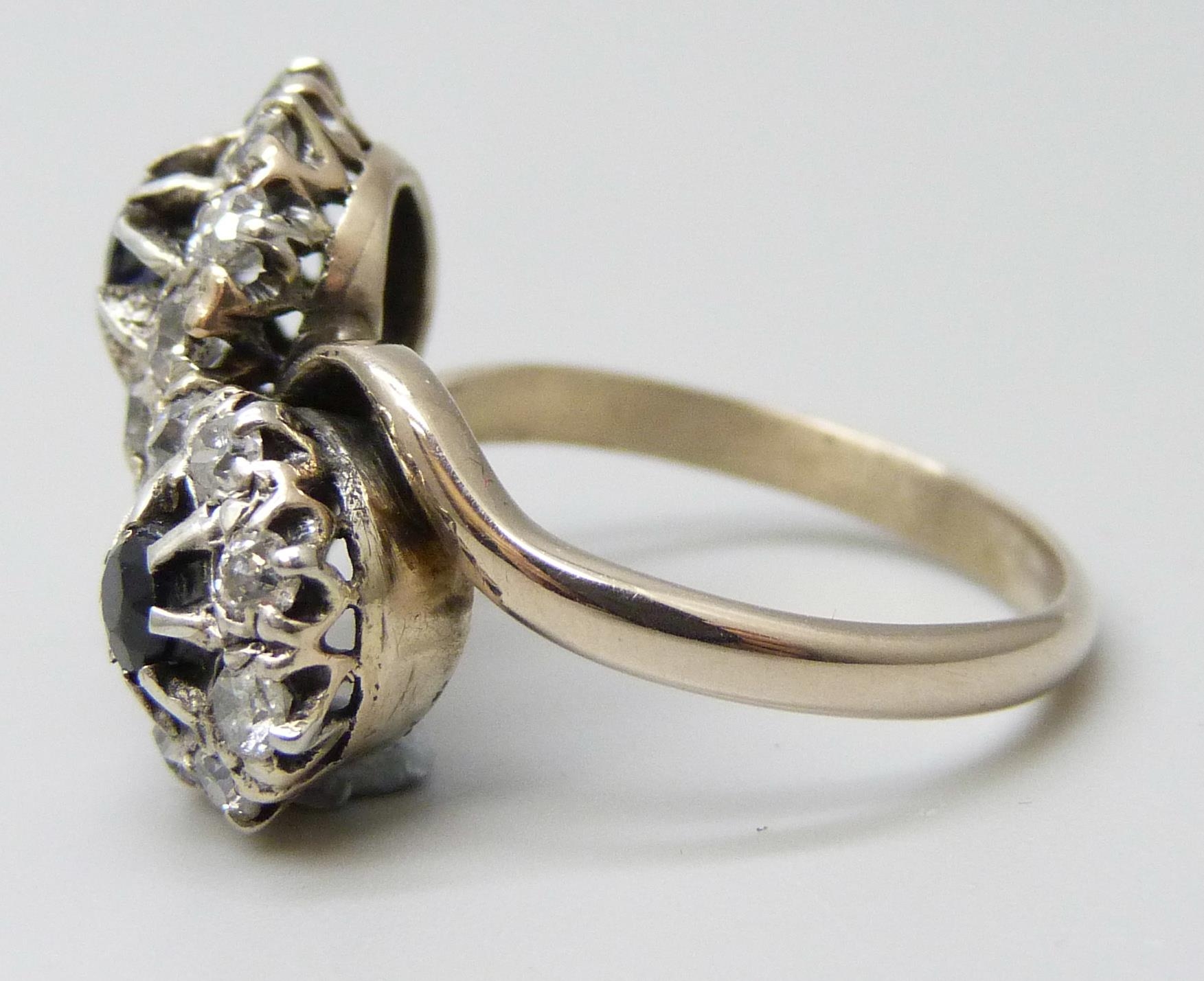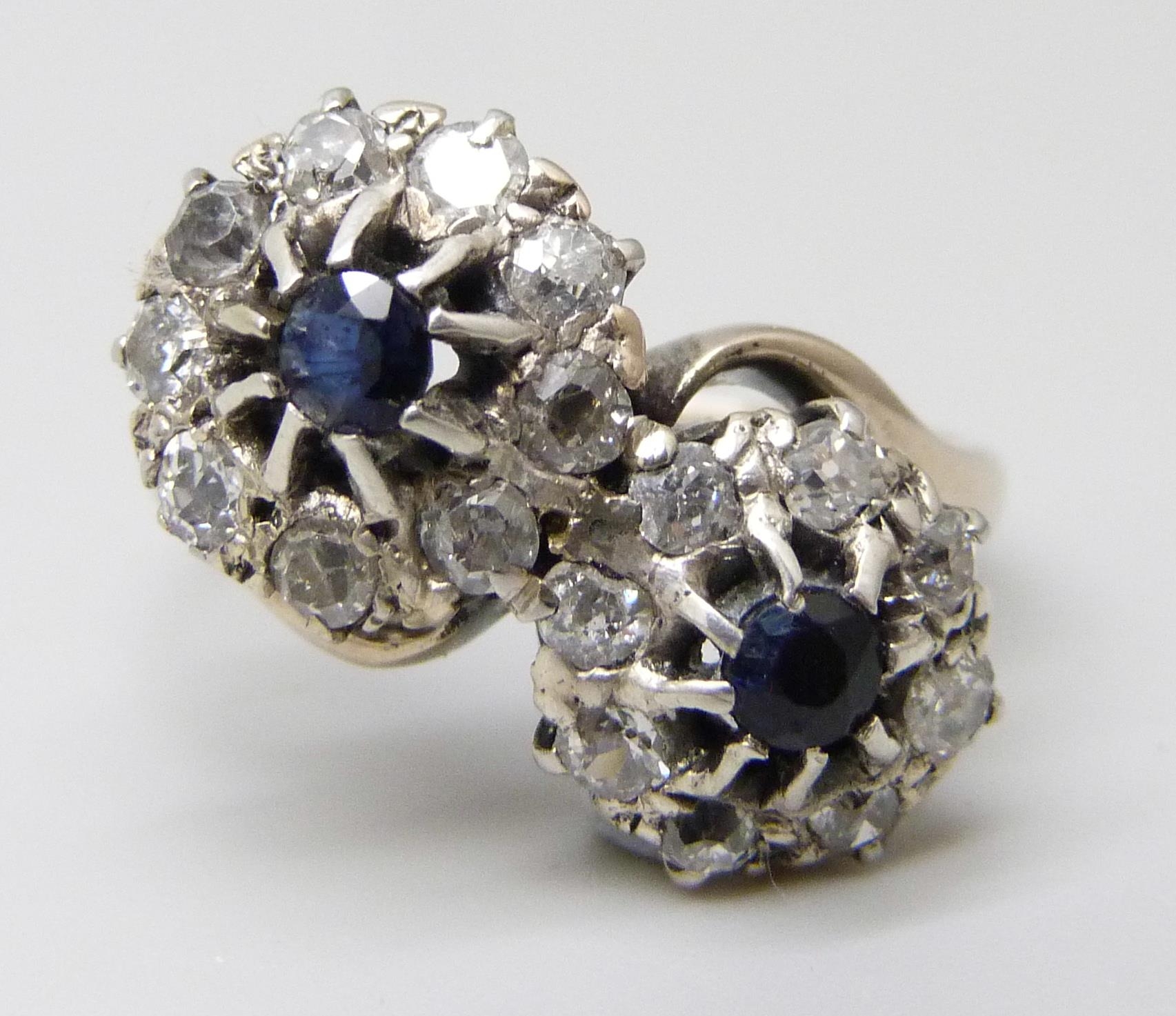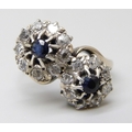 An 18ct gold, sapphire and diamond double cluster cocktail ring, 4.1g, P/Q