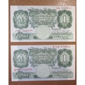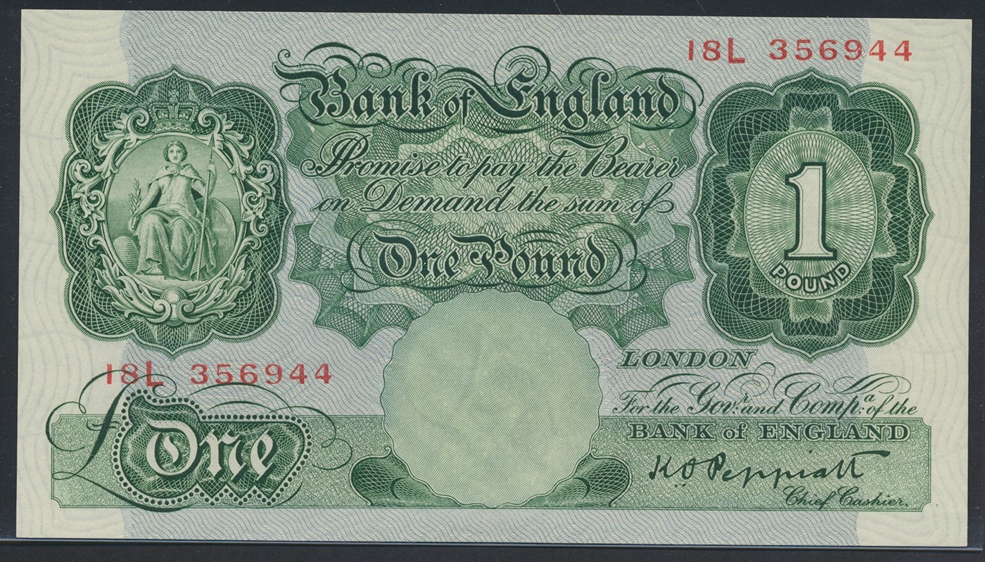 Range with £1 Peppiatt 1934 18L and 1948 unthreaded S14A first series uncirculated, Beale S32S replacement extremely fine and 10/- Beale 83C uncirculated. Qty 4 (R)