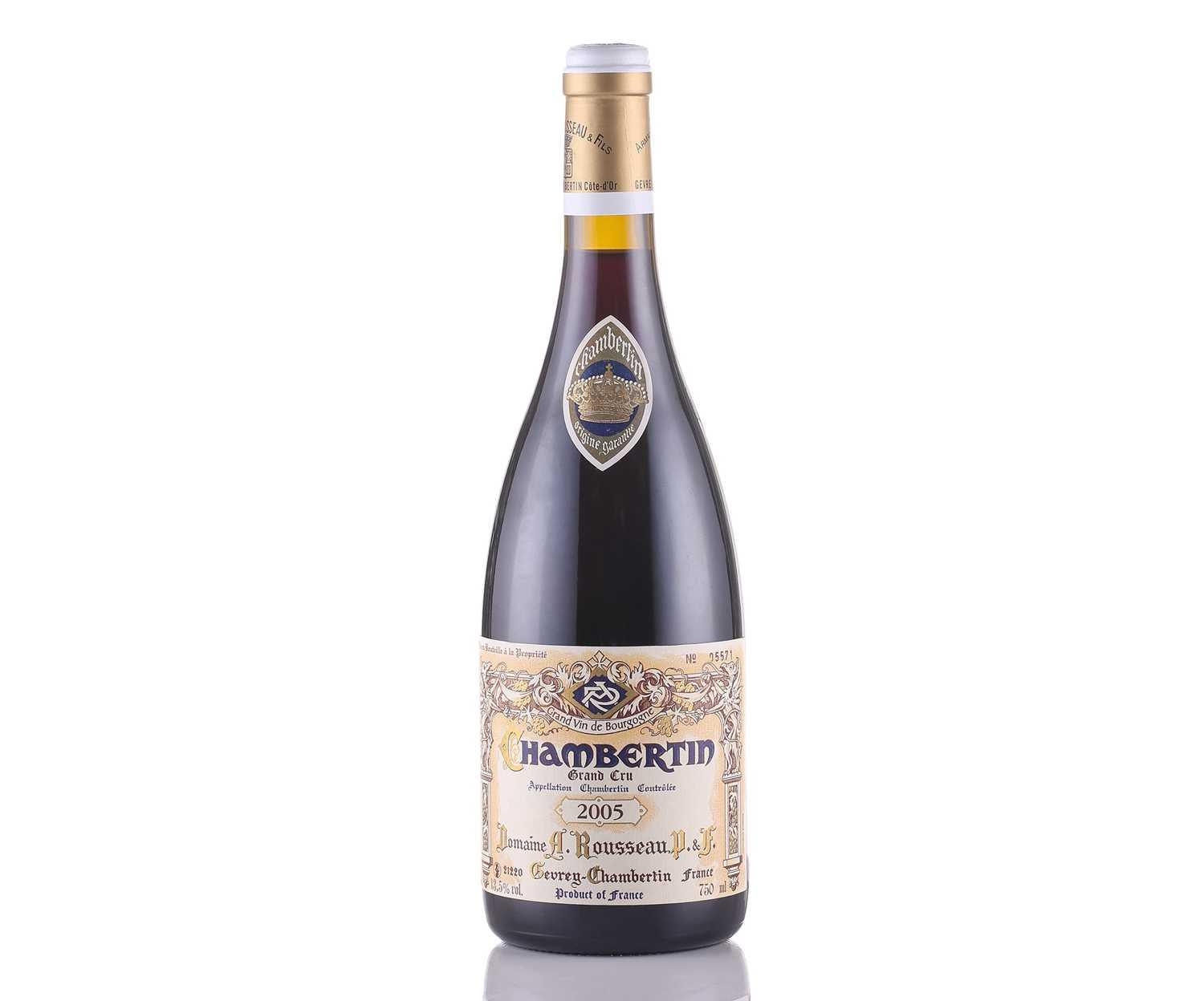 A bottle of Domaine A Rousseau Gevrey Chambertin Grand Cru, 2005, 750ml, 13.5 % Vol, numbered 05571.