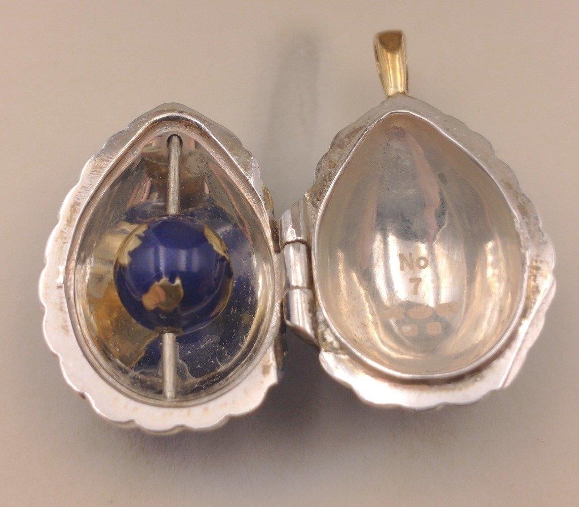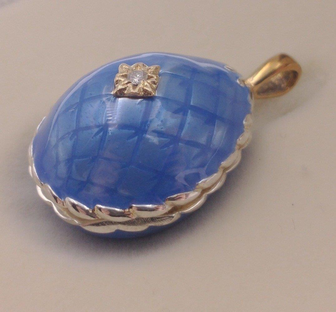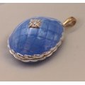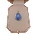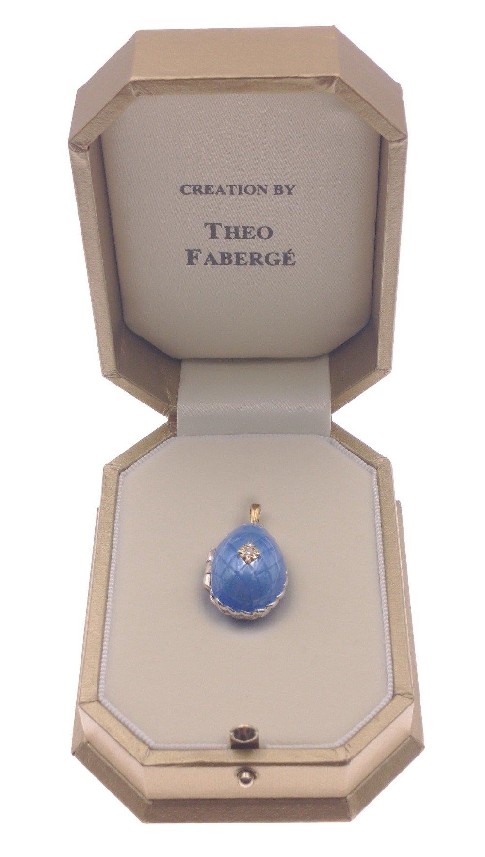 FABERGE ! St Petersburg Collection by THEO FABERGE. PASSION PENDANT TF959 World Limited Edition 7/500 pieces purchased at the world launch of Queen Mary 2 in 2019. A gorgeous blue enamelled egg with a small rotating globe of the earth inside with the continents picked out in gold. Includes original receipt from Cunard for $1500.