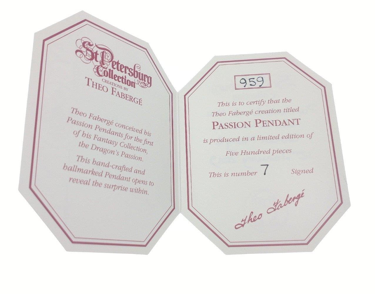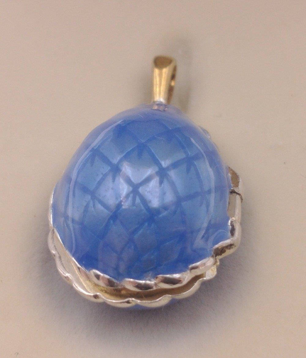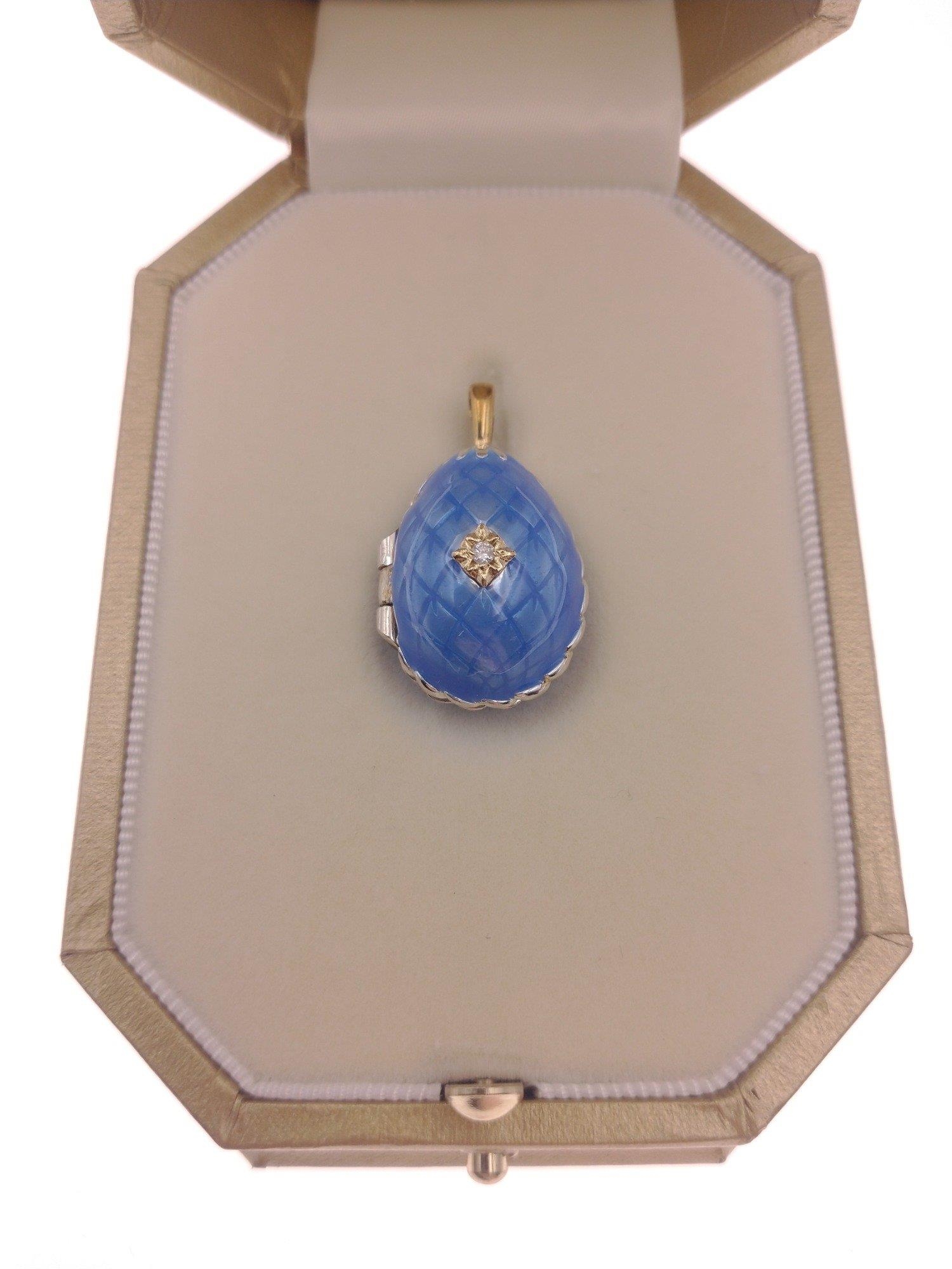 FABERGE ! St Petersburg Collection by THEO FABERGE. PASSION PENDANT TF959 World Limited Edition 7/500 pieces purchased at the world launch of Queen Mary 2 in 2019. A gorgeous blue enamelled egg with a small rotating globe of the earth inside with the continents picked out in gold. Includes original receipt from Cunard for $1500.