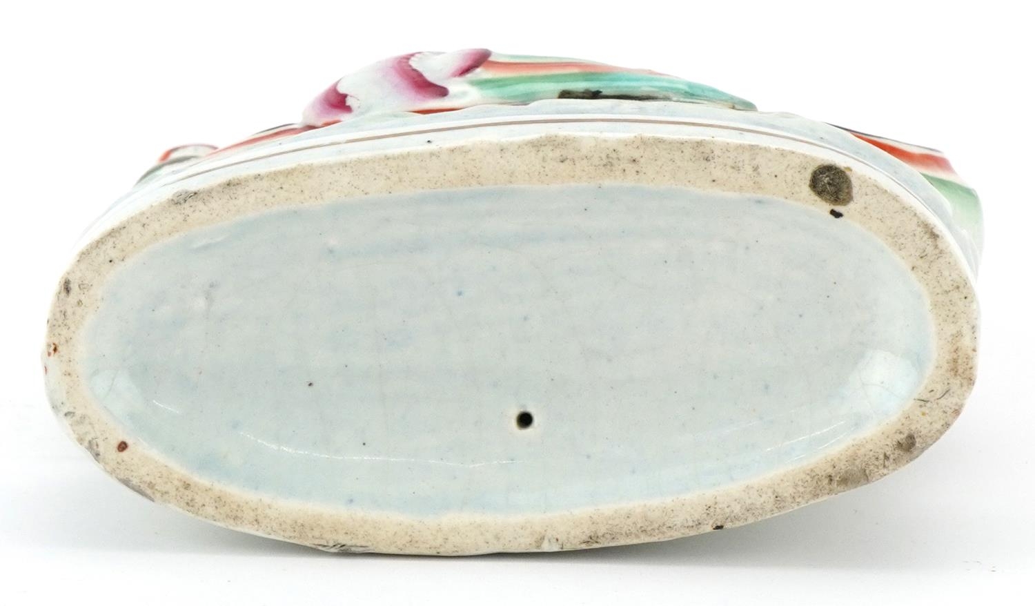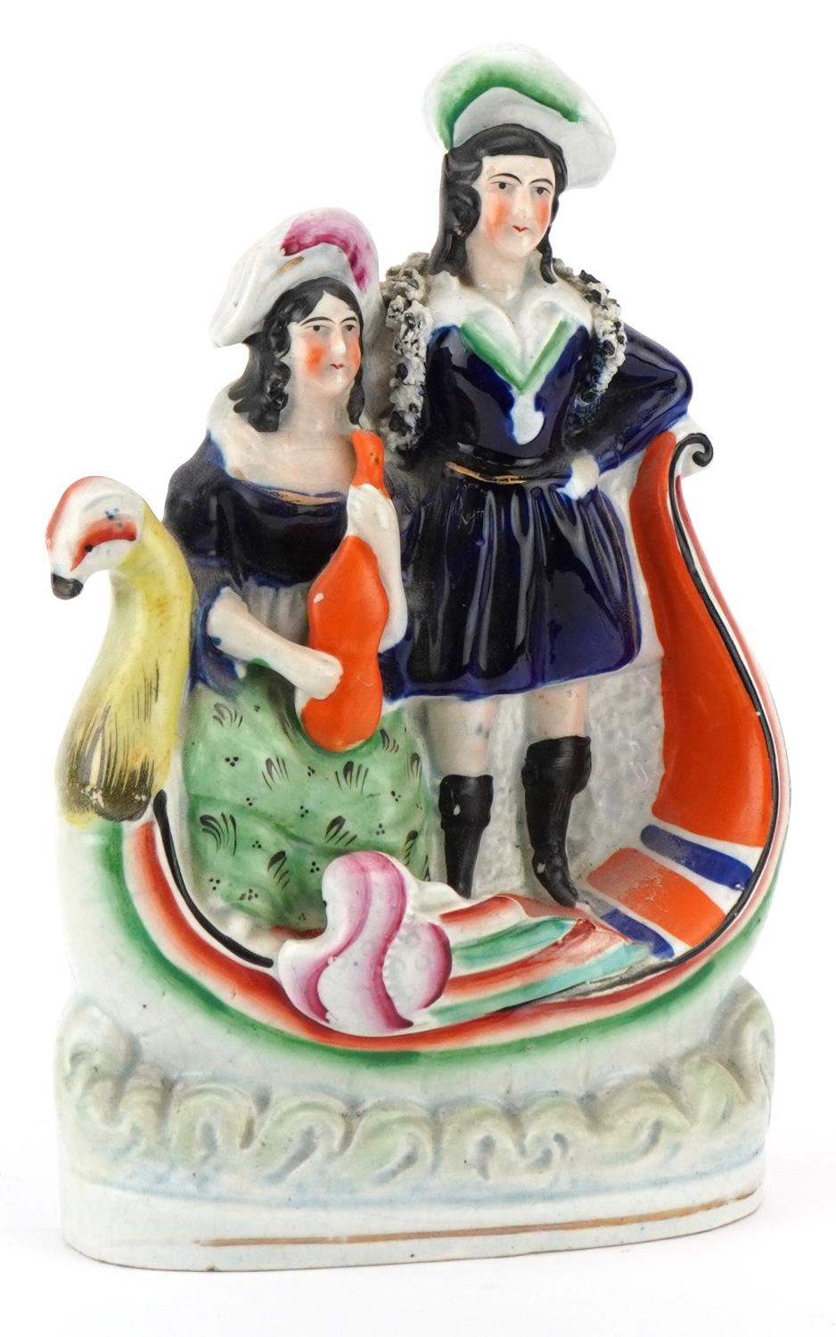 A Victorian Staffordshire pottery flatback of a couple on a boat, 23cm high.