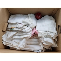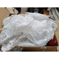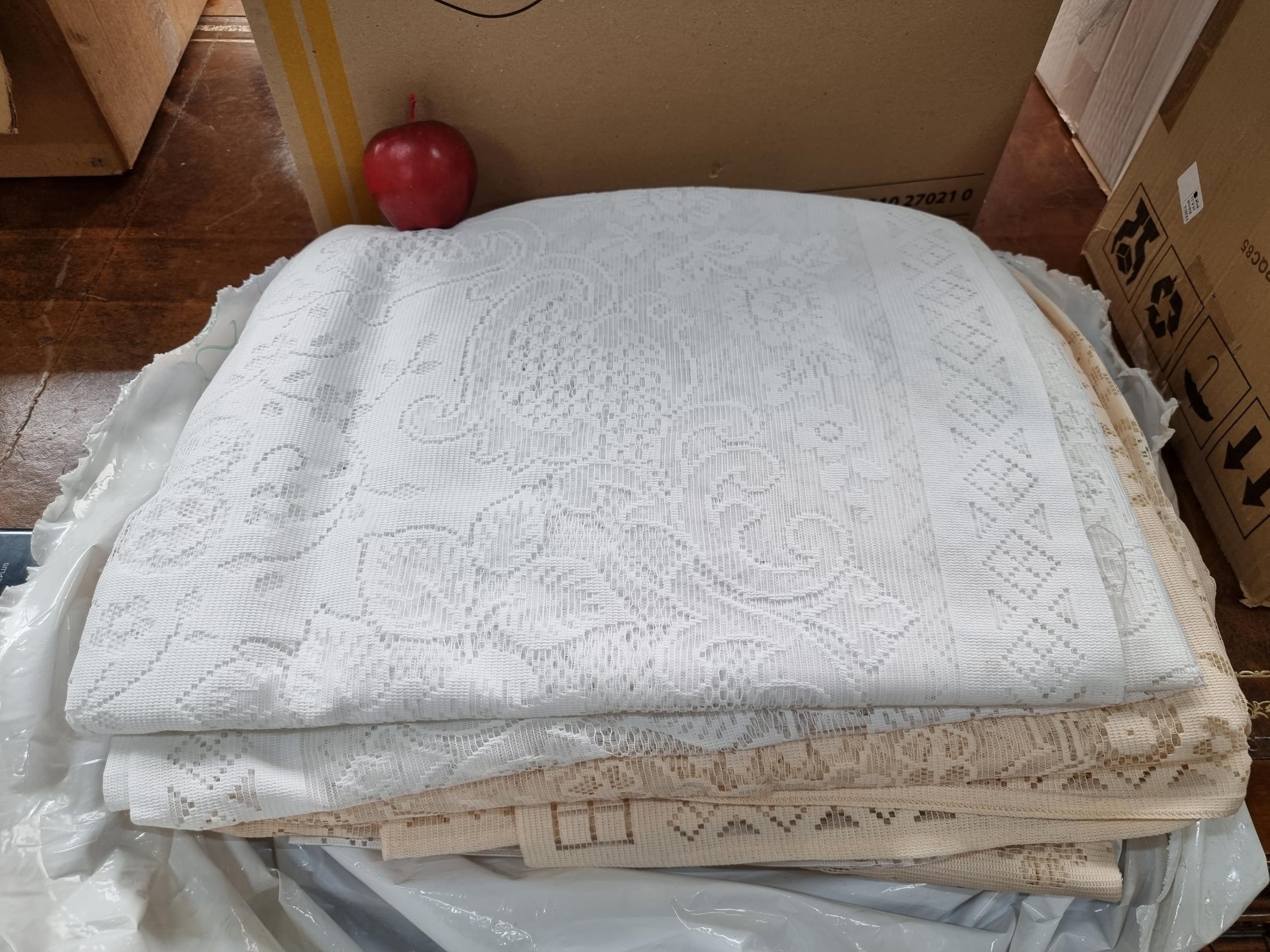 A large collection of white and cream lace table cloths in very good condition. Believed to be new old stock
