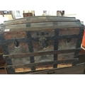 An Antique dome top trunk with wood and metal binding the interior with a detachable tray. 79cm long.