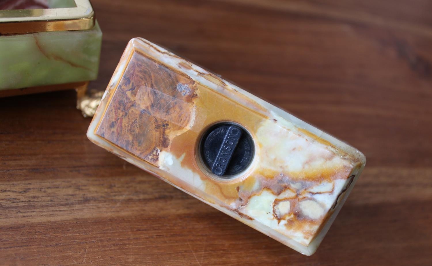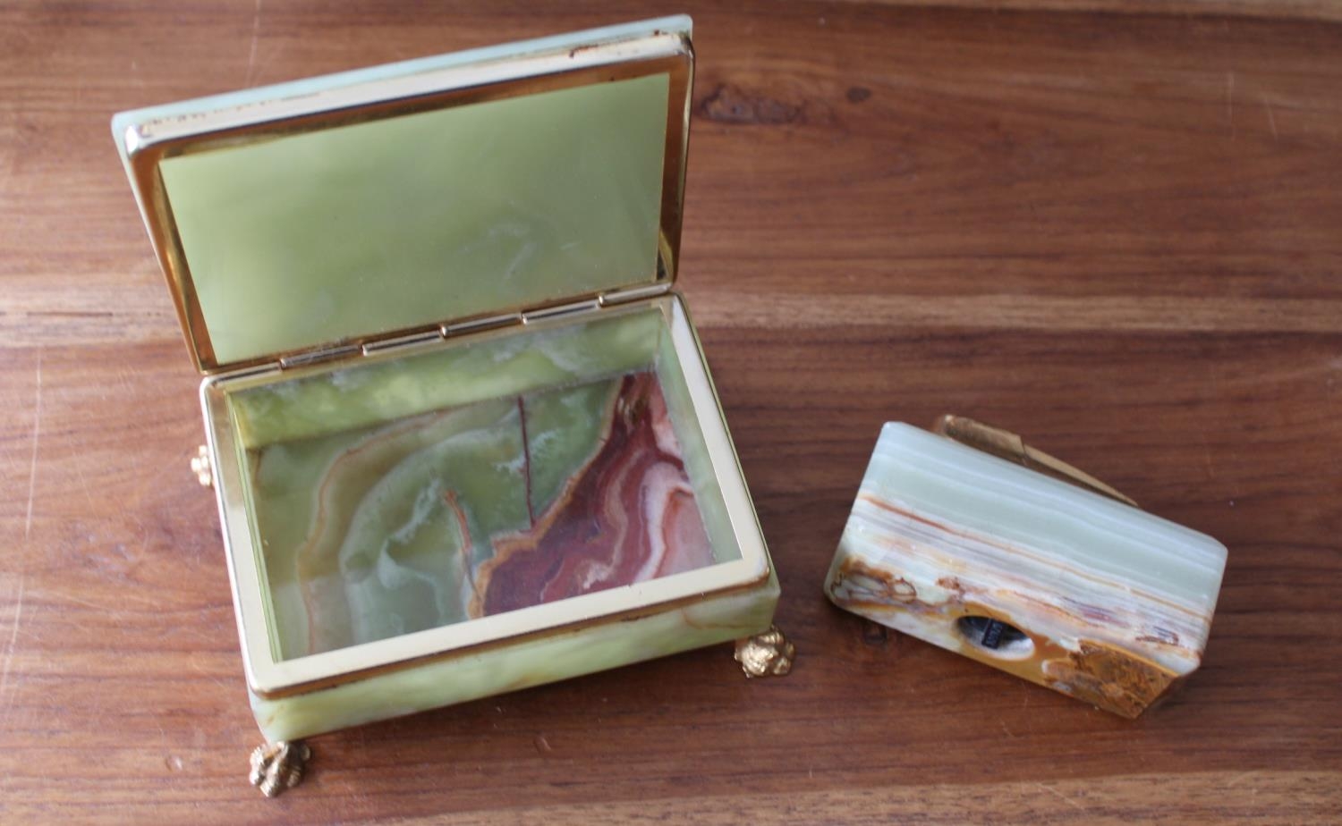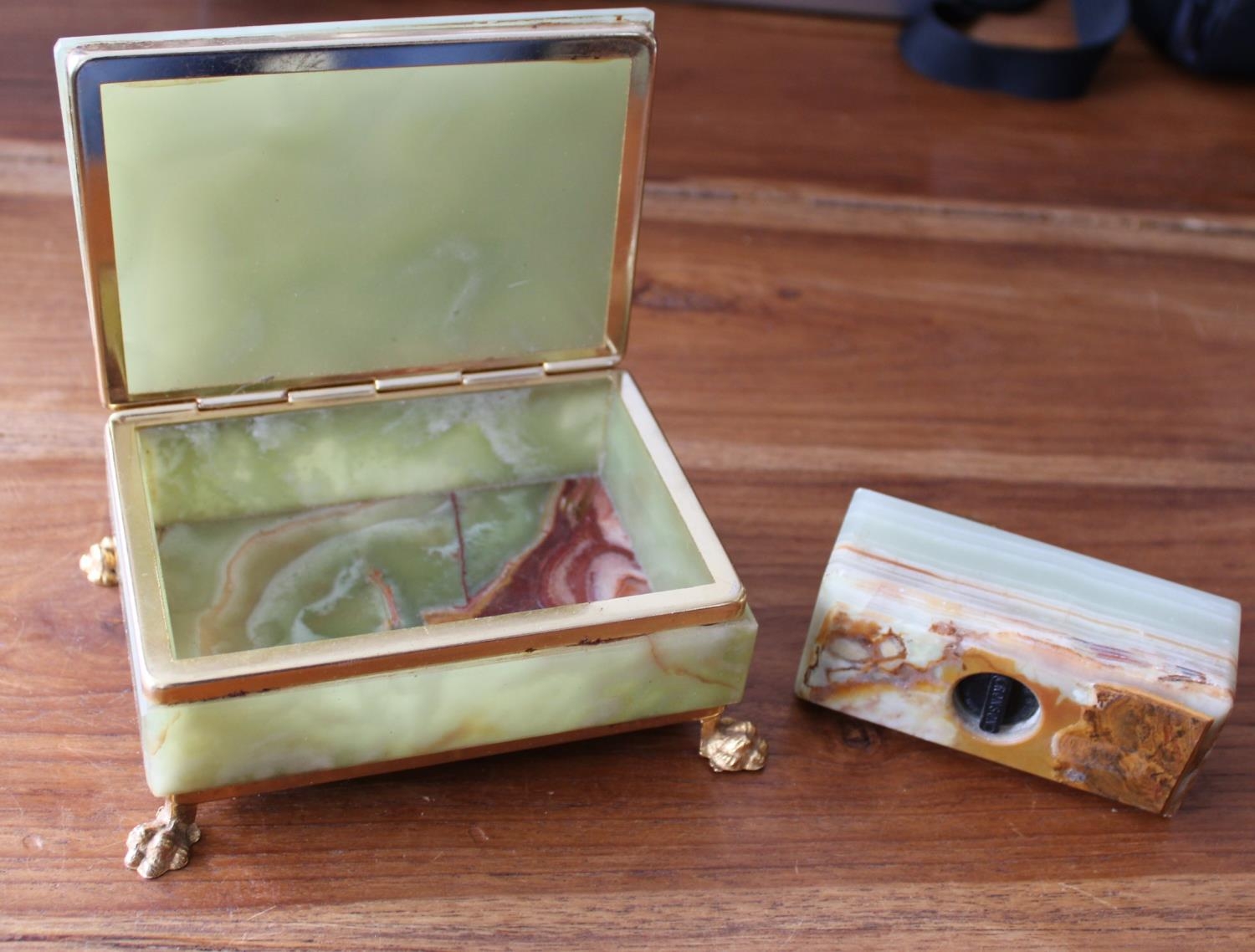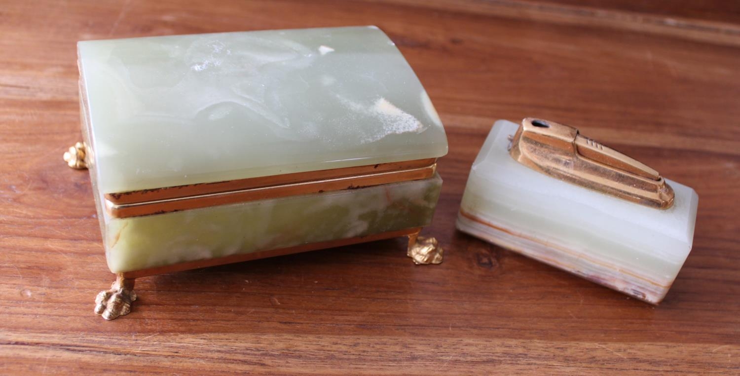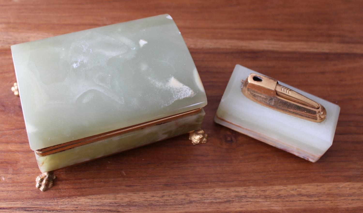 Jade Cigarette Lighter and Box on LegsBox measures 13cm x 9cmLighter measures 9.5cm x 4.5cm
