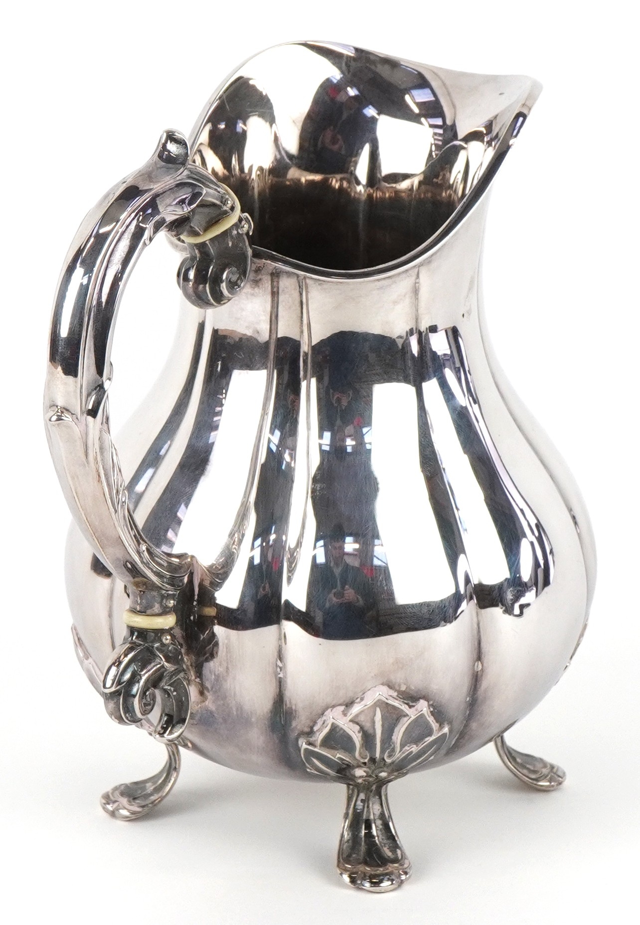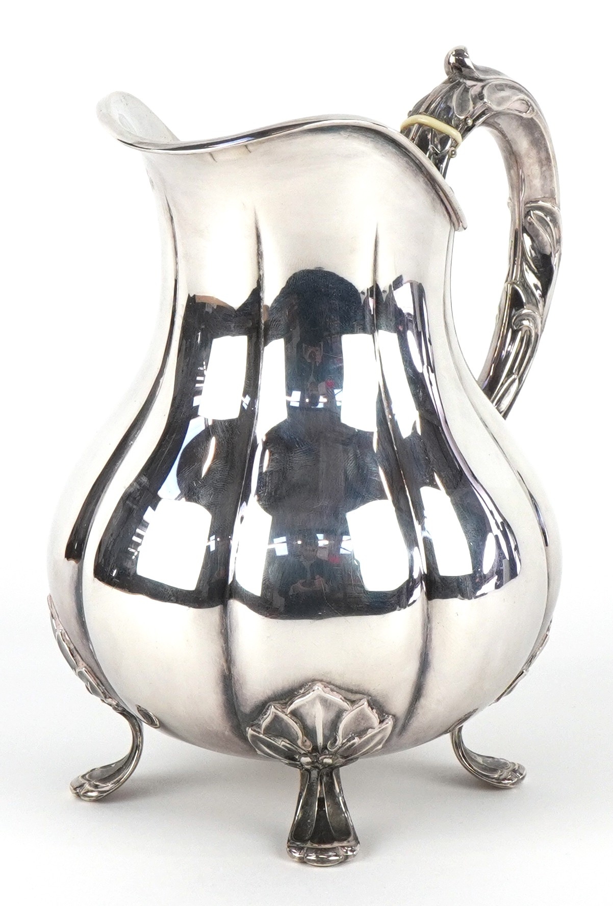 Carl M. Cohr of Fredericia, a Danish silver milk jug raised on four feet having naturalistic handle, Johannes Siggaard, 1940, 16cm high, 379.5g.