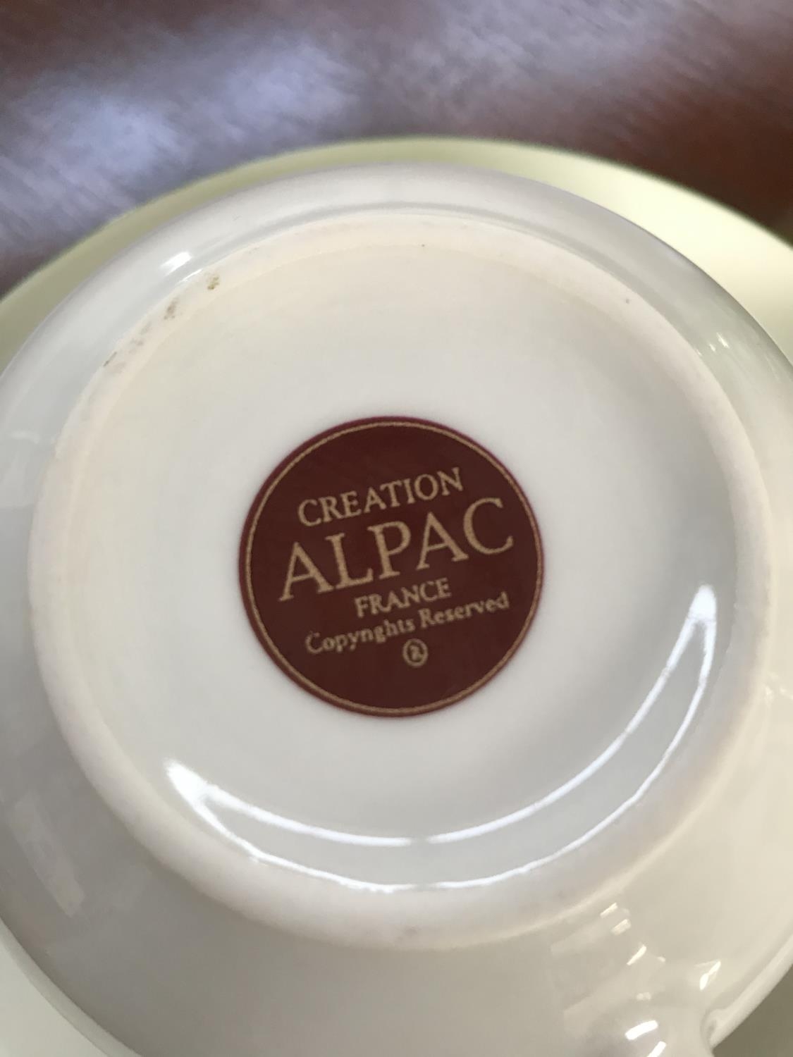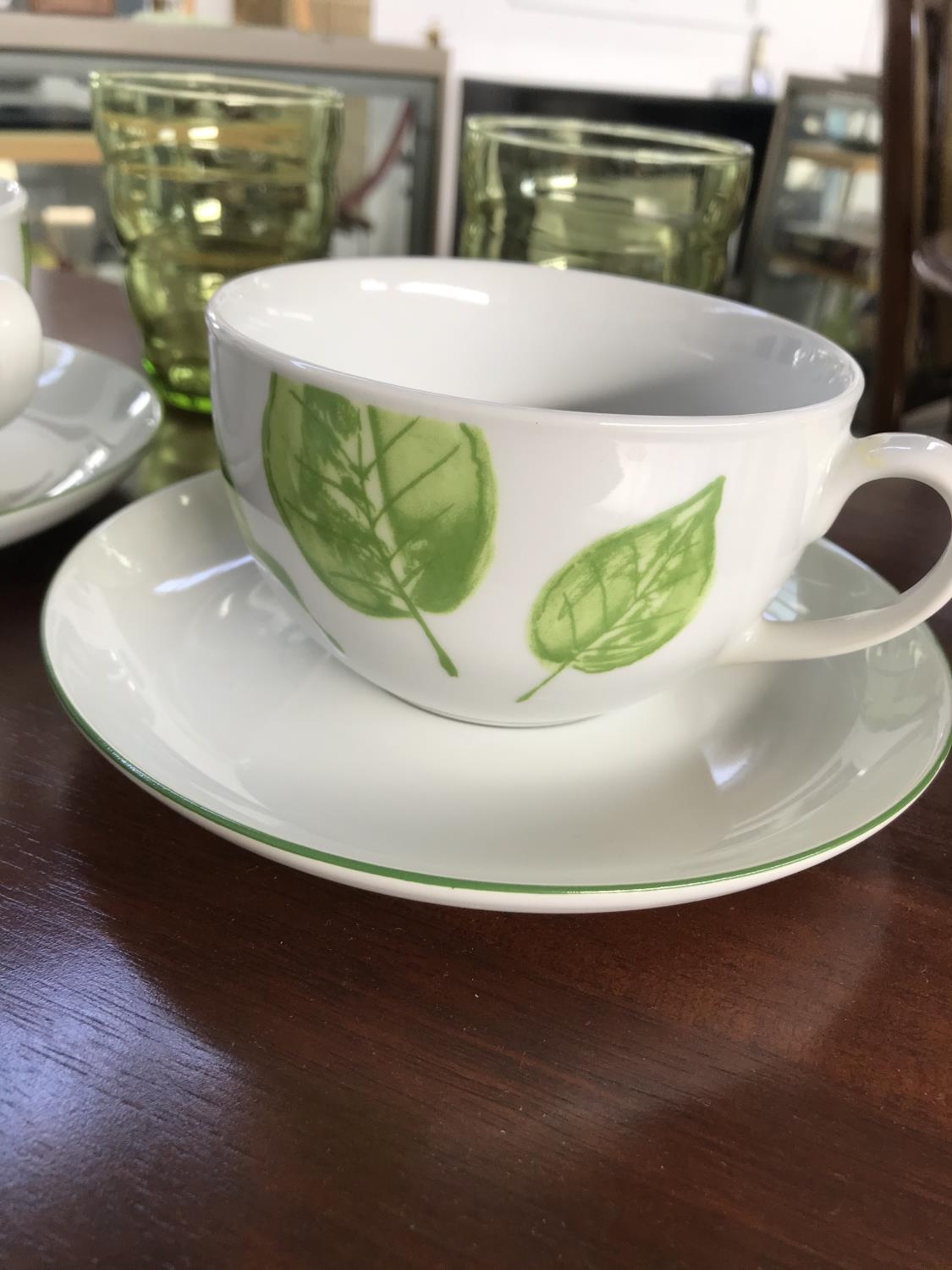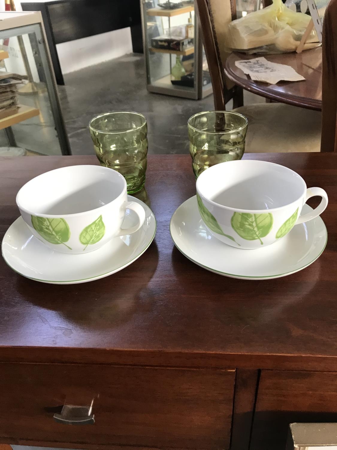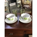Pair of Alpac France Large Green Coffee Cups with Saucers with 2 Green Glasses