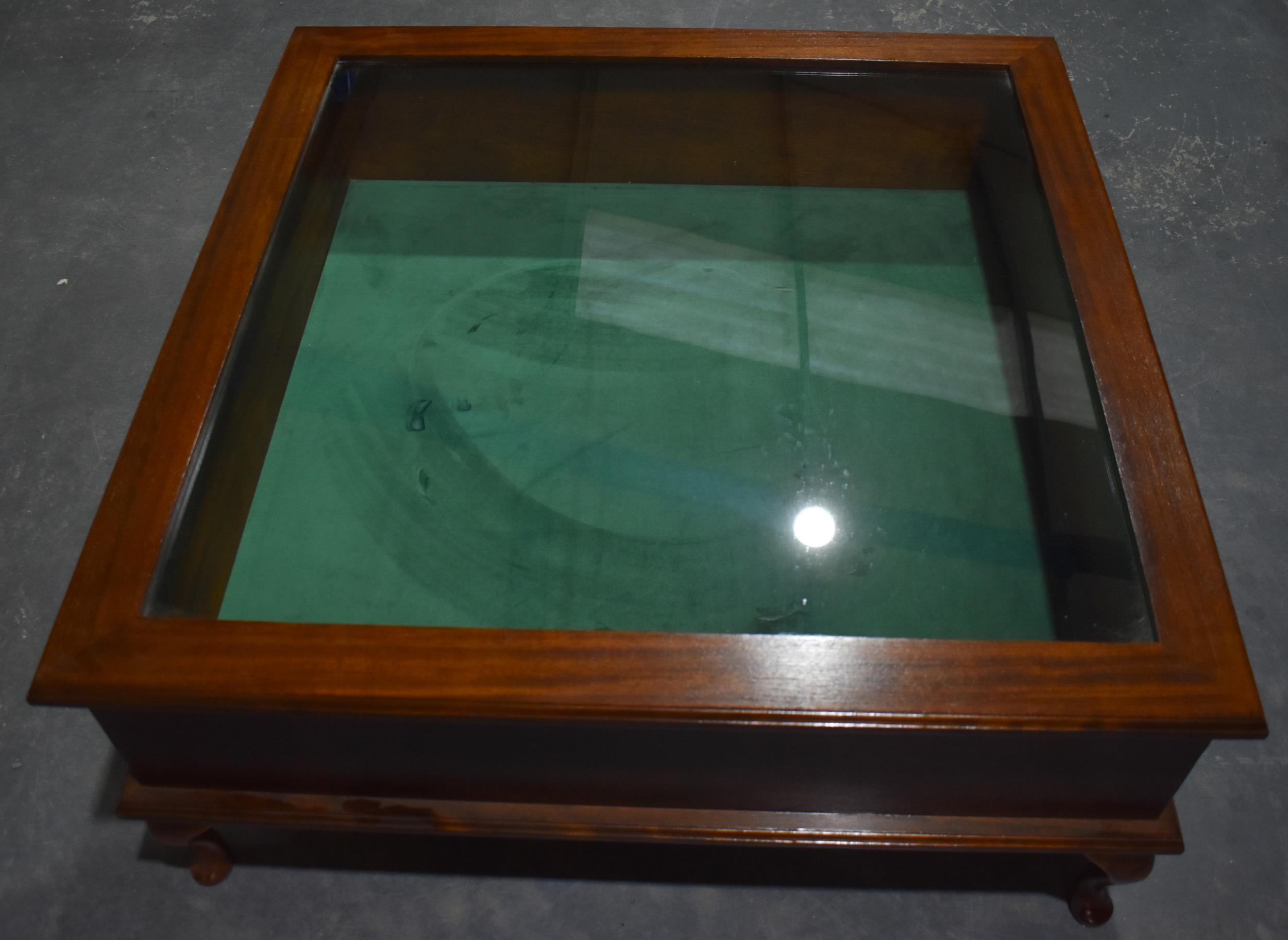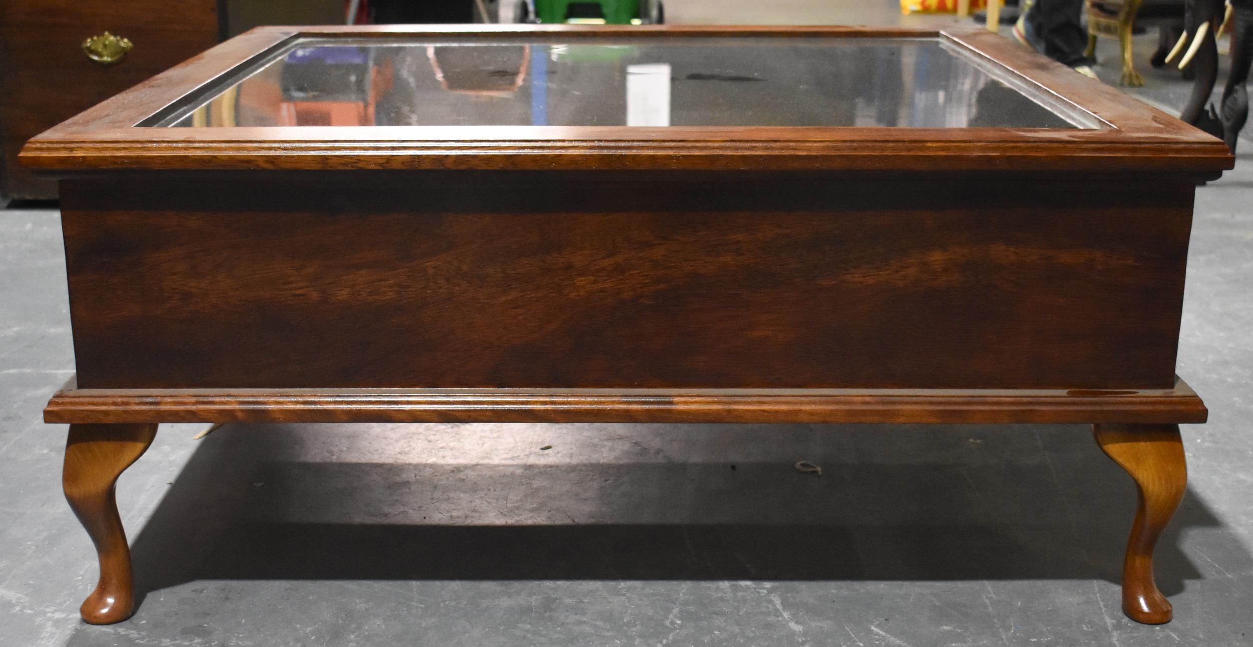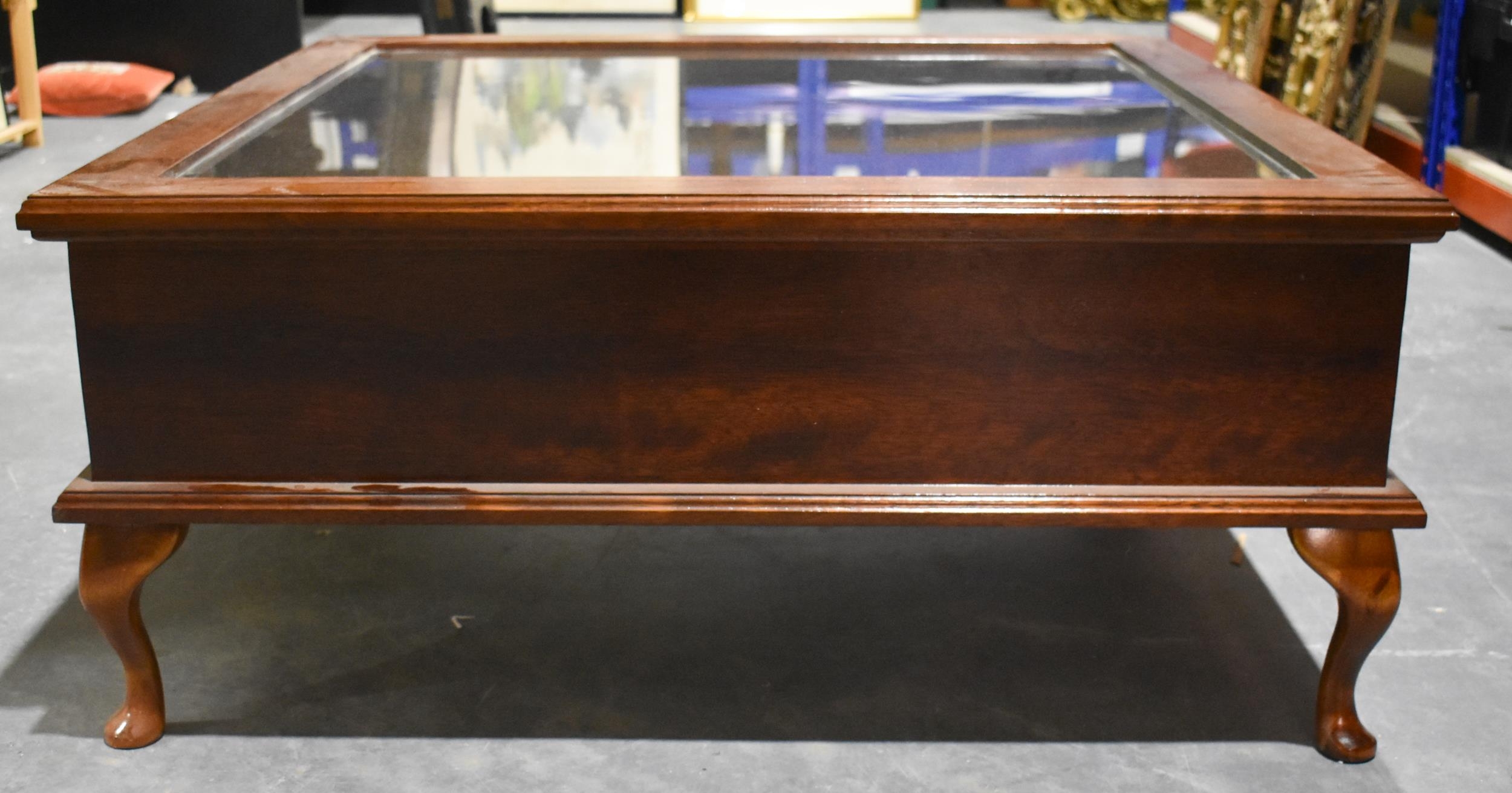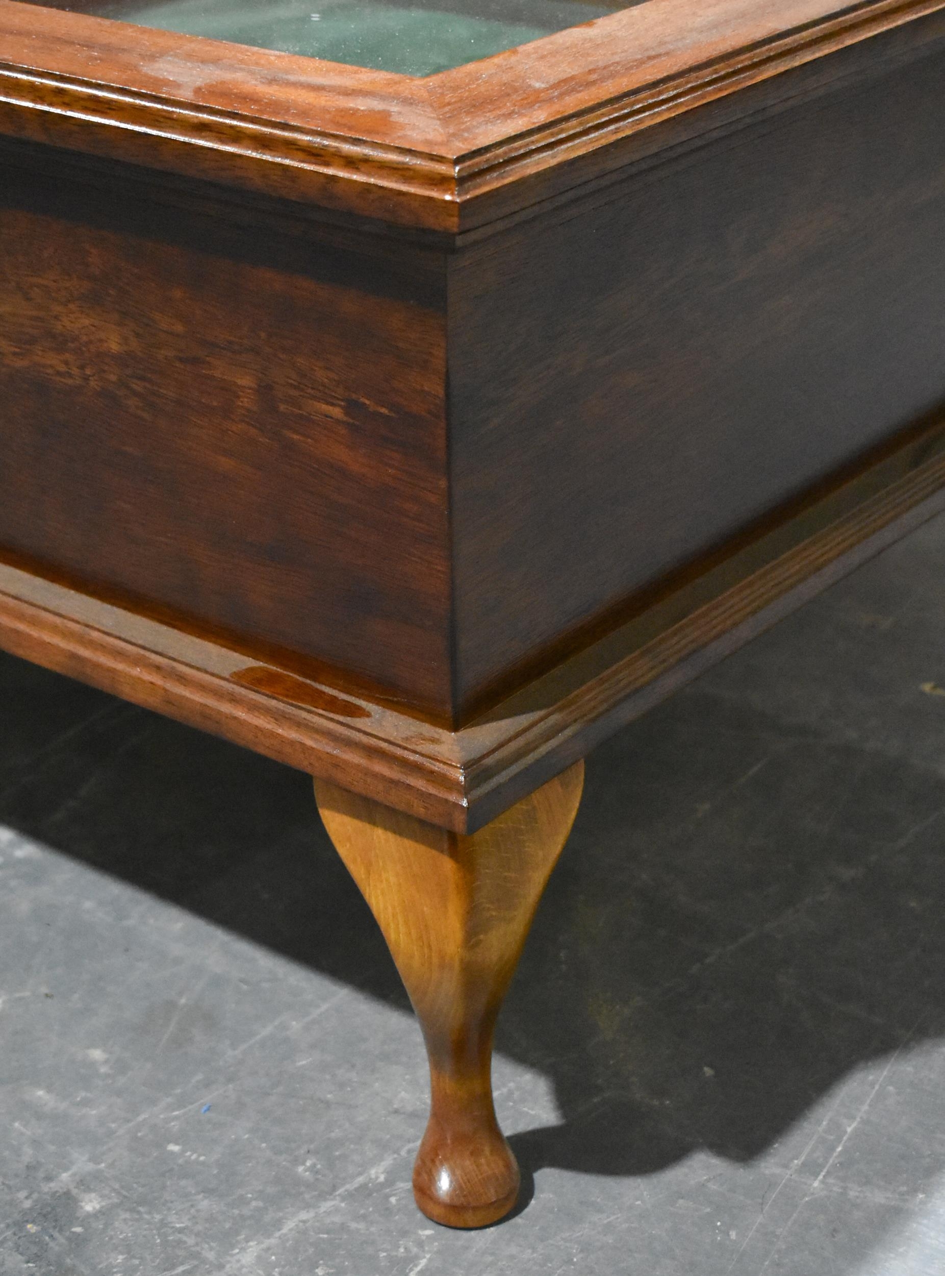A FINE CUSTOM MADE MAHOGANY GLASS DISPLAY CASE upon cabriole legs. 104 cm x 45 cm.