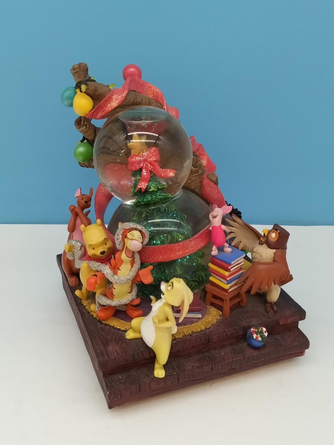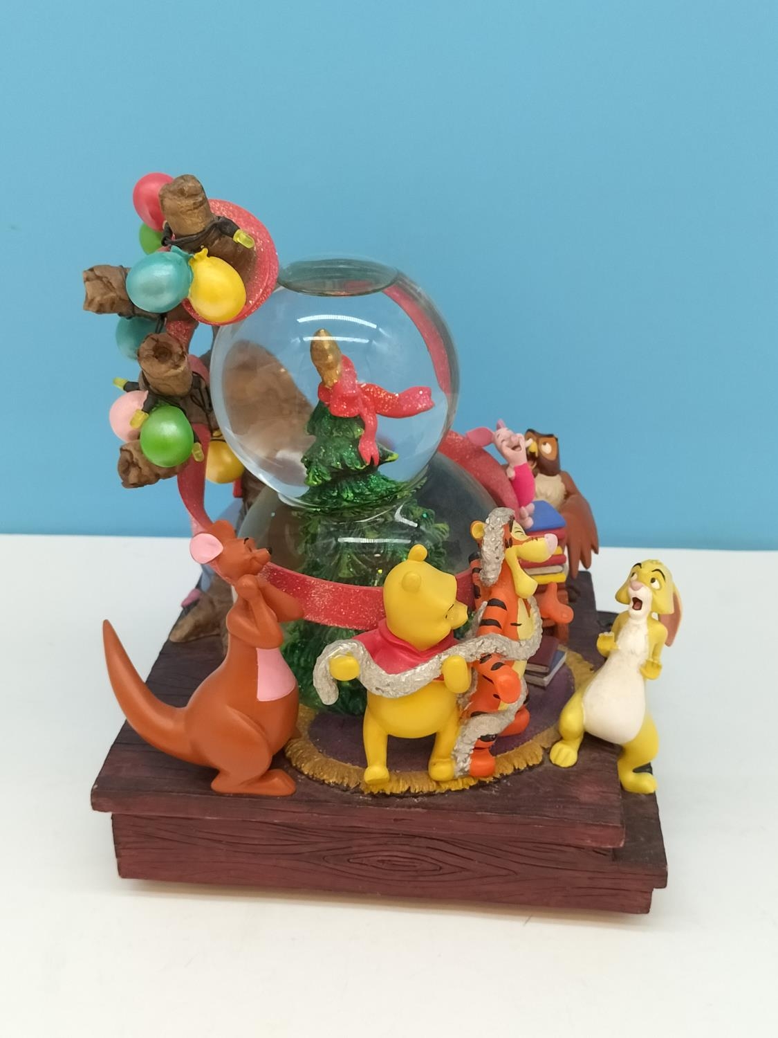 Disney Winnie the Pooh and Friends Illuminated Christmas Snow Globe W/O with Independant Wind Up Musical Option. Requires Batteries. 22cm High, 18cm x 17cm.