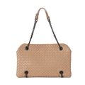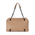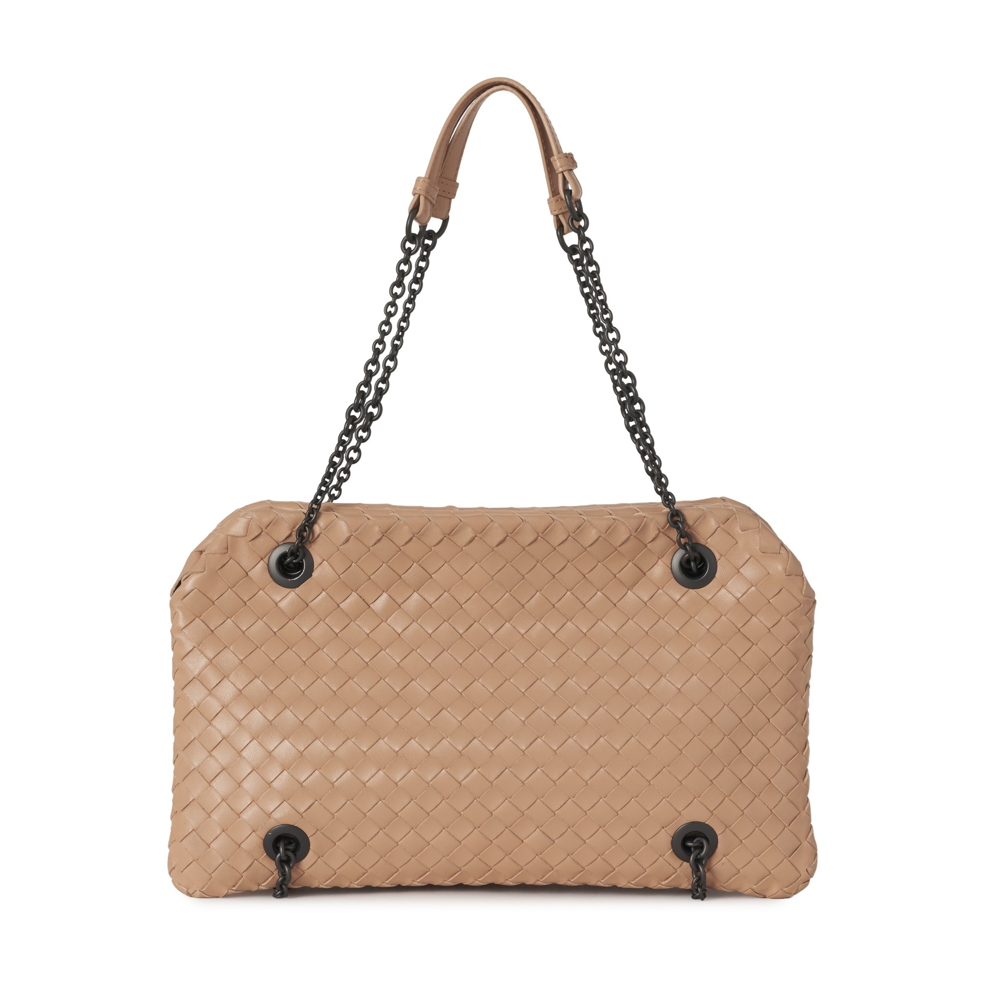 Bottega Veneta, a nappa Intrecciato Duo shoulder bag, crafted from beige woven leather, with matte gunmetal hardware, chain link and leather shoulder straps, and two separate compartments with magnetic snap button fastenings, measuring 6 by 18.5 by 31cm, with maker's dust bag