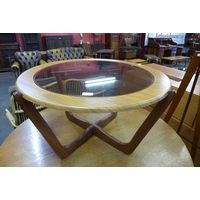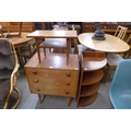 A small teak chest of drawers, a corner whatnot and occasional table