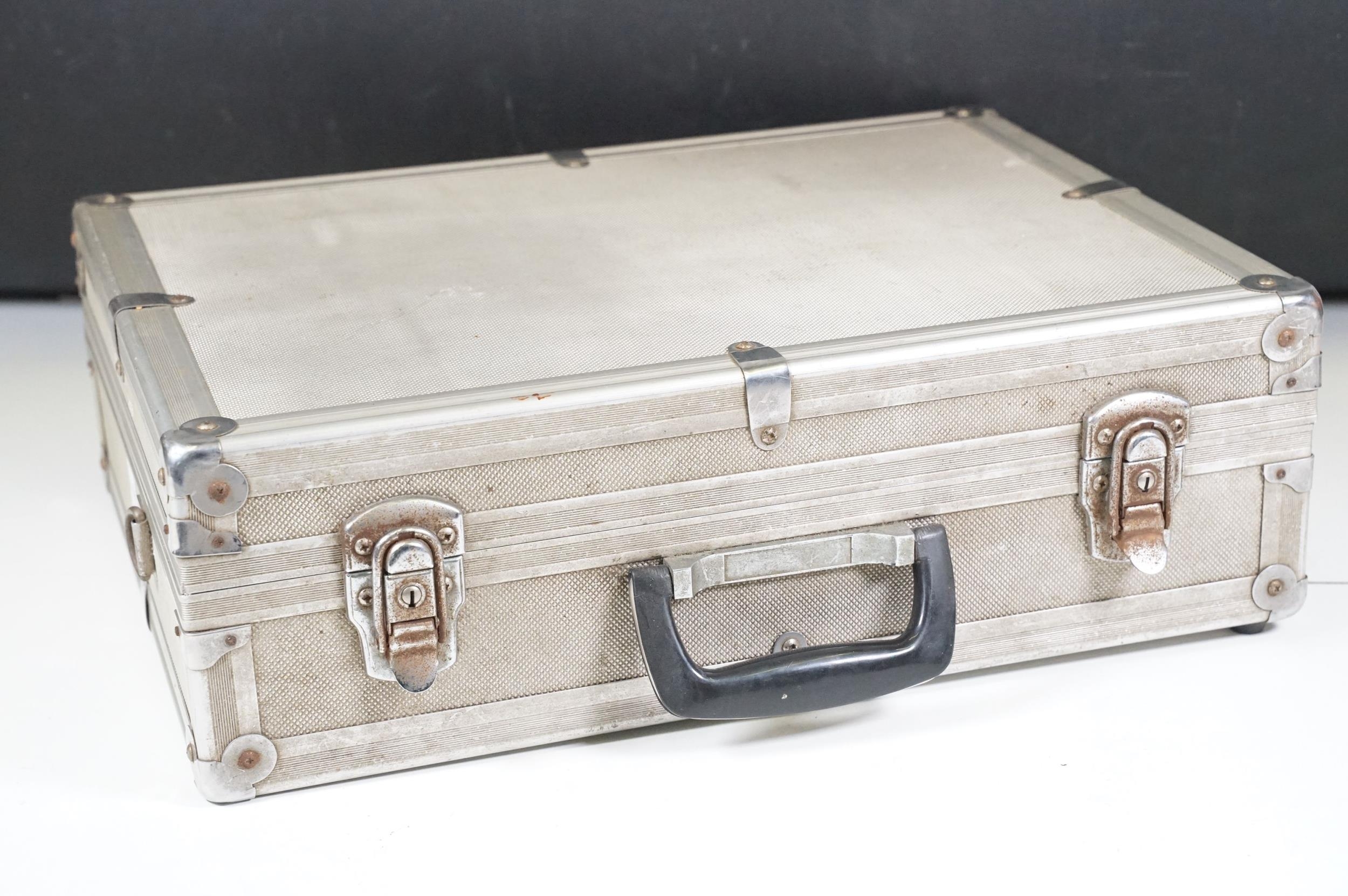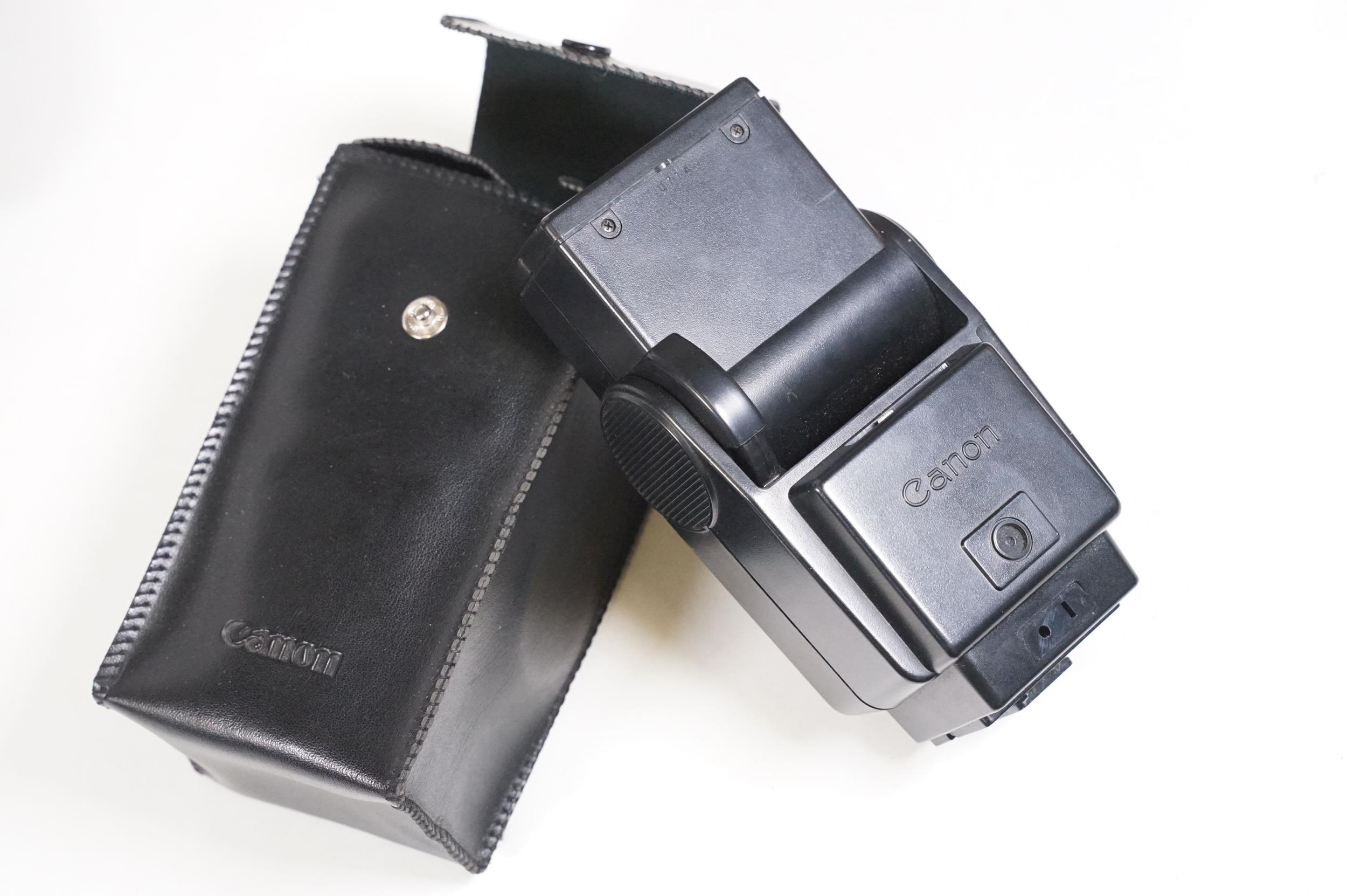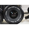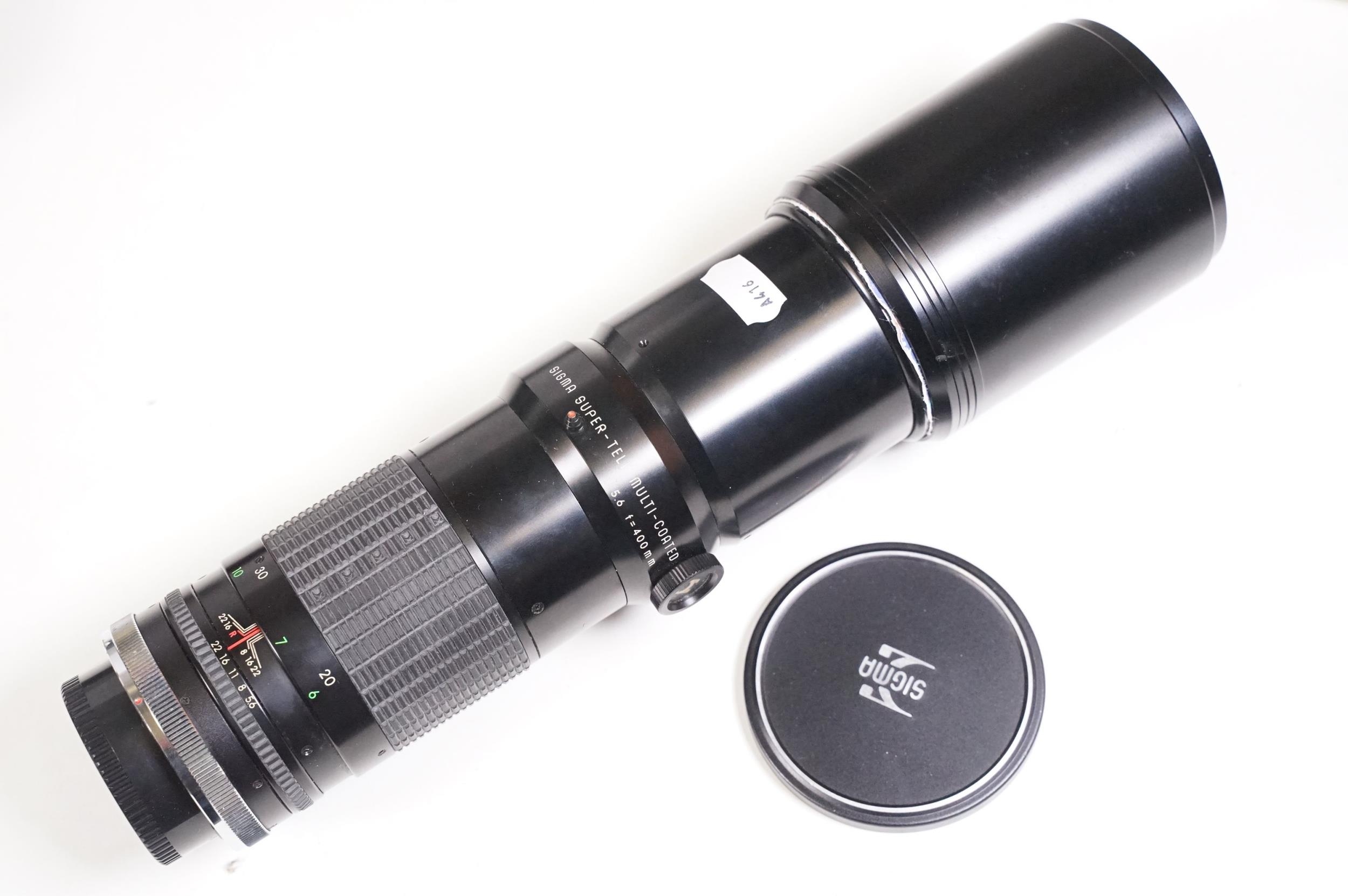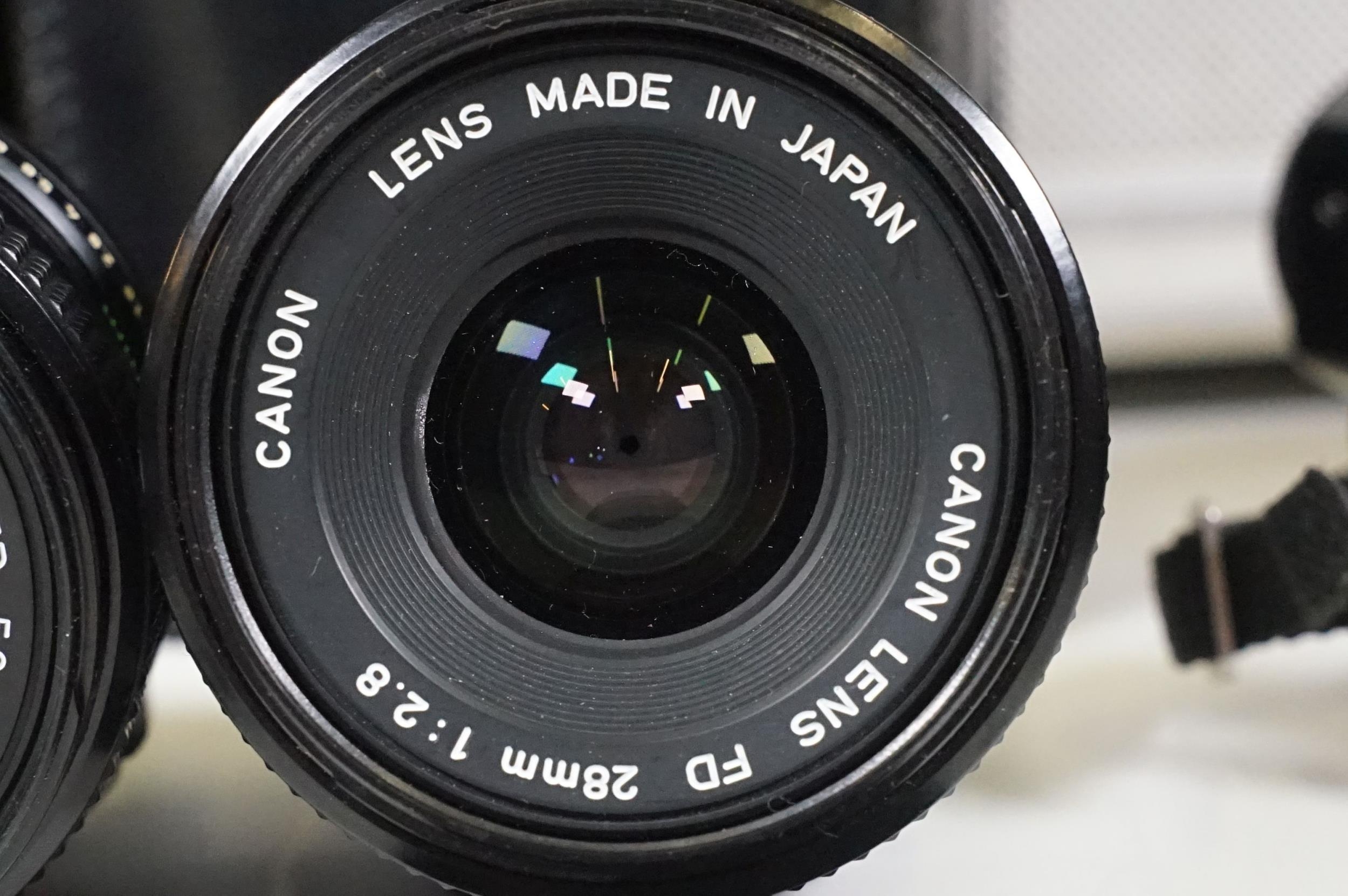 Collection of cameras, lenses and equipment contained within a padded case to include Canon A-1 35mm SLR camera, Sigma Super-Tele Multi-Coated, Canon Speedlite 199A, Canon Power Winder A, Canon Lens FD 50mm f/1.8, etc, plus a Prisma tripod stand