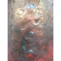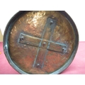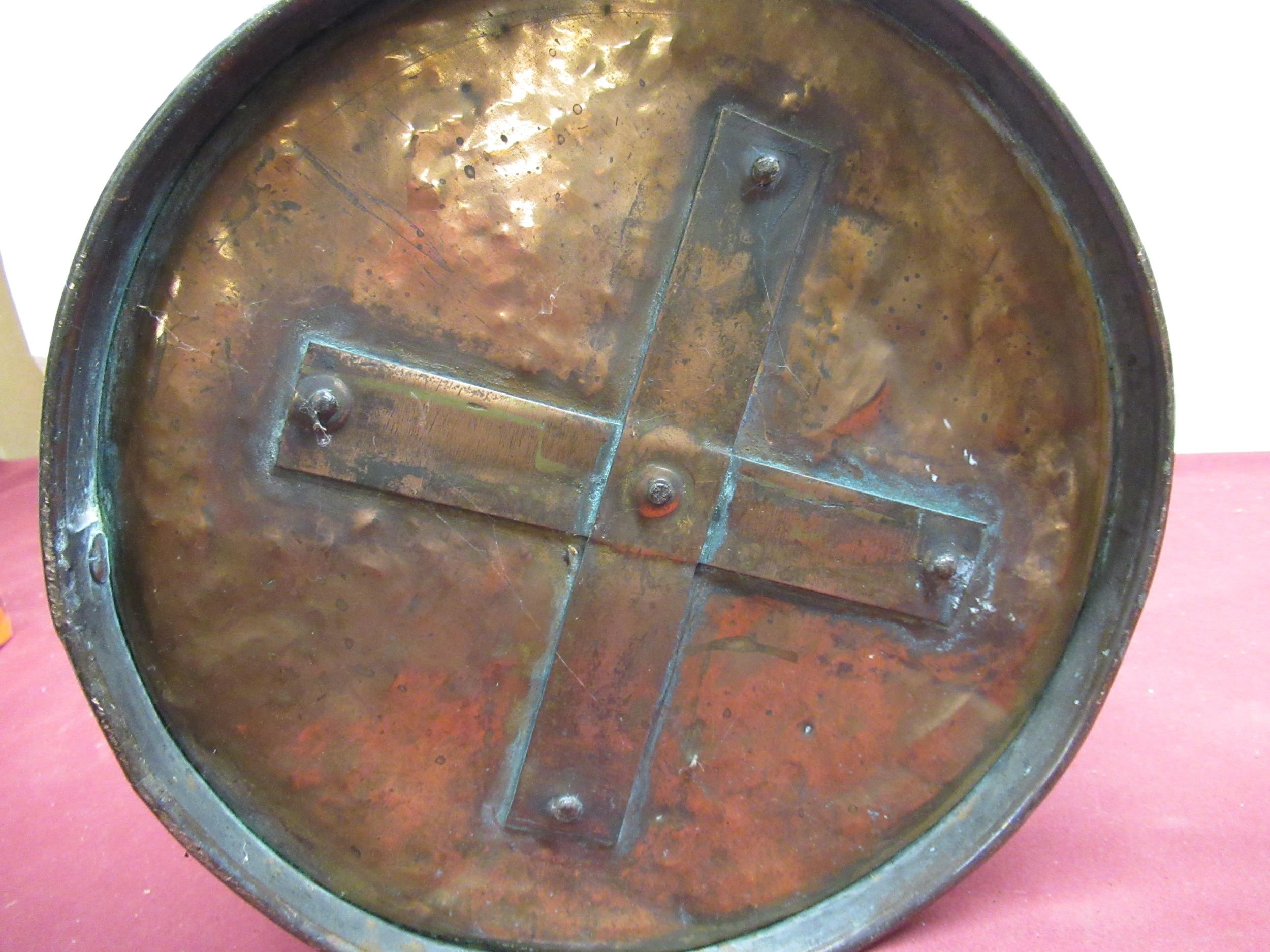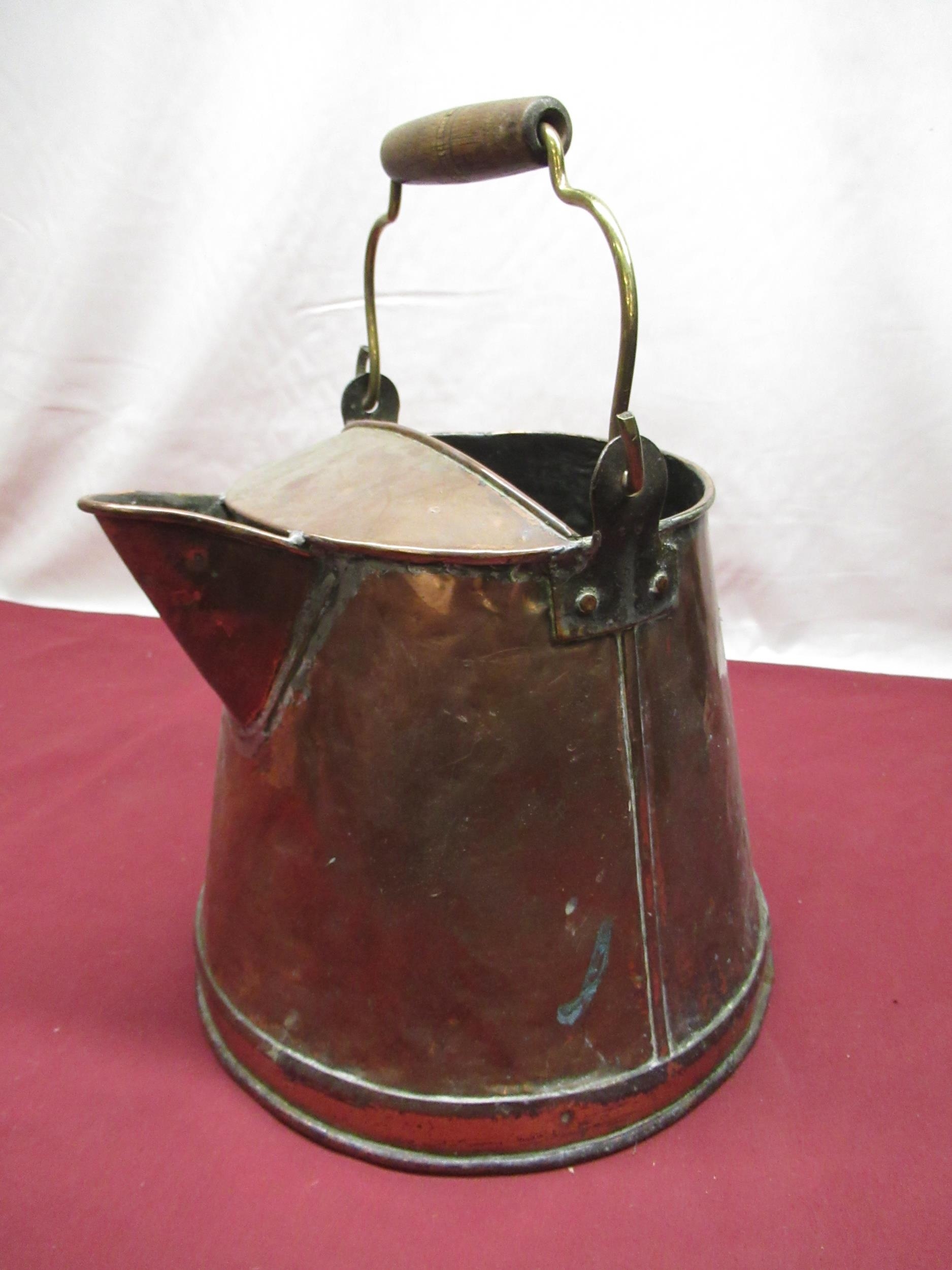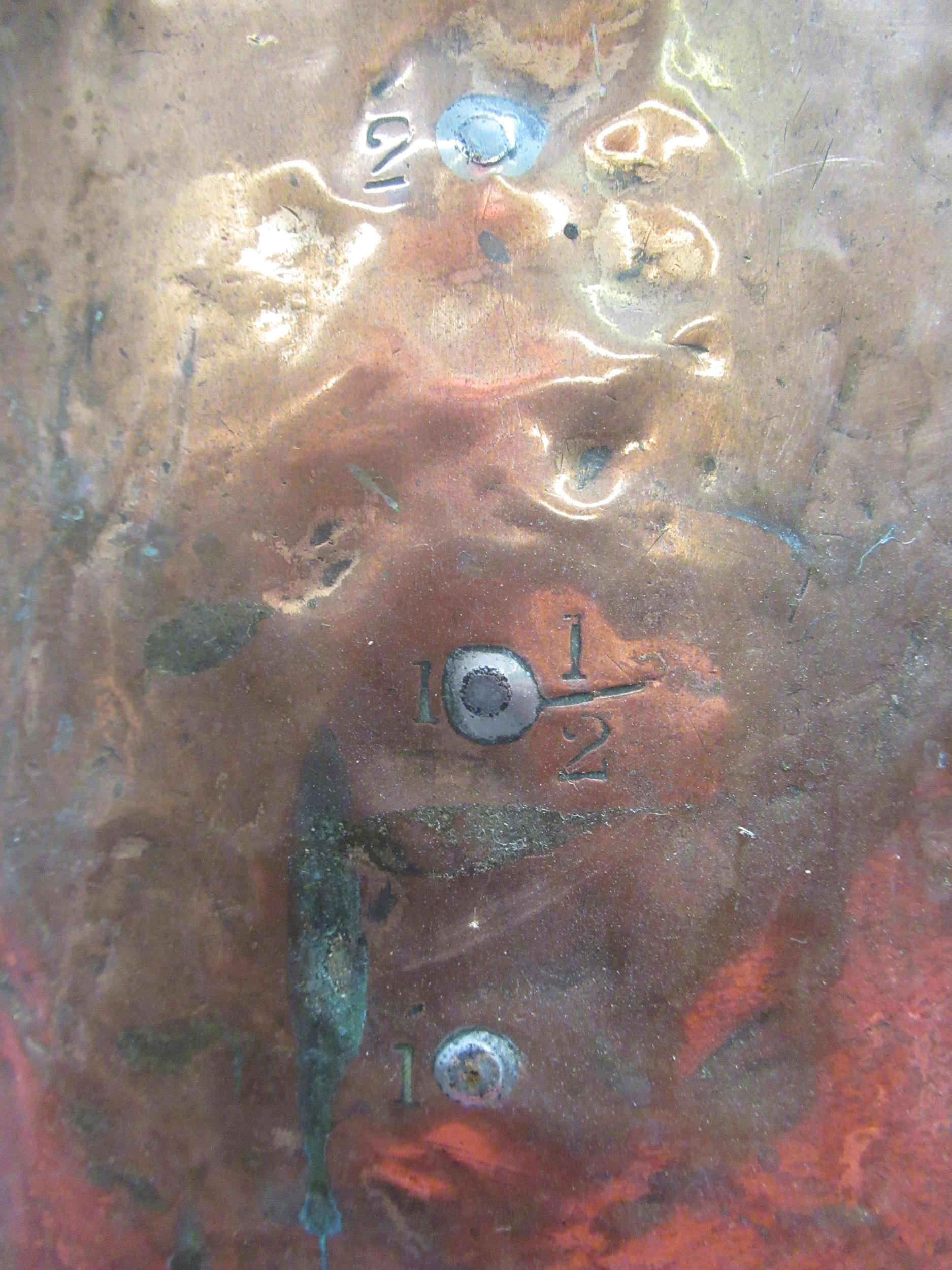 Copper two gallon cream type churn with brass swing handle, H29cm