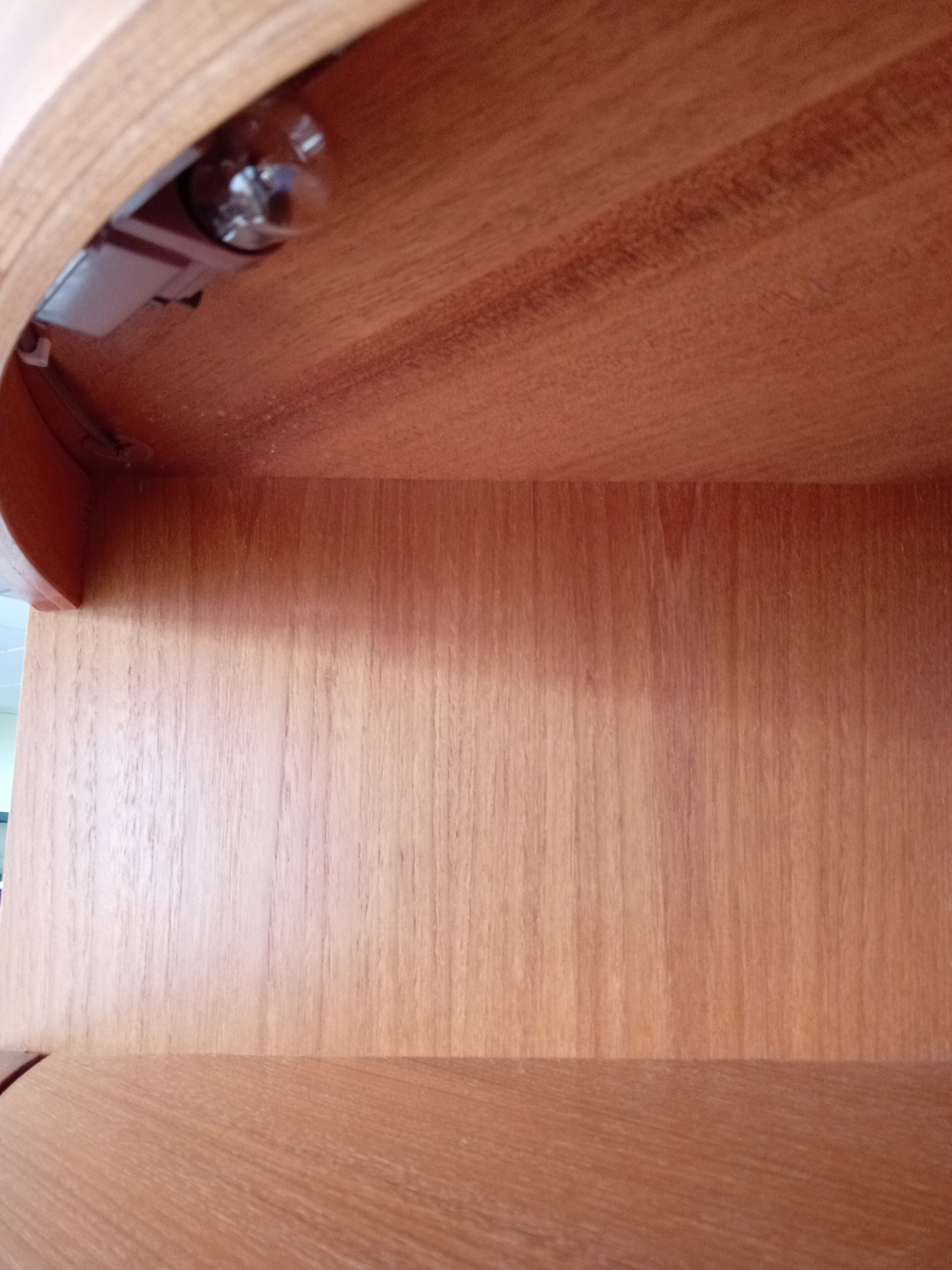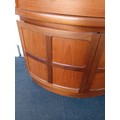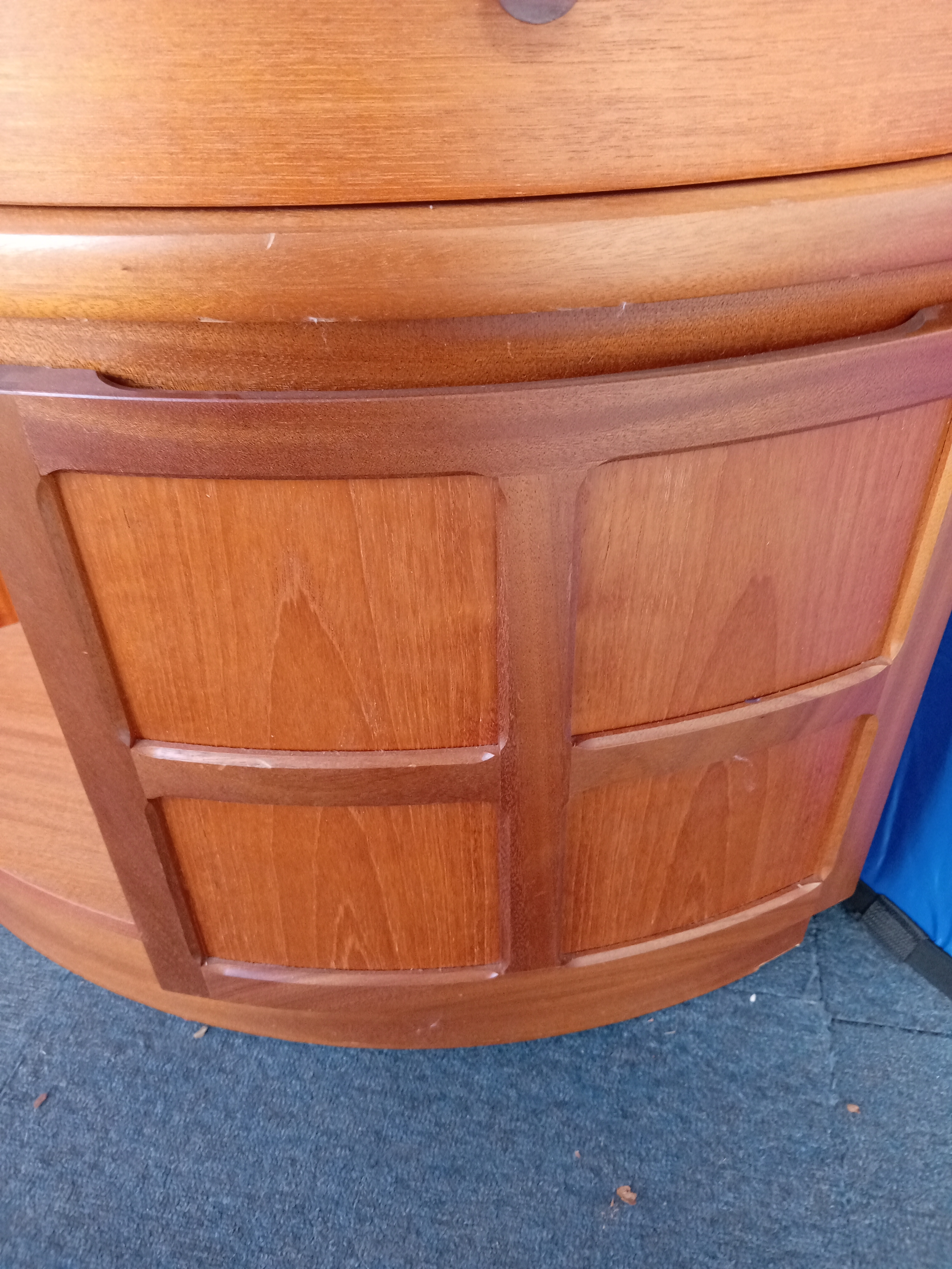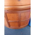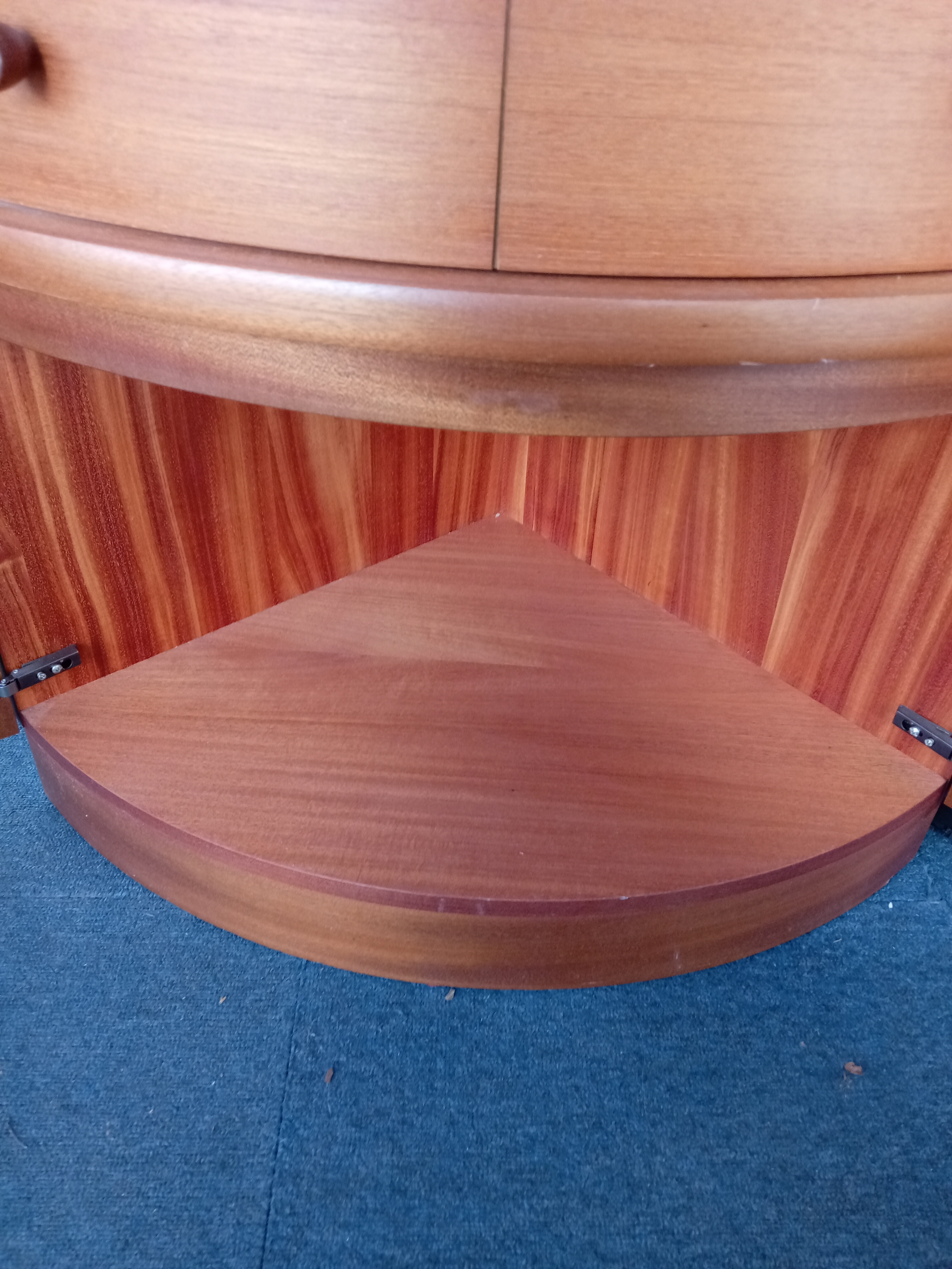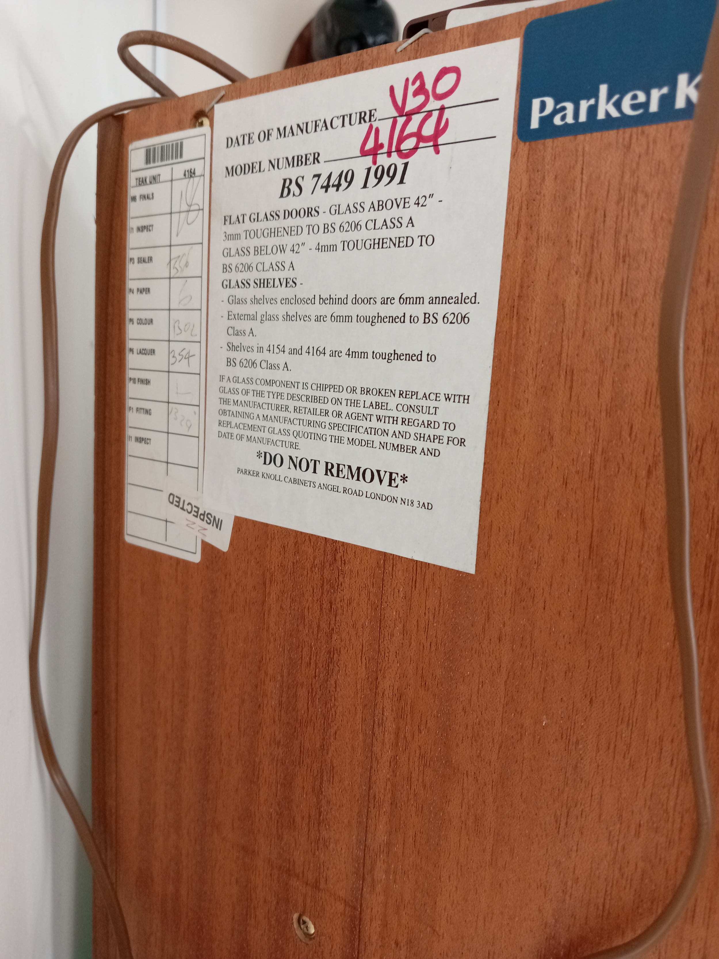 A mid century Modern MCM teak Parker Knoll Nathan Corner display cabinet. Measures H 194cm x D 44cm x L 75cm.