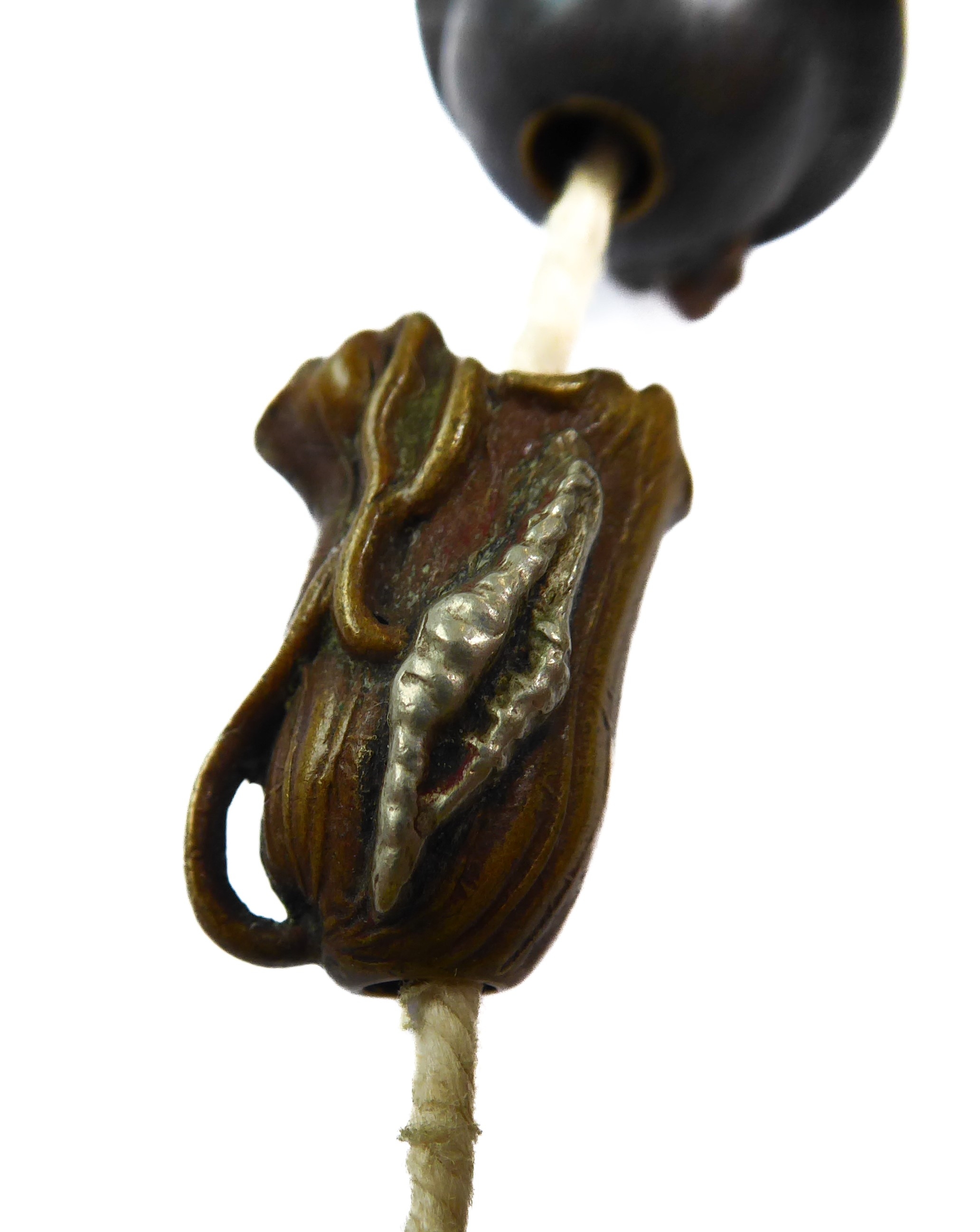 Condition Report: Metals untested but thought to be possibly a mixture of bronze, low grade silver and brass. The largest beads are 24mm x 12mm , 23mm x 9mm.