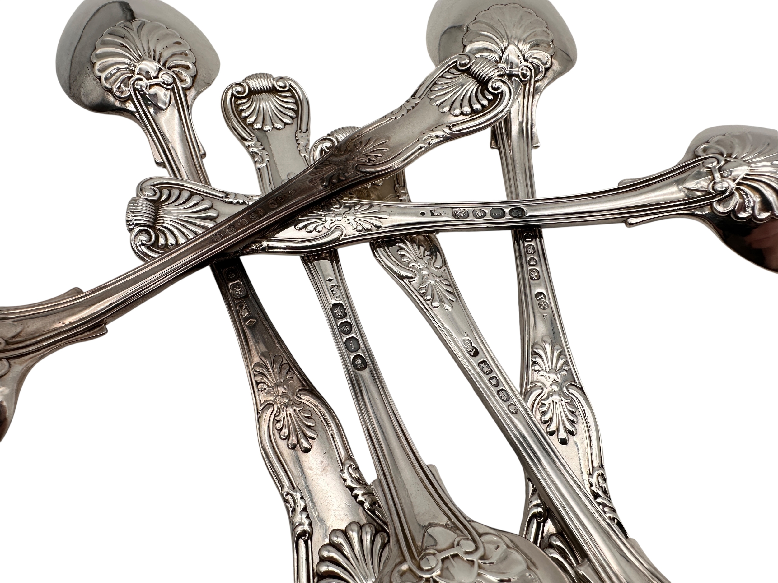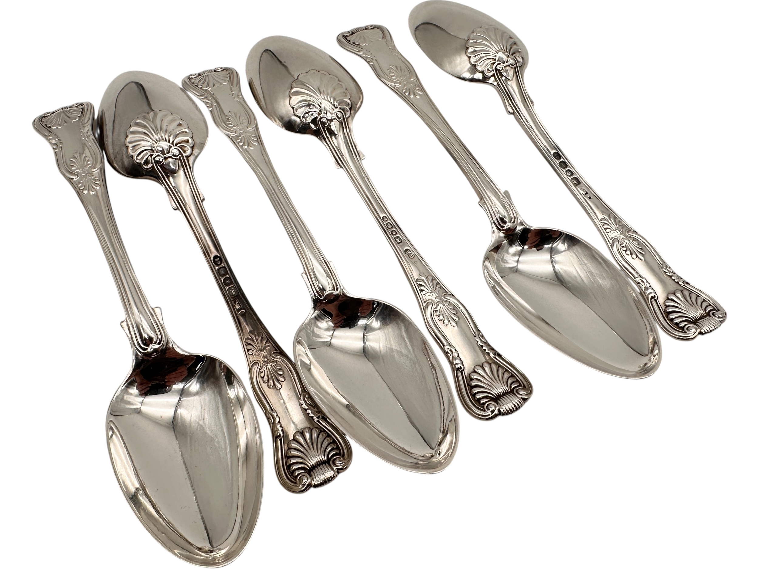 Set of Six Georgian & Victorian Hallmarked Silver Dessert Spoons. 378g