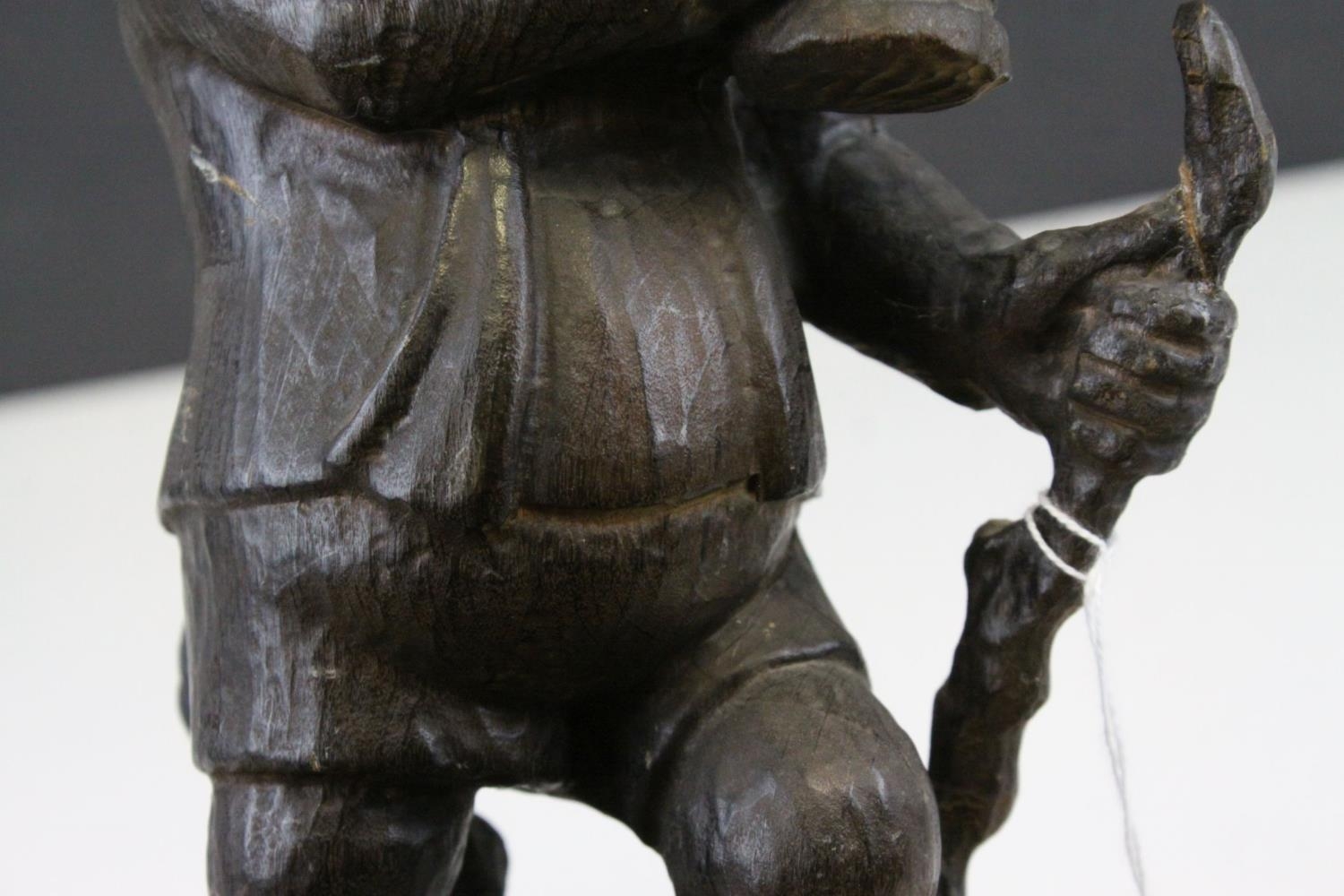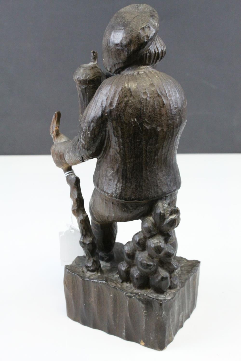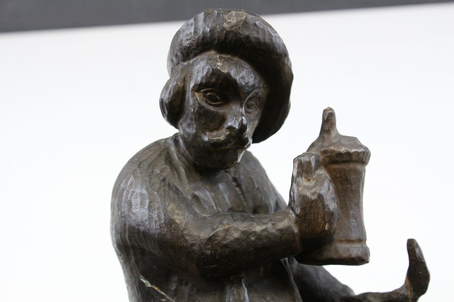 Black Forest Style Carved Wooden Man holding a Beer Stein and Walking Stick, 28cms high