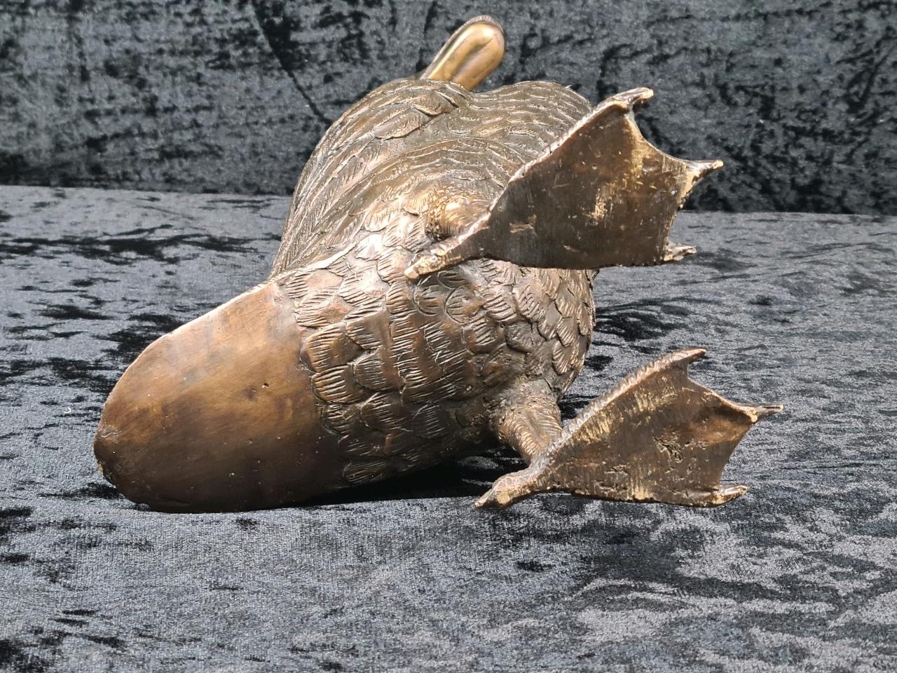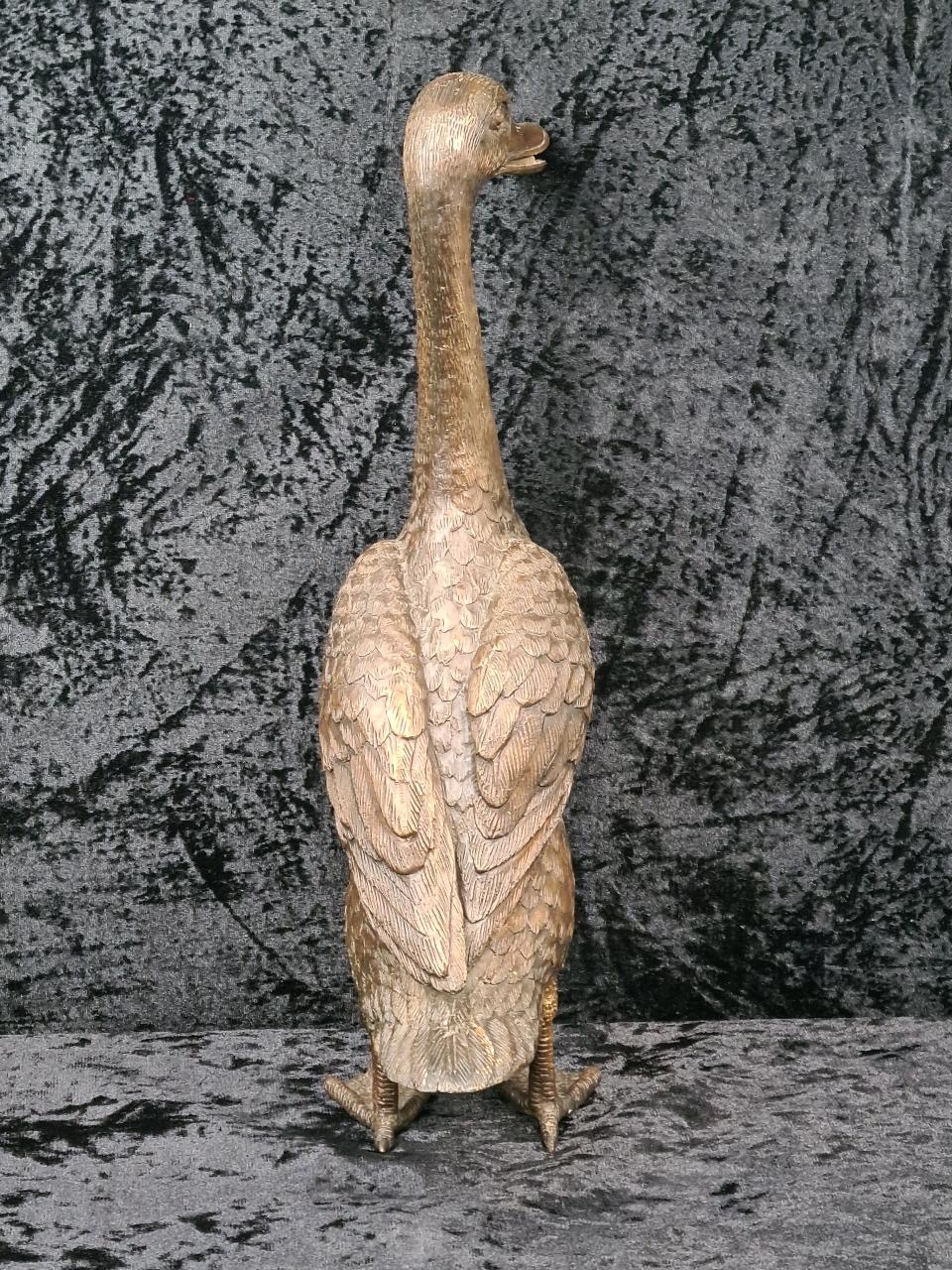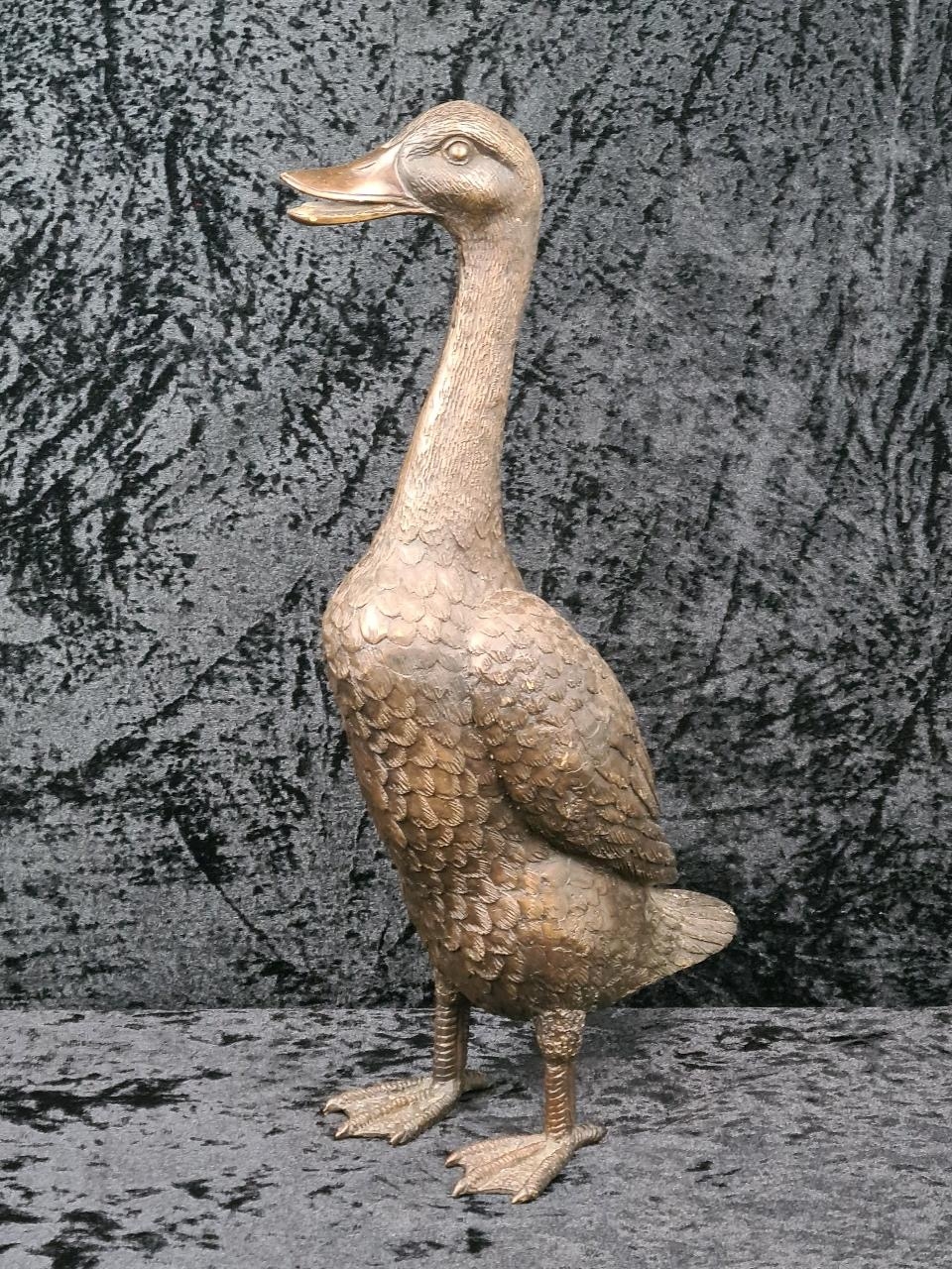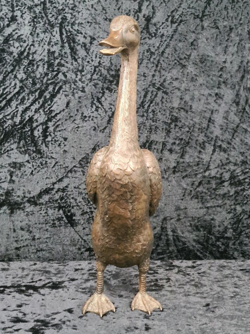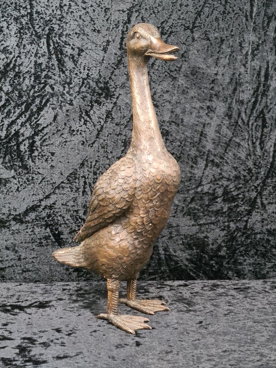 Wonderful cast bronze sculpture of an Indian Runner Duck with intricate feather detailing. Approx H43cm.