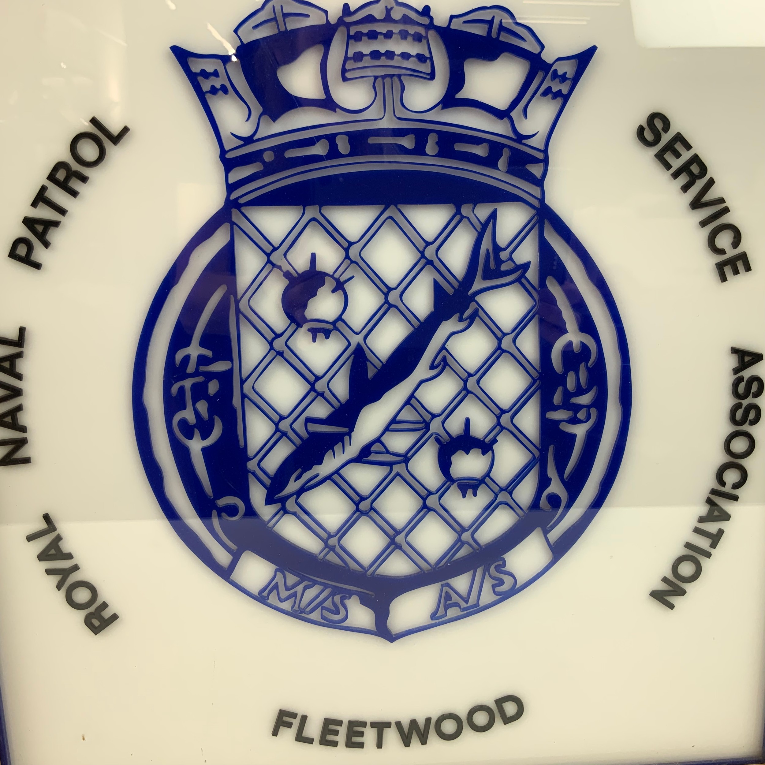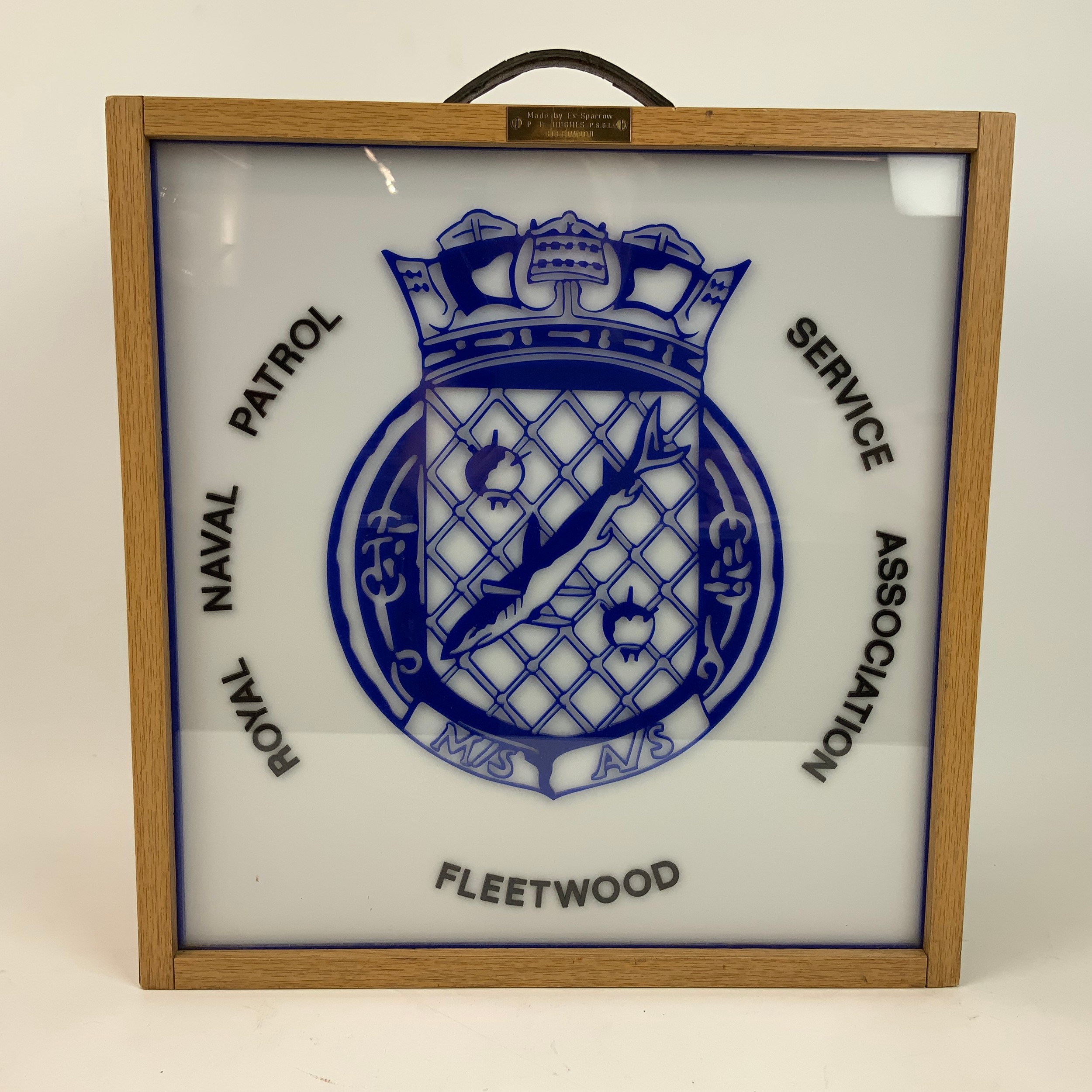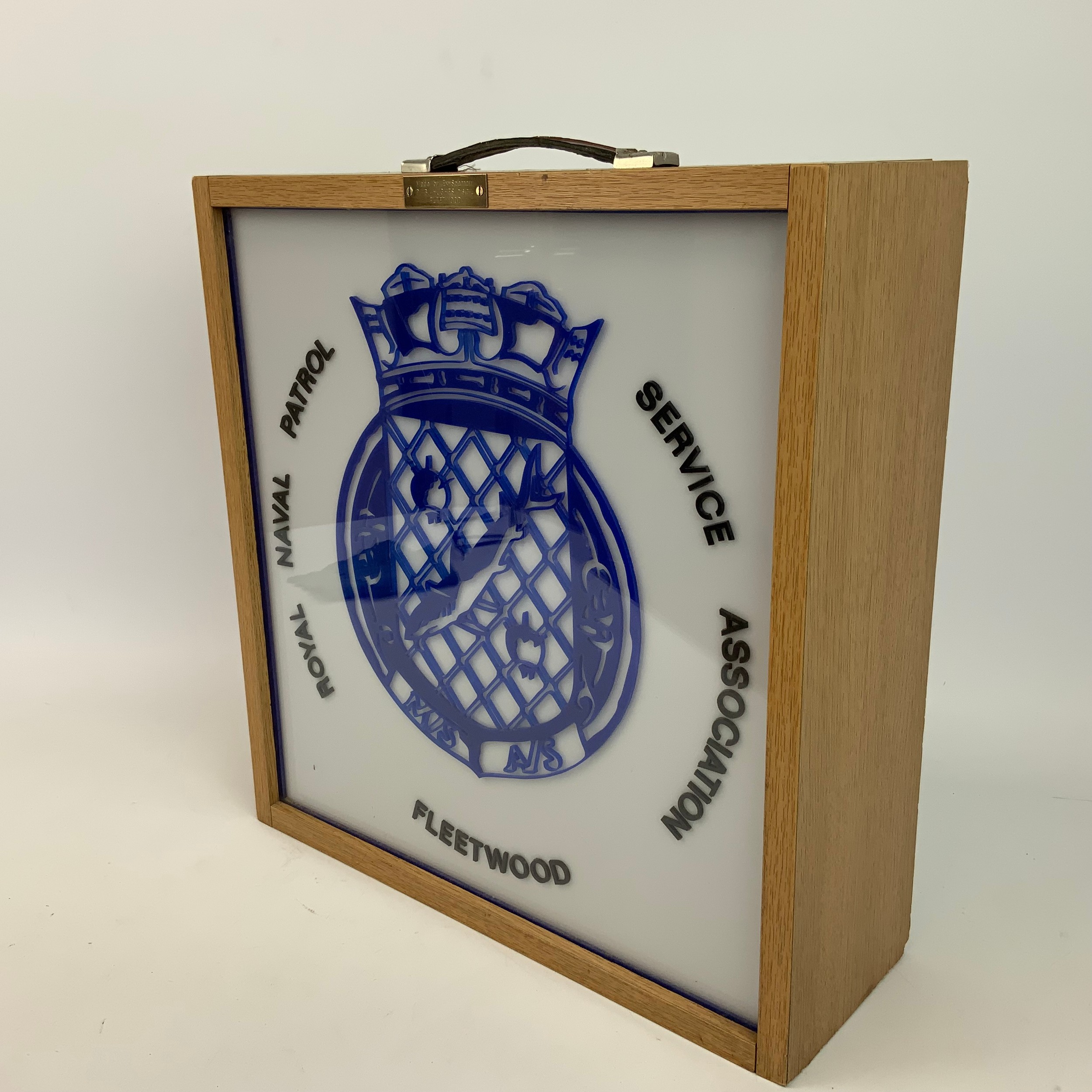 Royal Naval Patrol Service Association Fleetwood light box with brass inscribed plaque. 44.2cm x 45.5cm