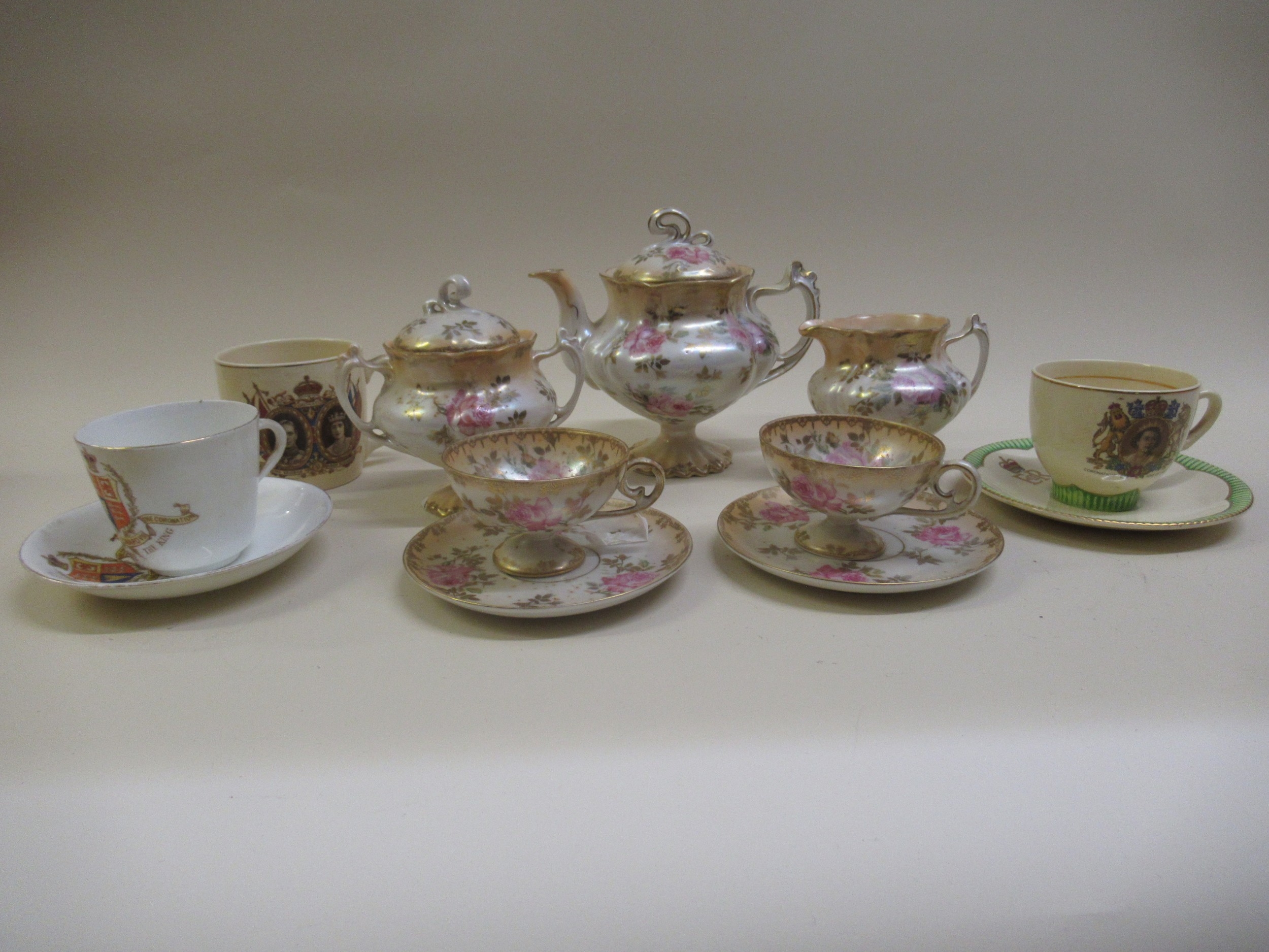 Limoges rose decorated porcelain part coffee service, together with three items of commemorative china