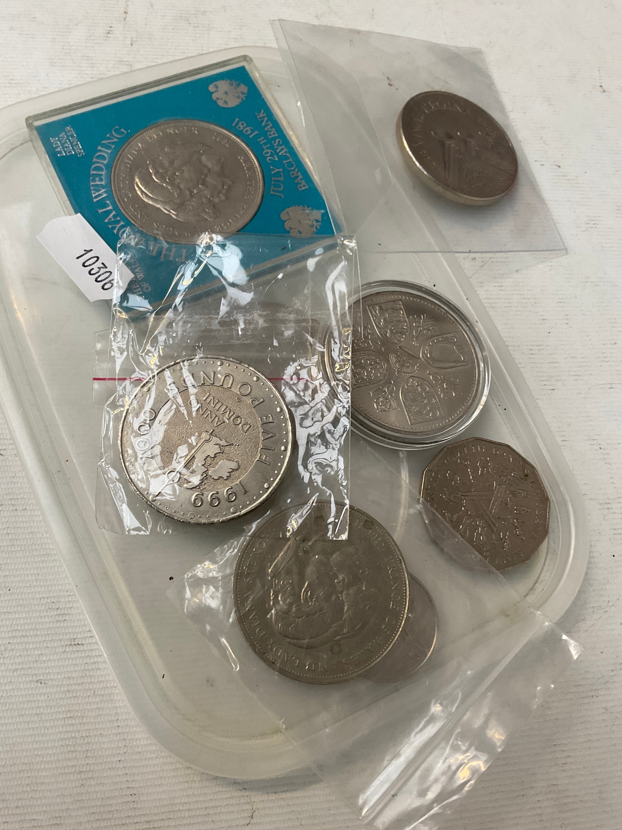 Lot inc crowns and five pound coin