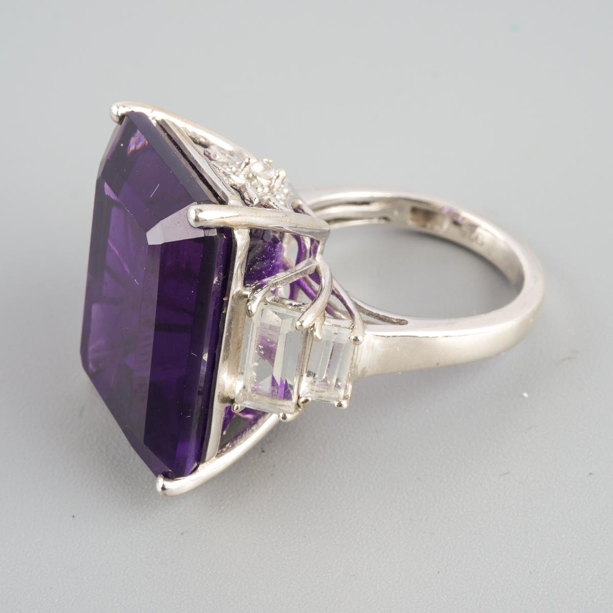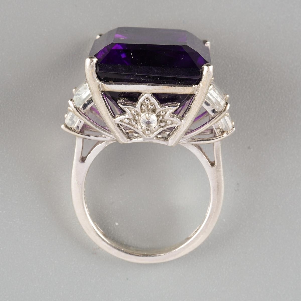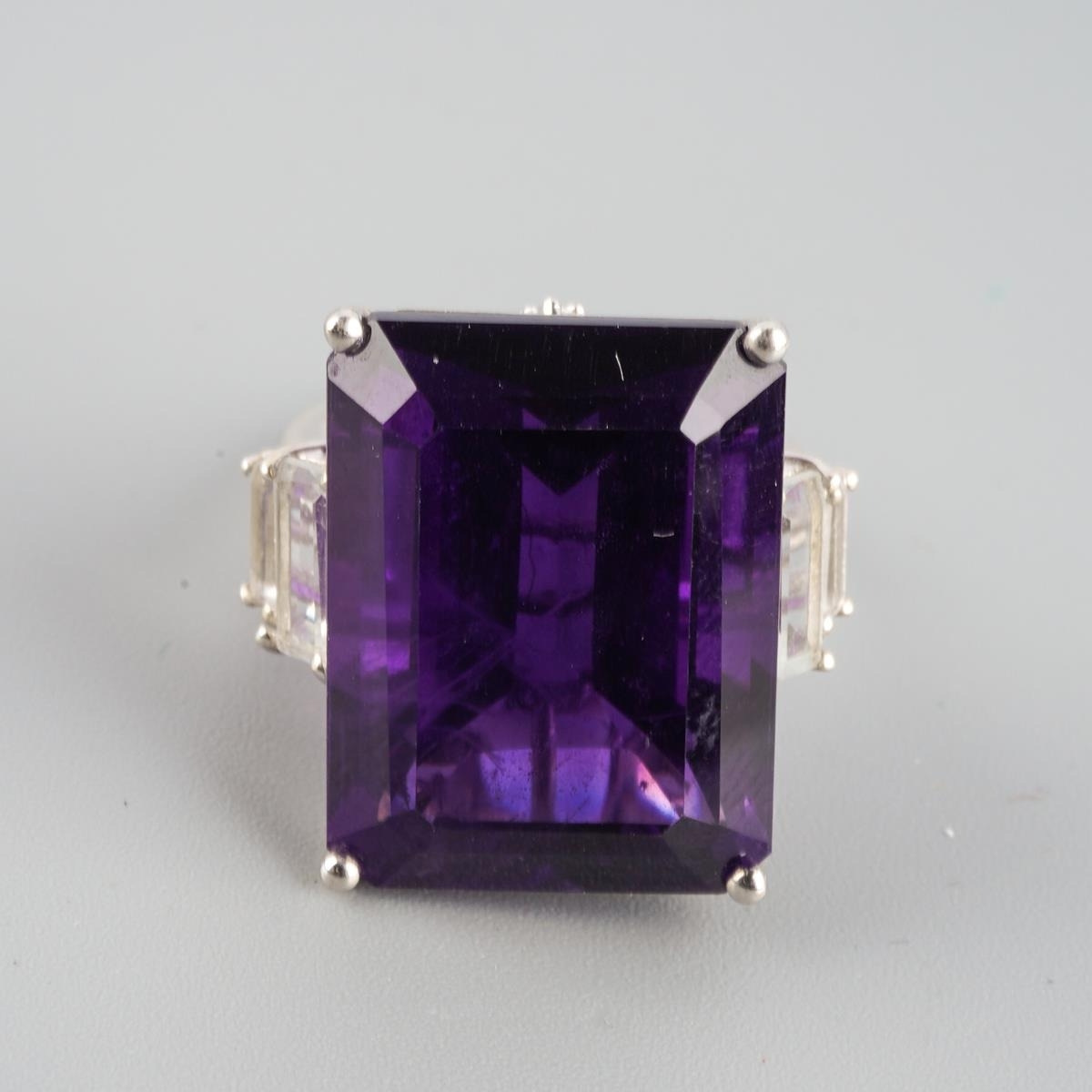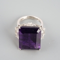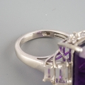 An amethyst single stone ring. Stamped 925, approx ring size L, approx gross weight 9.69 grams.