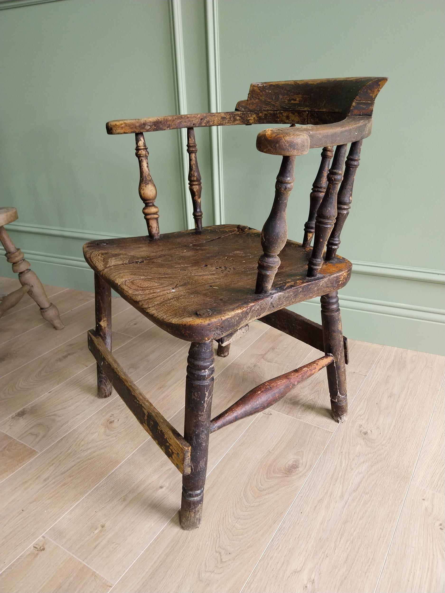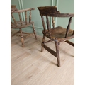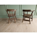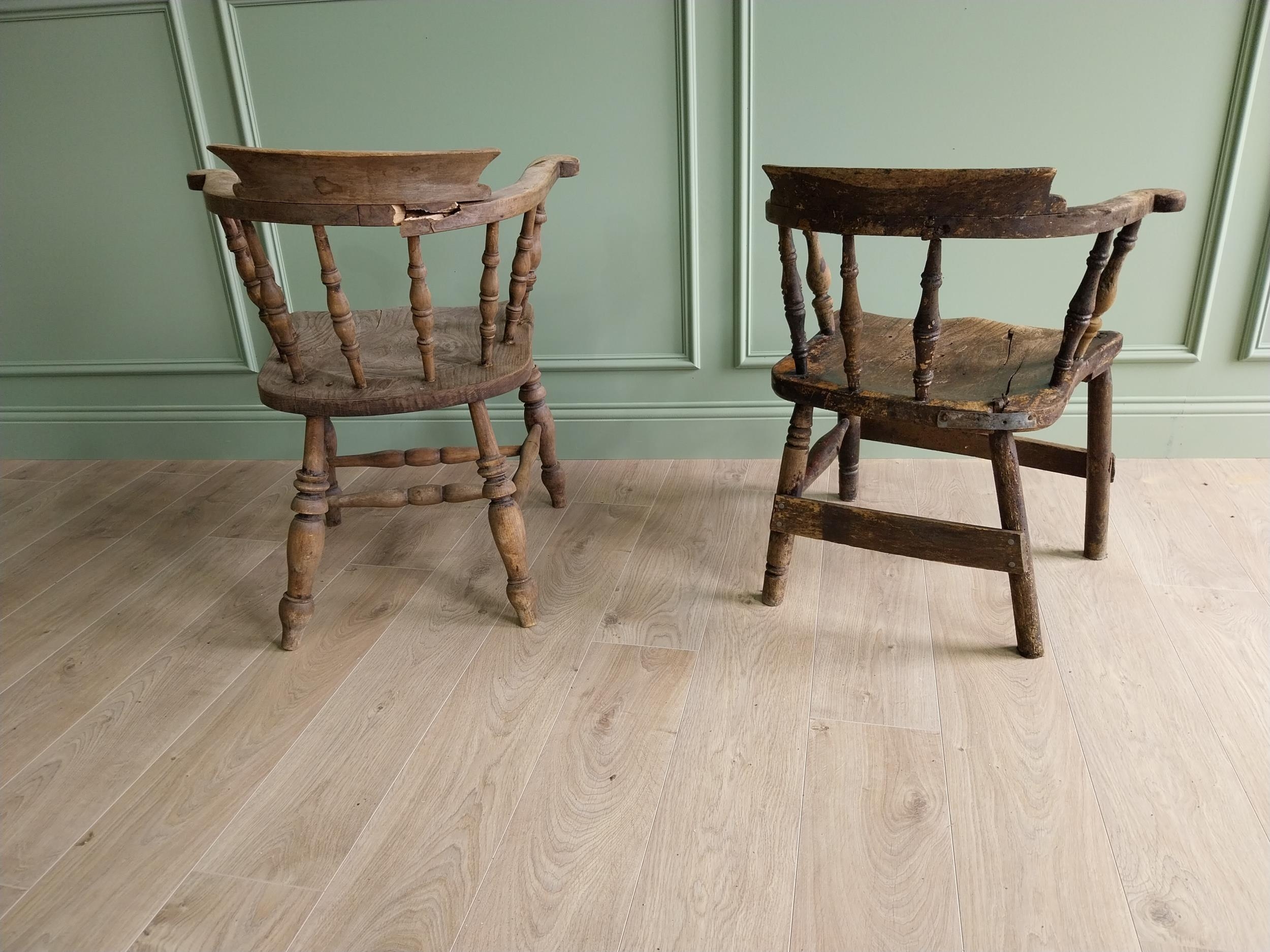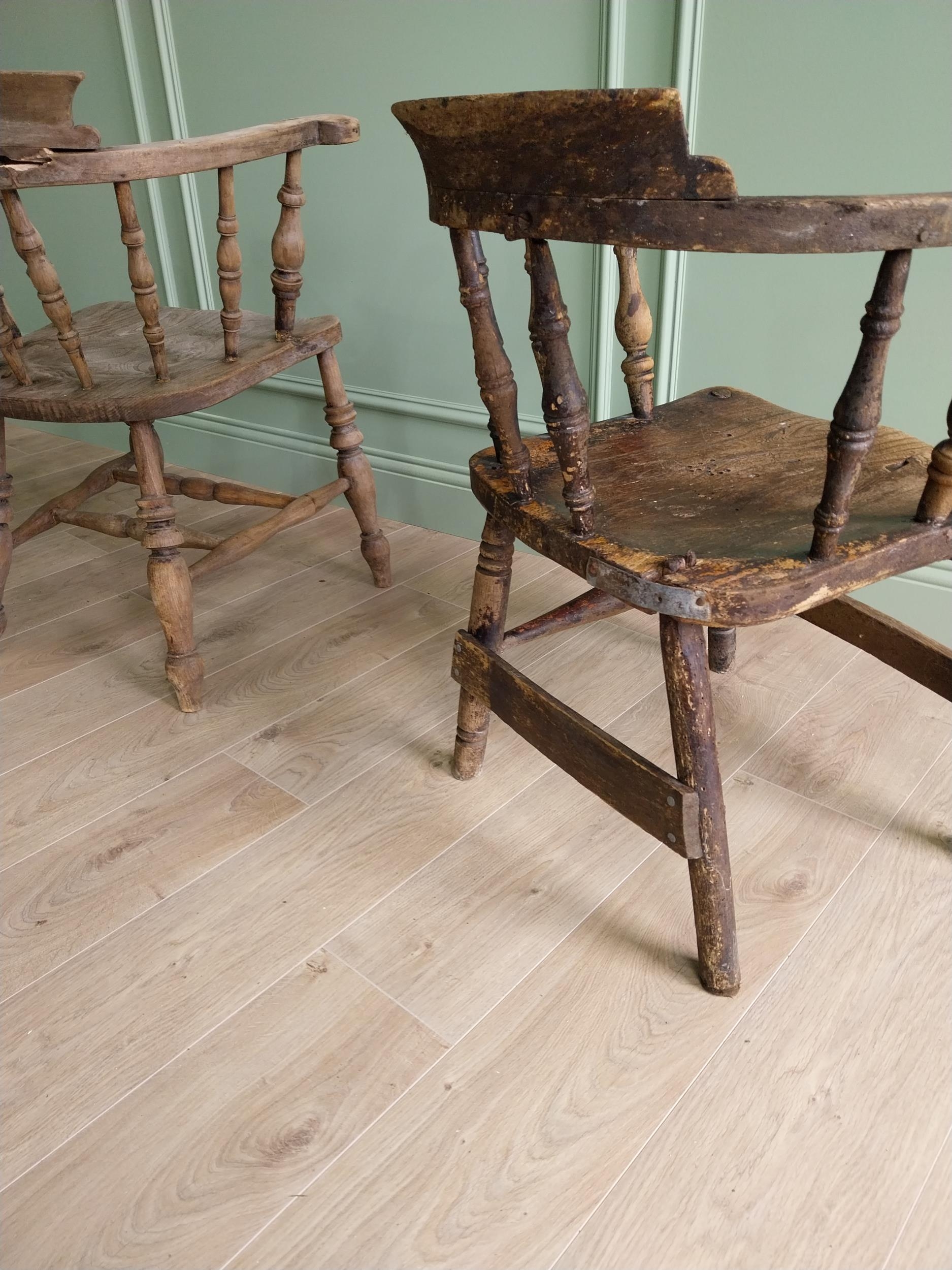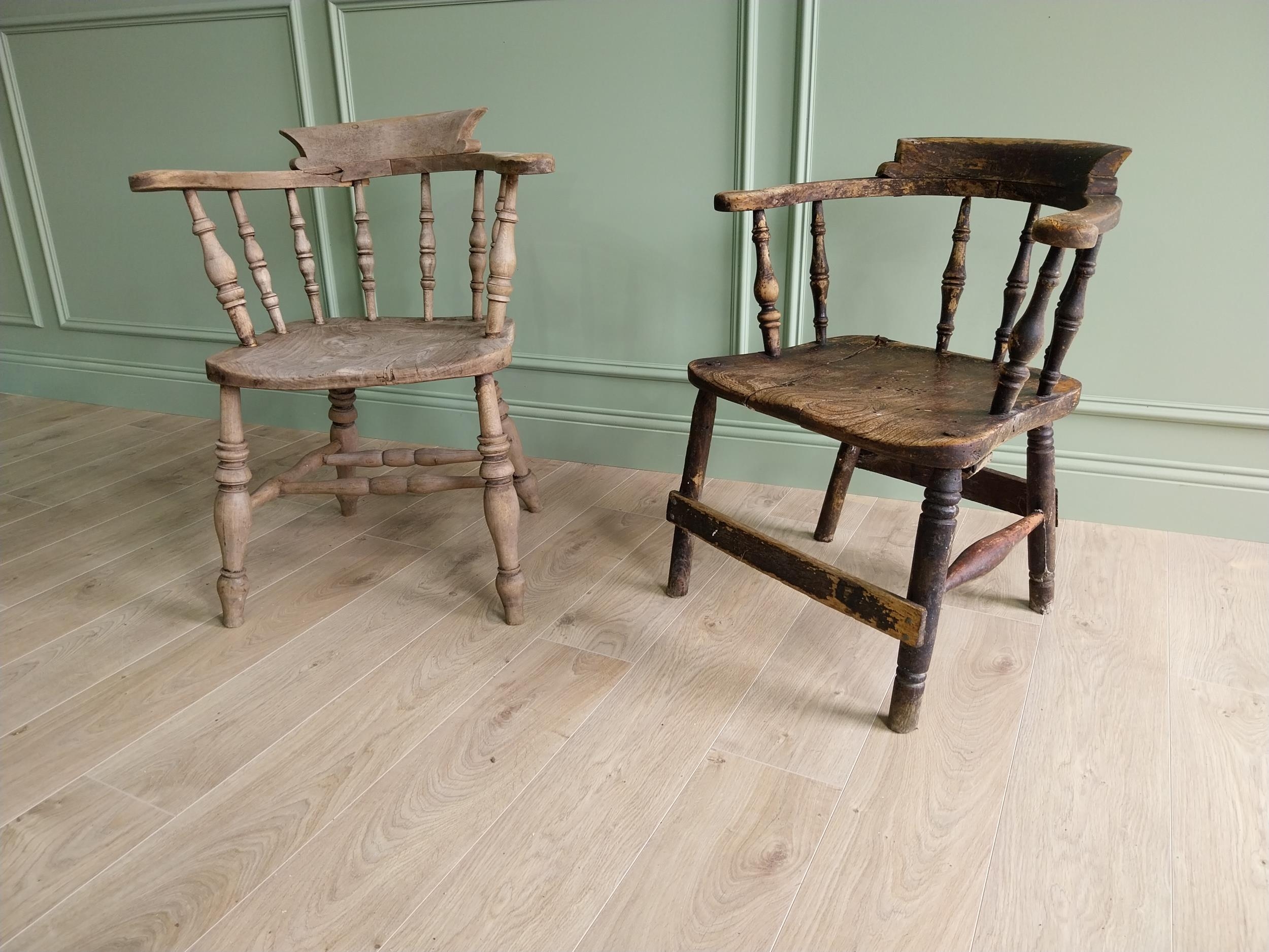 Two early 20th C. ash and elm smokers bow in need of restoration {80 cm H x 70 cm W x 61 cm D and 77 cm H x 64 cm W x 55 cm D}. U