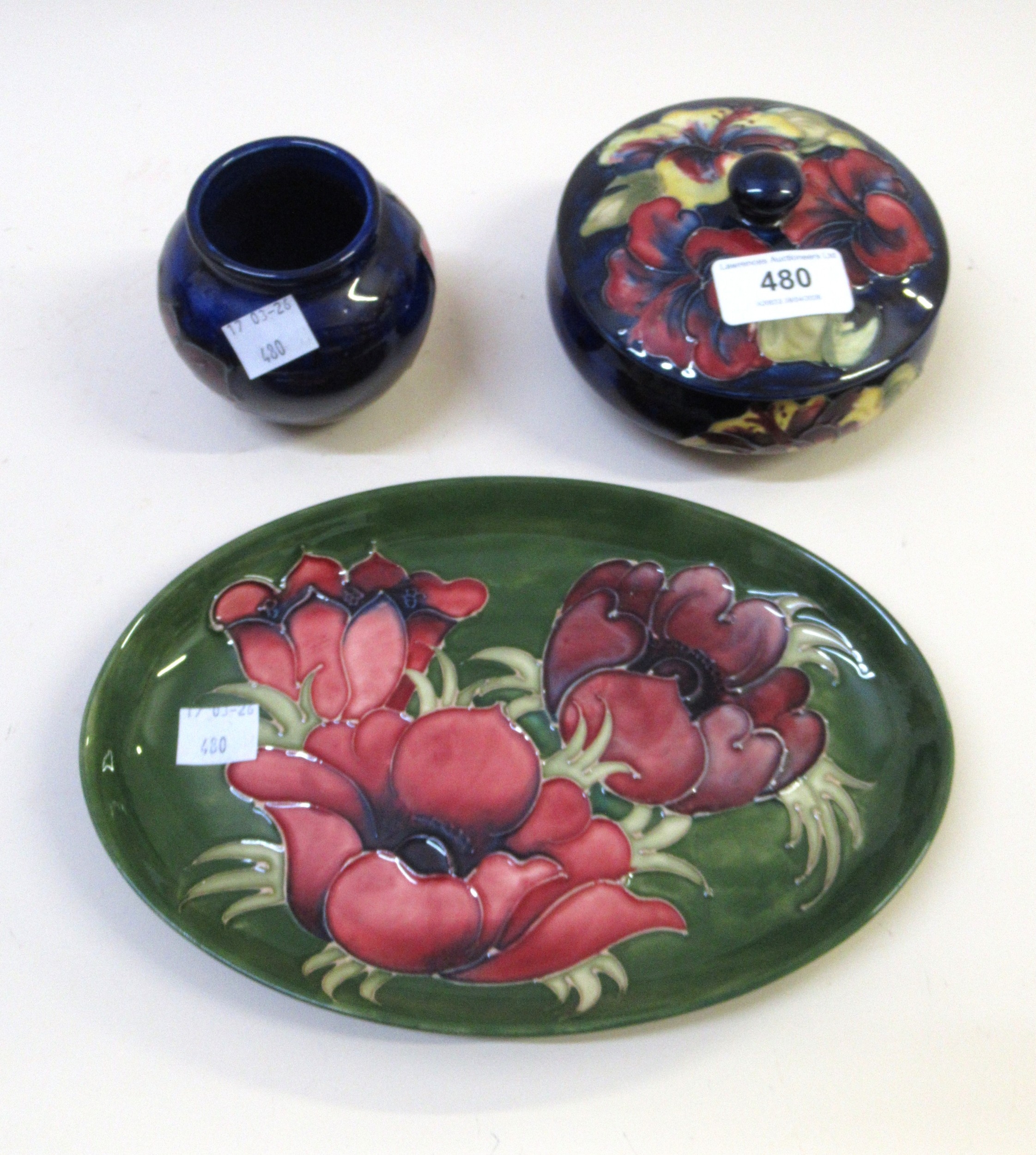 Three items of Moorcroft pottery