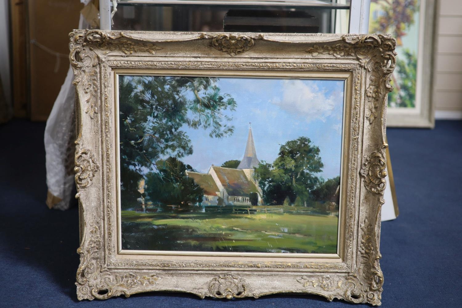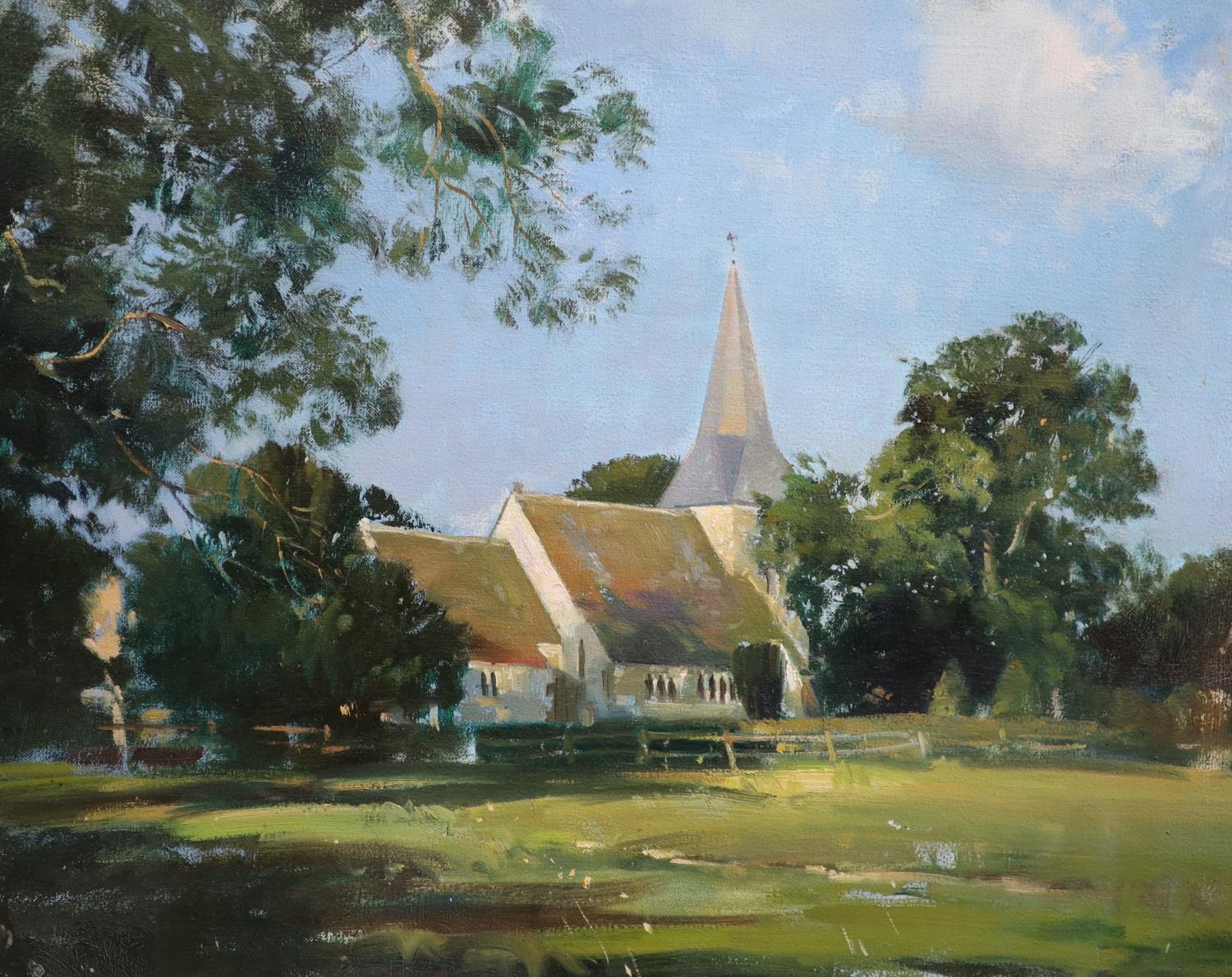 Oil on panel in original untouched condition, might benefit from a light clean but no real faults noted, a little fine but stable craquelure towards the lower left, not signed, housed in the original gilt and grey painted scroll frame, Stacy Marks labels verso
