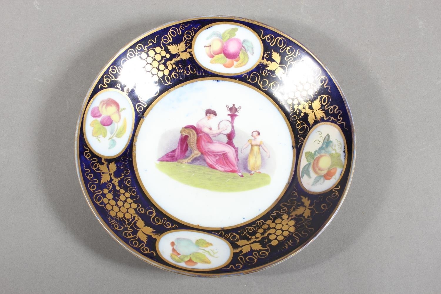 Vienna style dish with figural decoration and gilt border.
