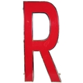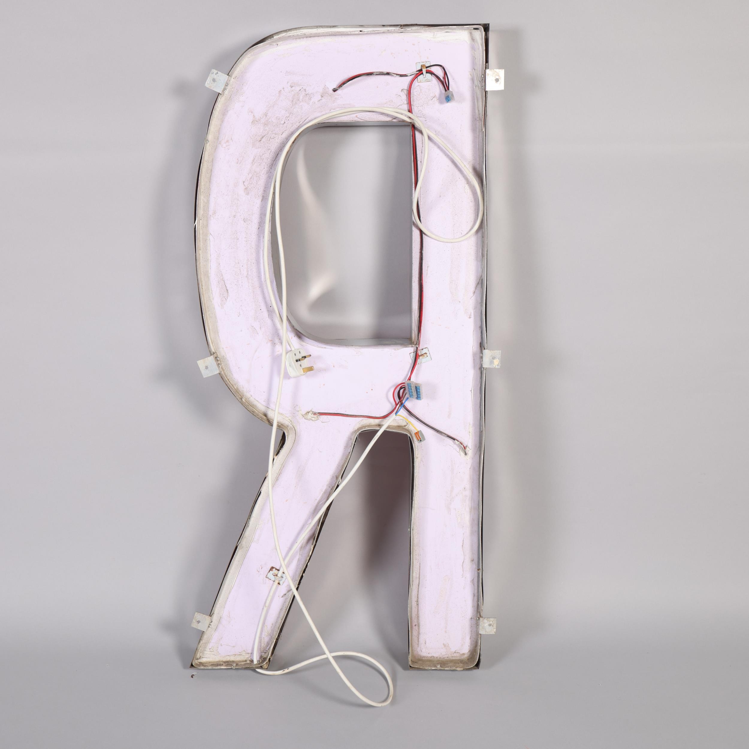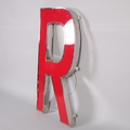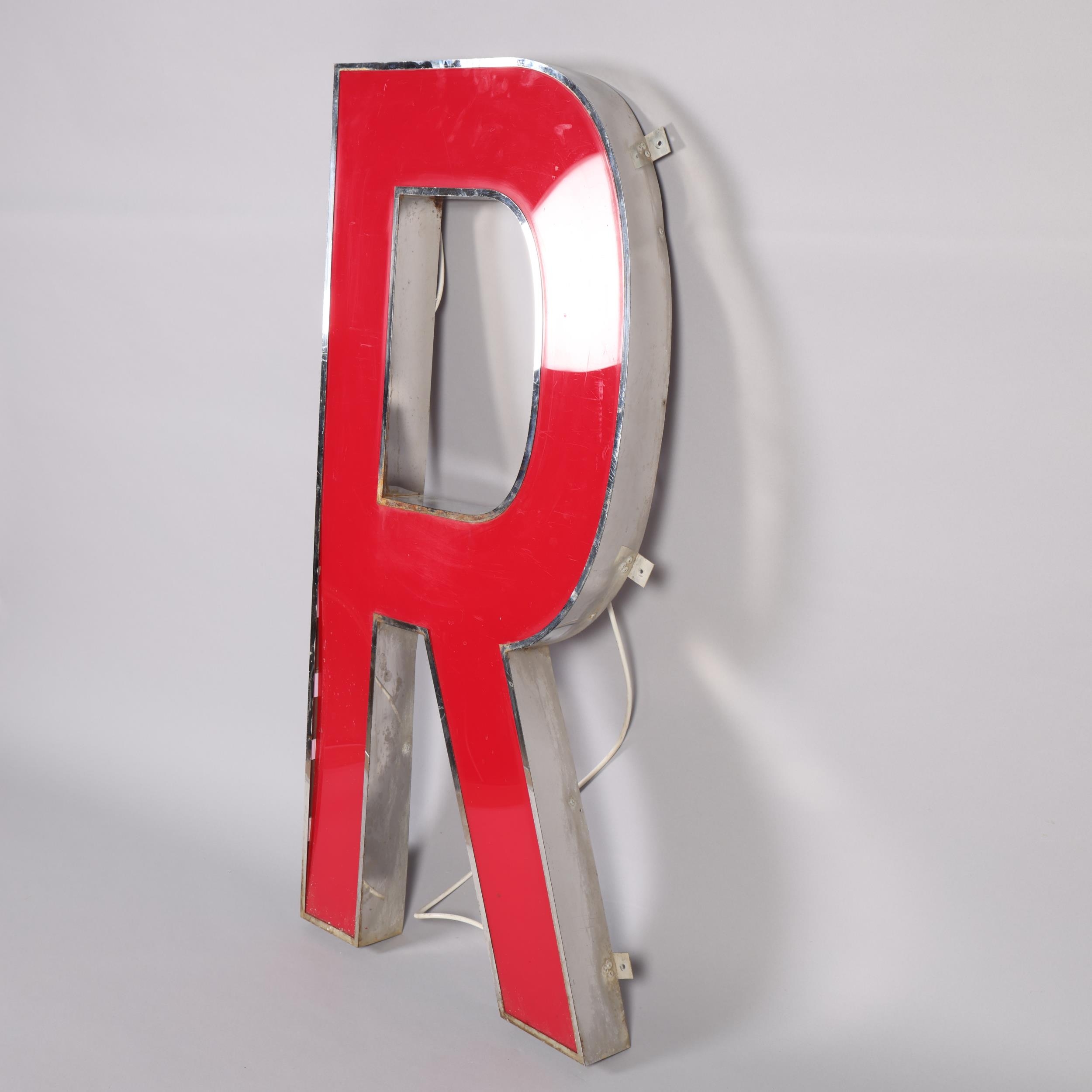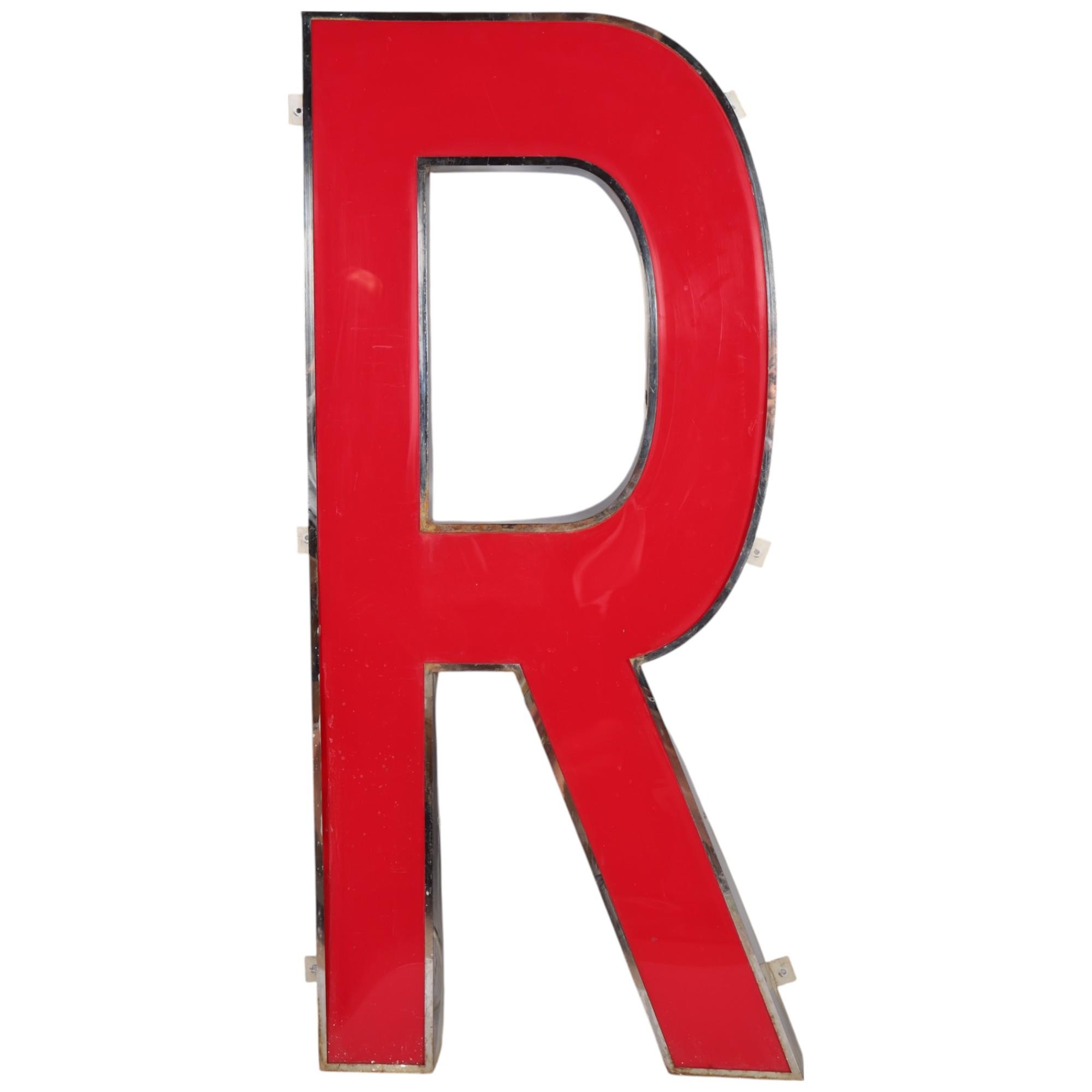 A large aluminium and perspex light box letter "R", height 120cm, width 52cm, depth 8cm