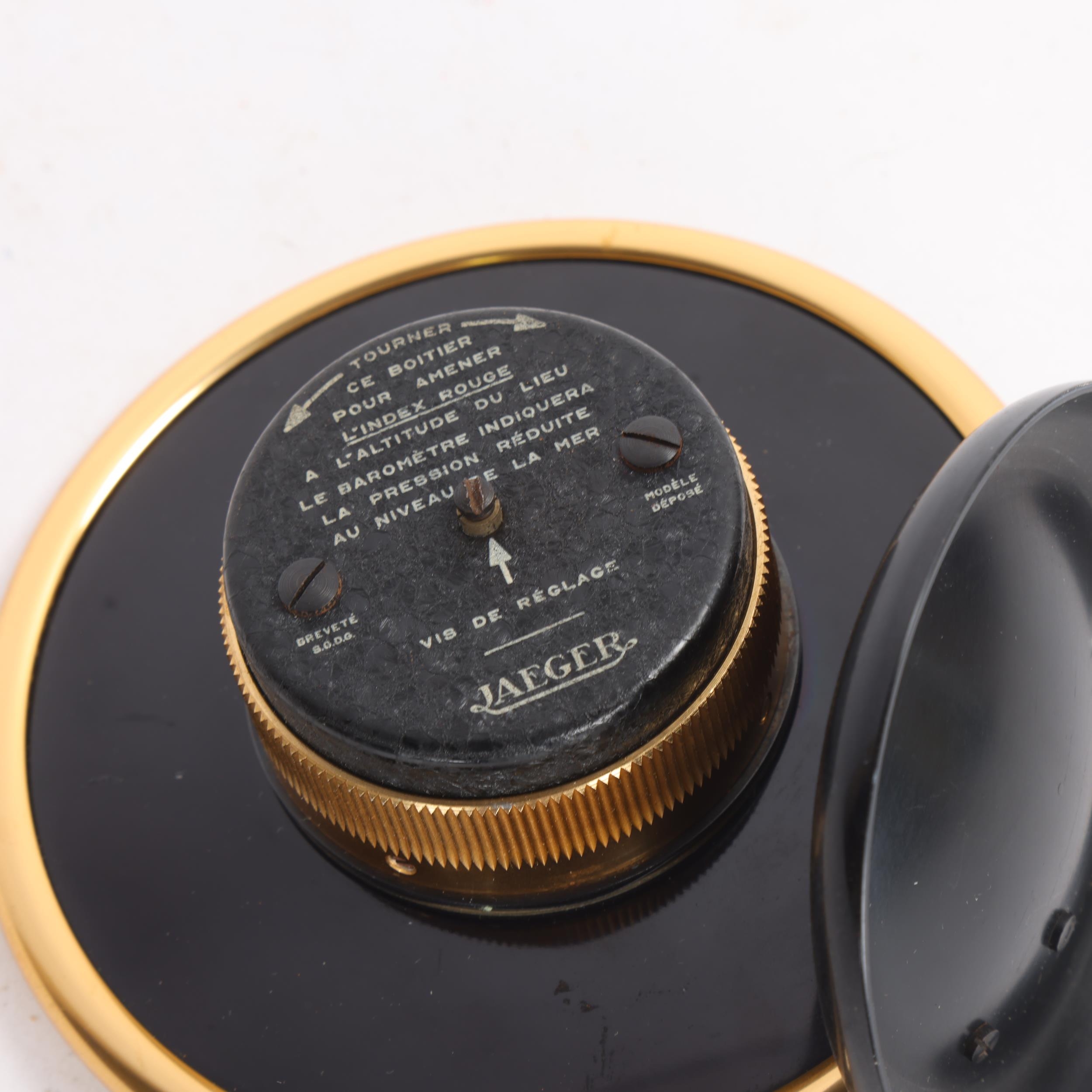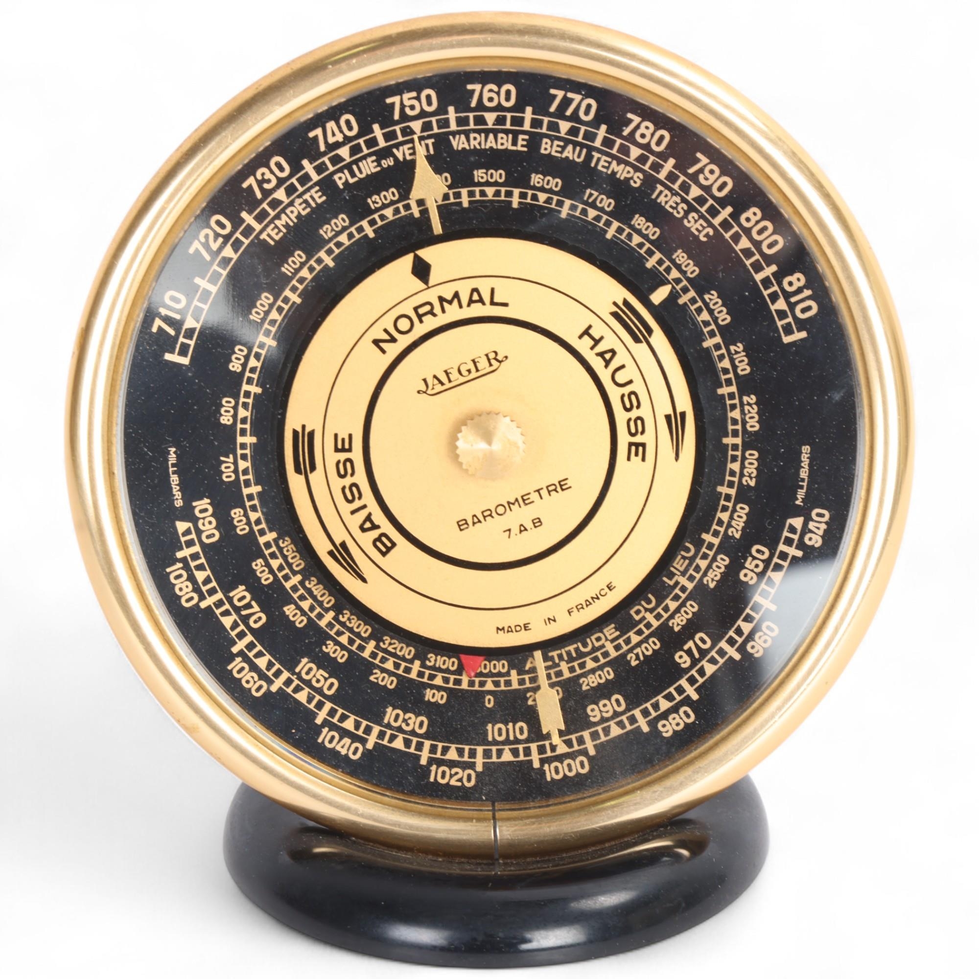 Jaeger desk-top barometer with brass edge, dial 12cm across
