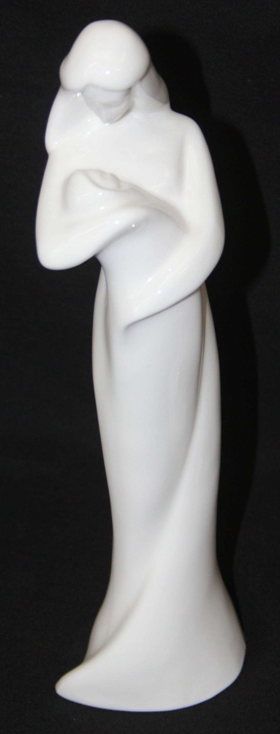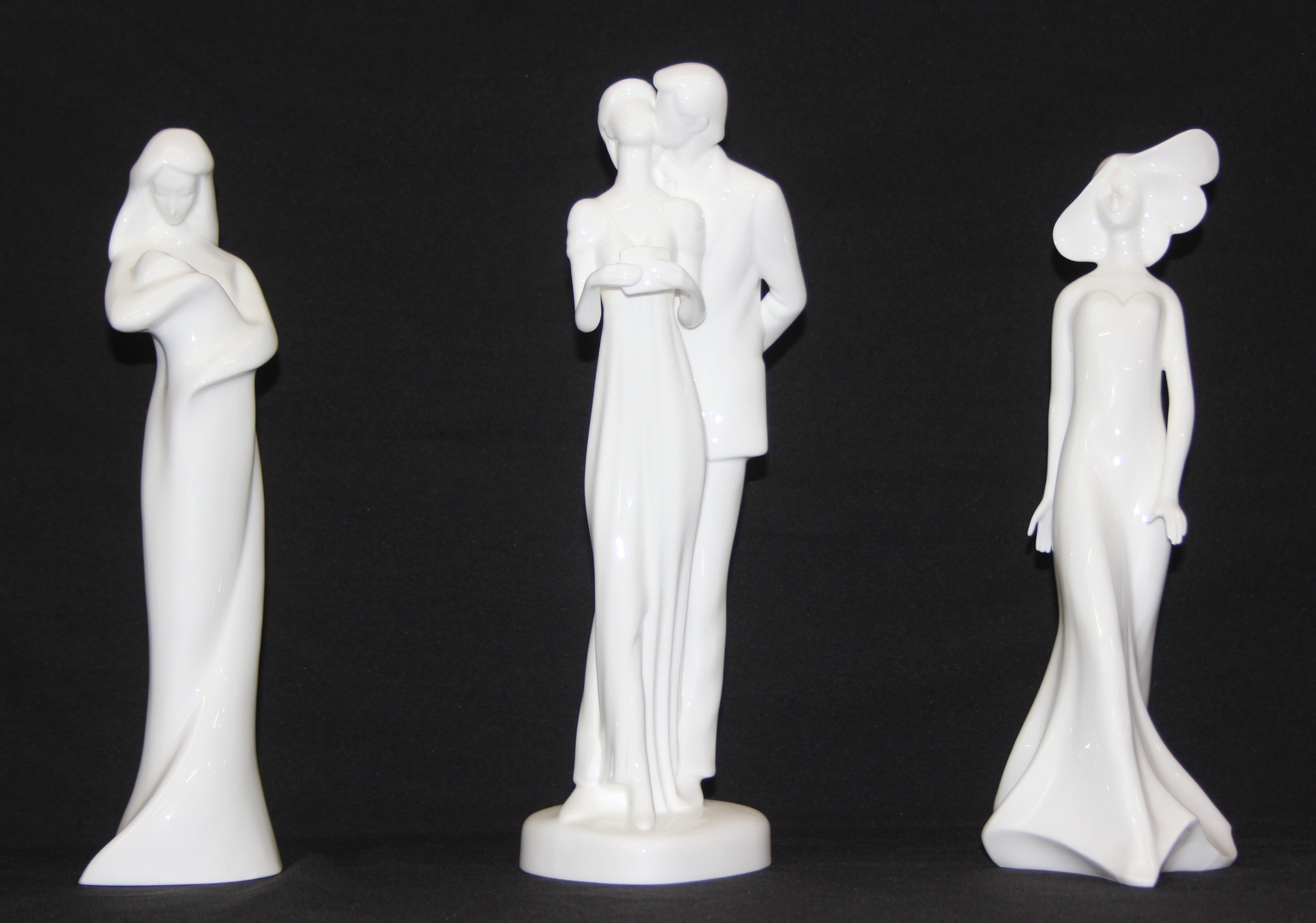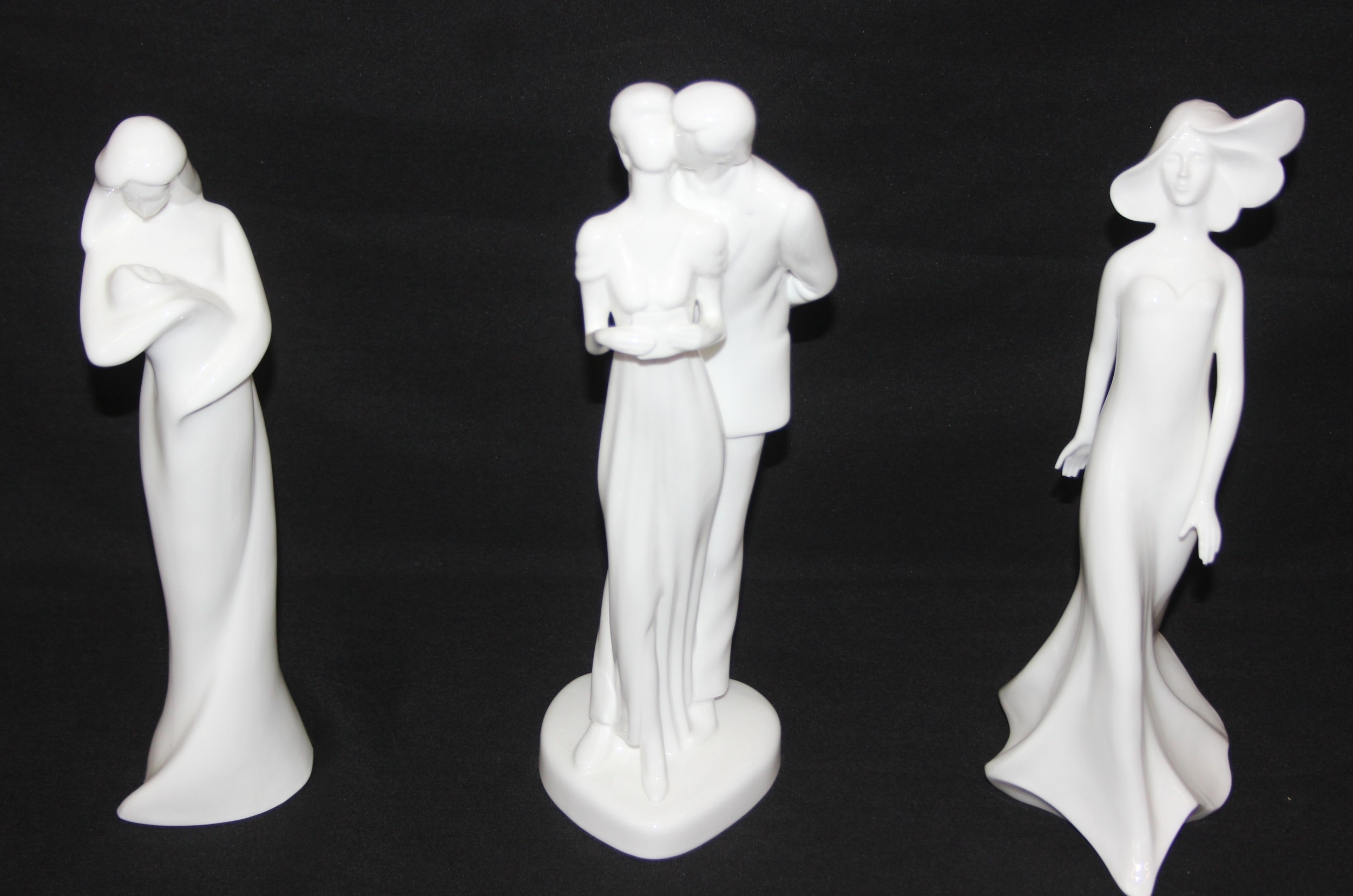 Three white Royal Doulton figurines from the Images series, to include Mother and Child by A Maslankowski HN3938, Happy Anniversary HN3254 and Wistful by Peter A Gee HN3664, the tallest 32cm [3]