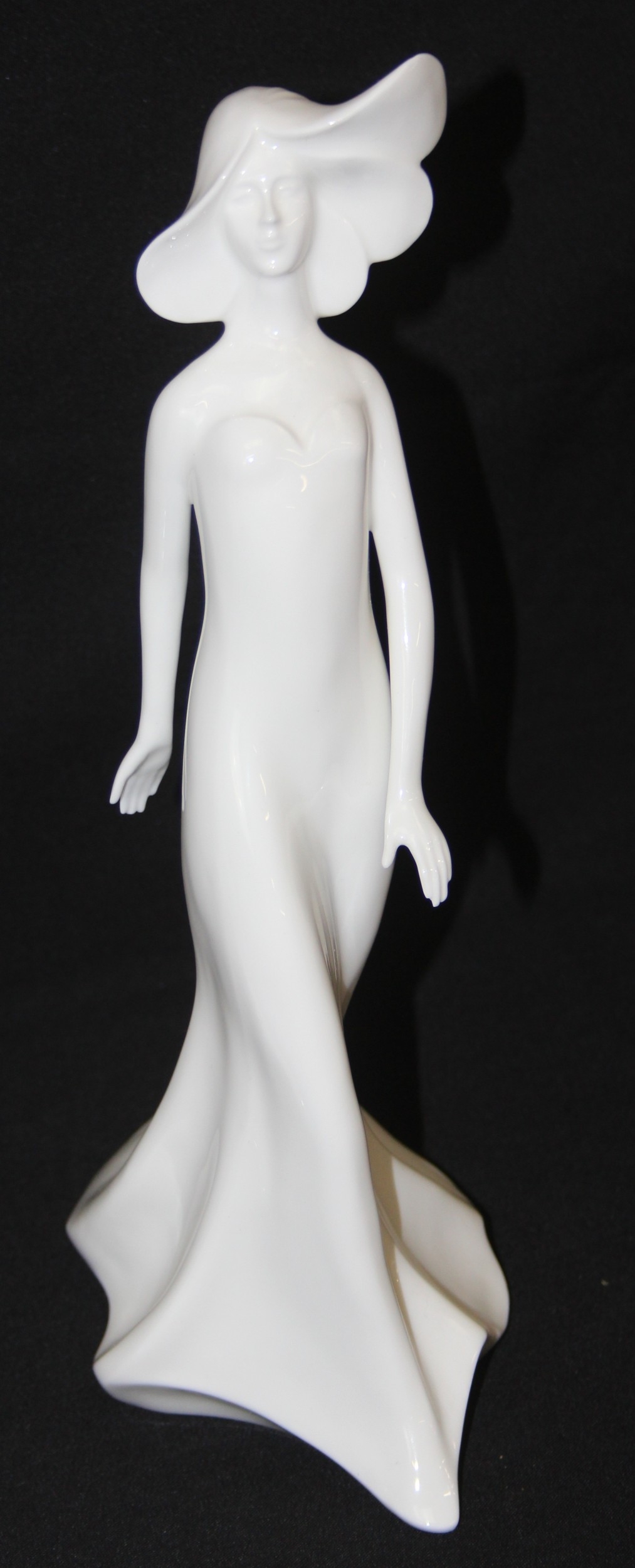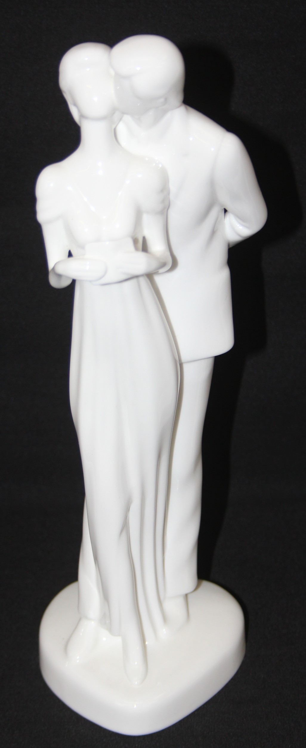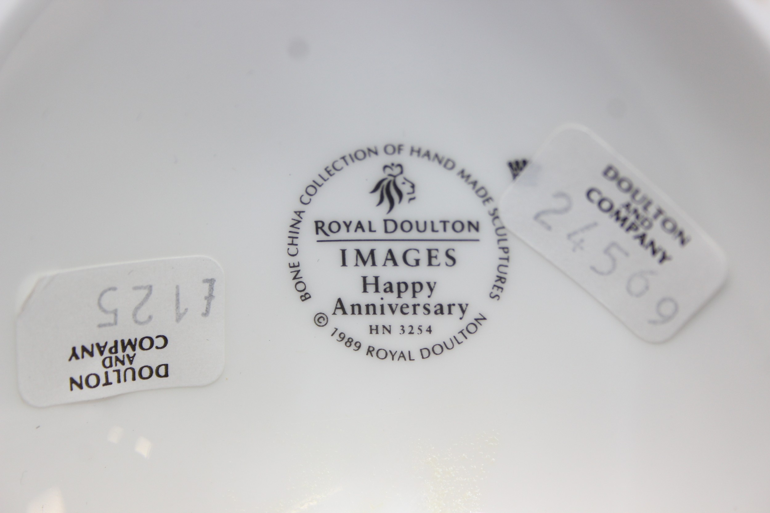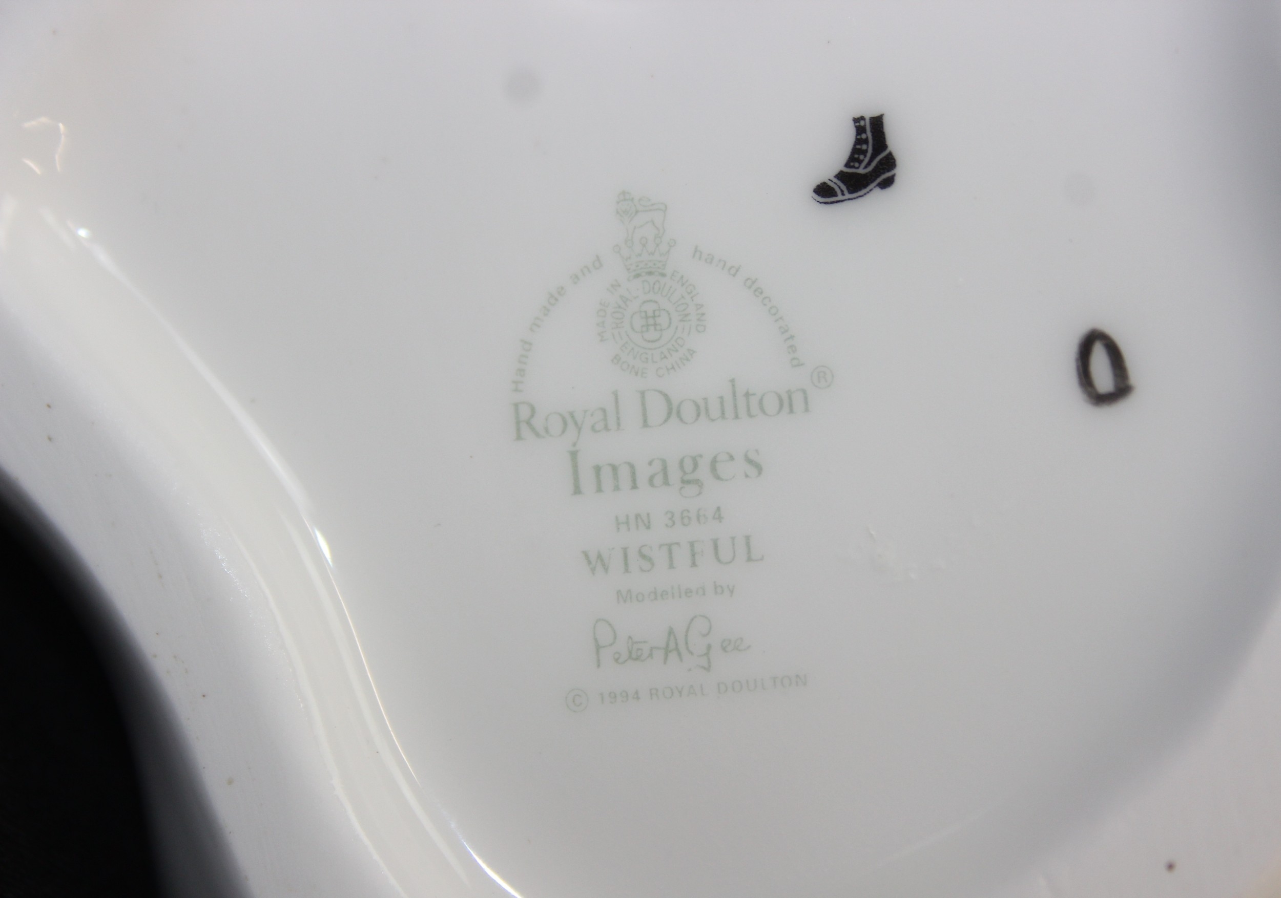 Three white Royal Doulton figurines from the Images series, to include Mother and Child by A Maslankowski HN3938, Happy Anniversary HN3254 and Wistful by Peter A Gee HN3664, the tallest 32cm [3]