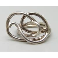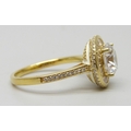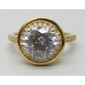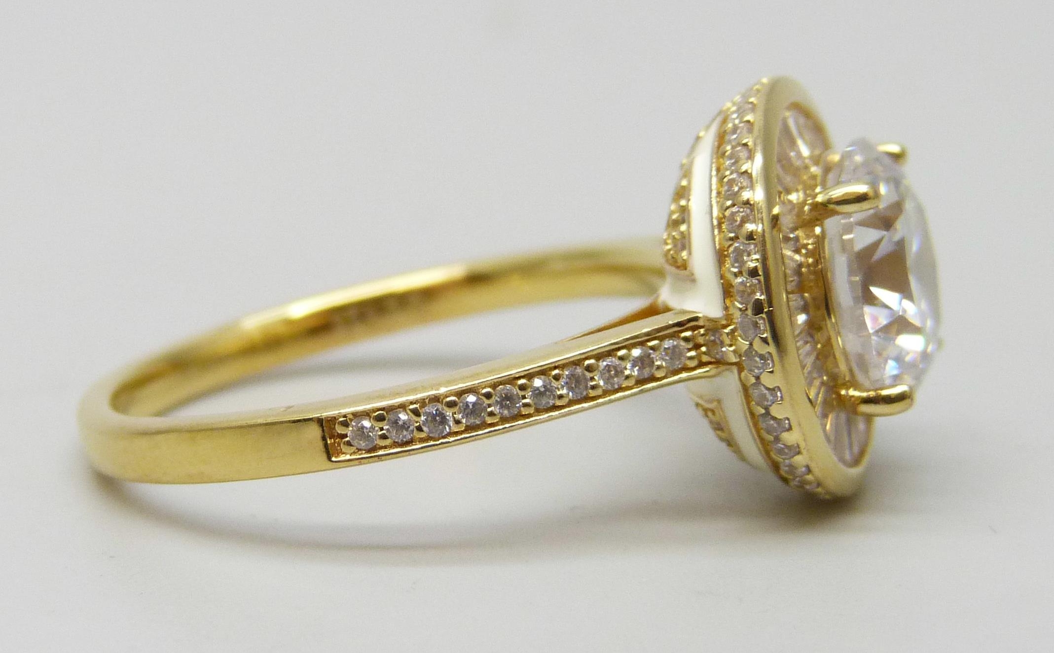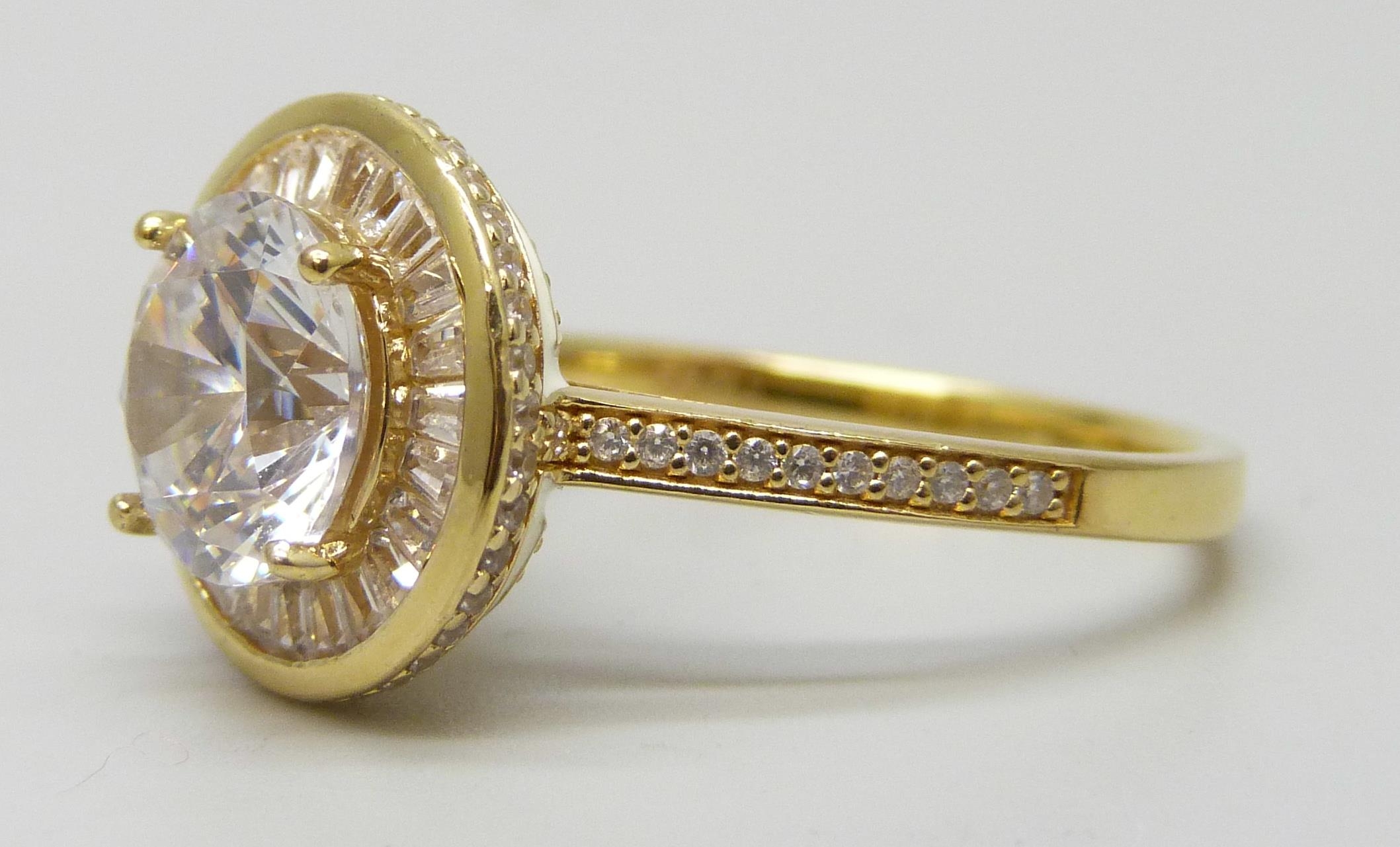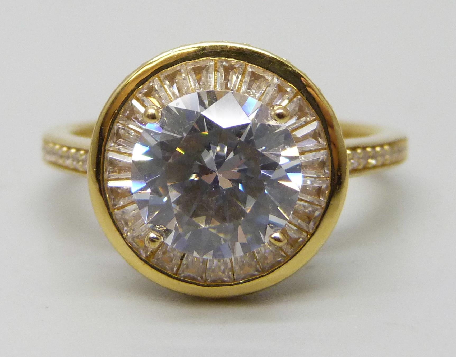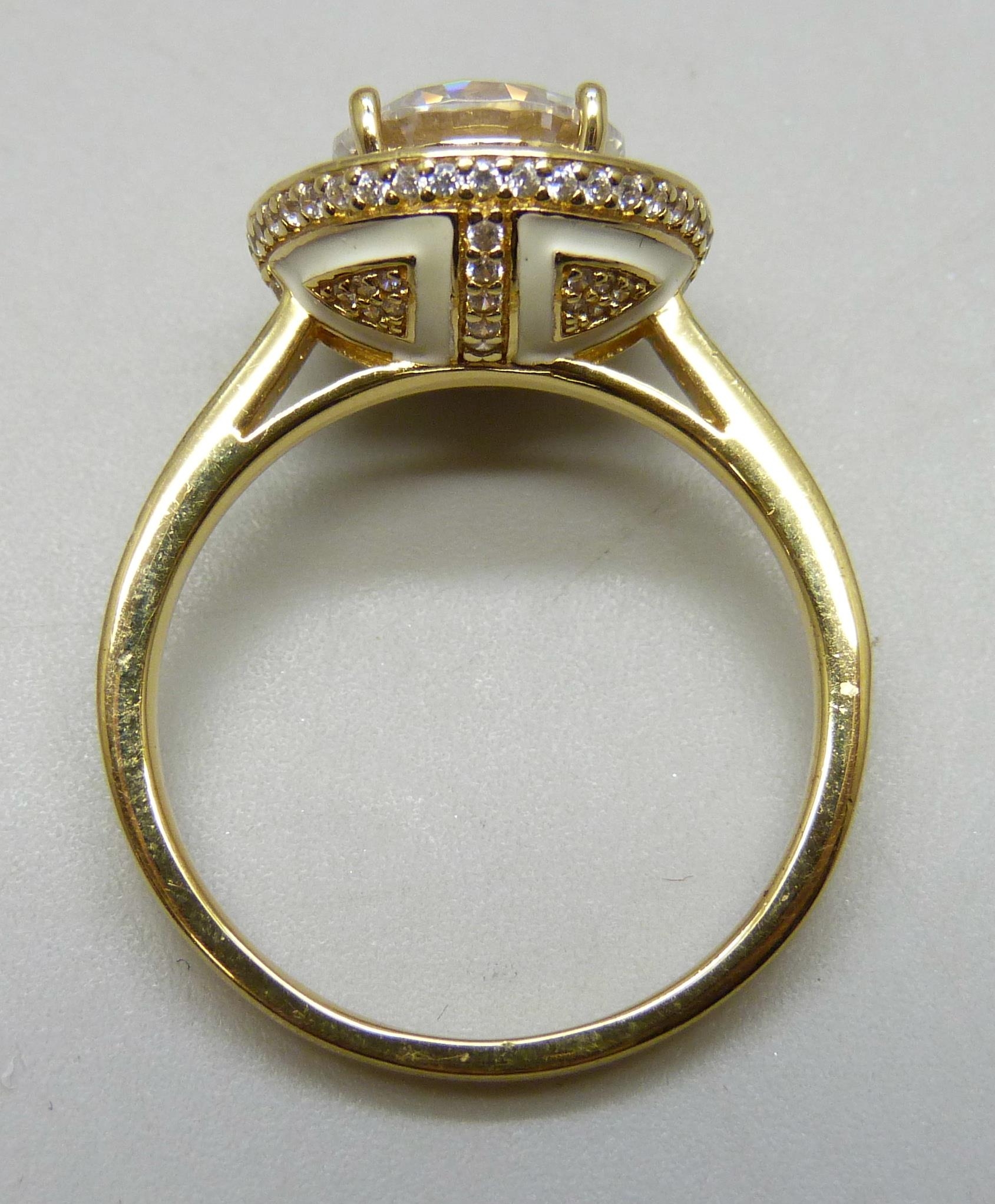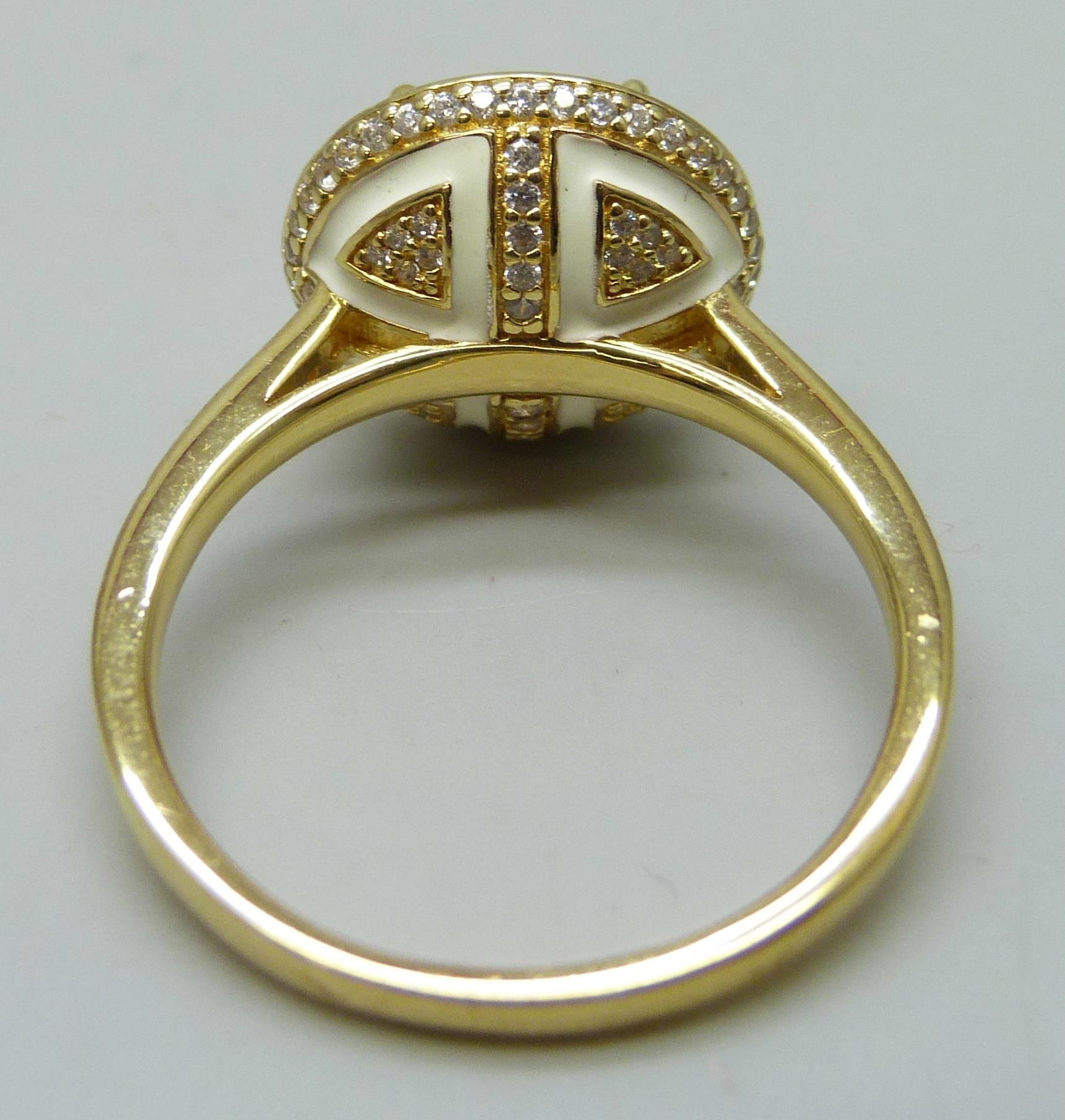 A TOVA silver gilt ring set with cubic zirconia stones and white enamel setting , T/U
