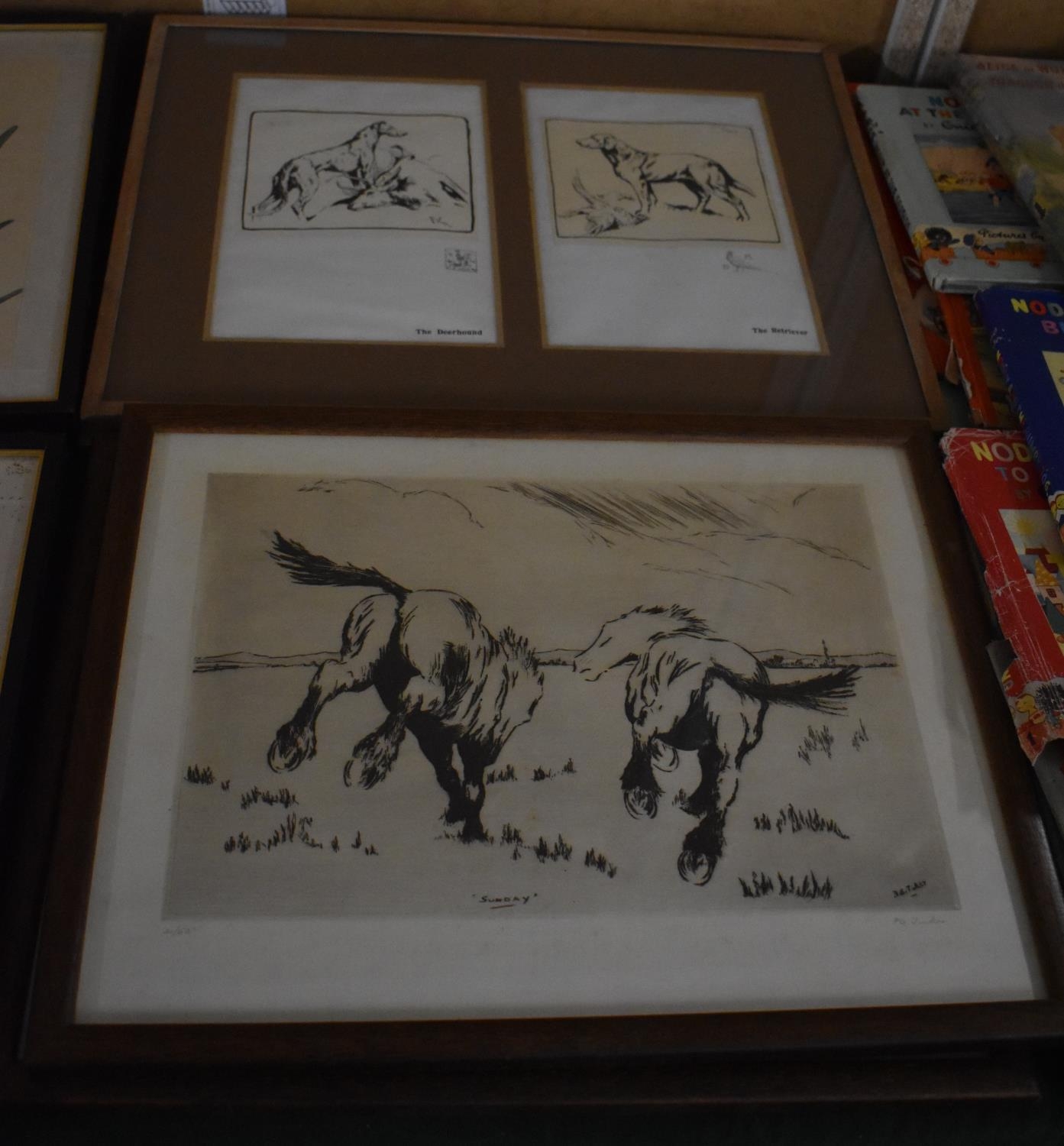 A Pair of Arthur Wardale Prints, Deer Hound, Setter, Retriever, Pointer together wit a Pair of Framed Limited edition Tuckit Prints, Sunday and Fishing