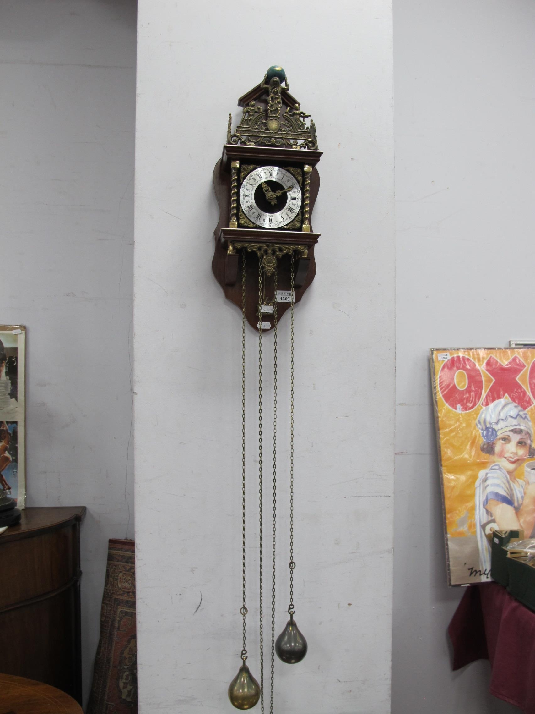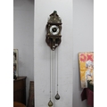 Dutch Wall Clock, with twin pear shaped weights and pendulum, 19cm wide.