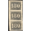 Upright Numerals: 1850 180r vertical strip of three with good to large margins, fresh hinged large part o.g.